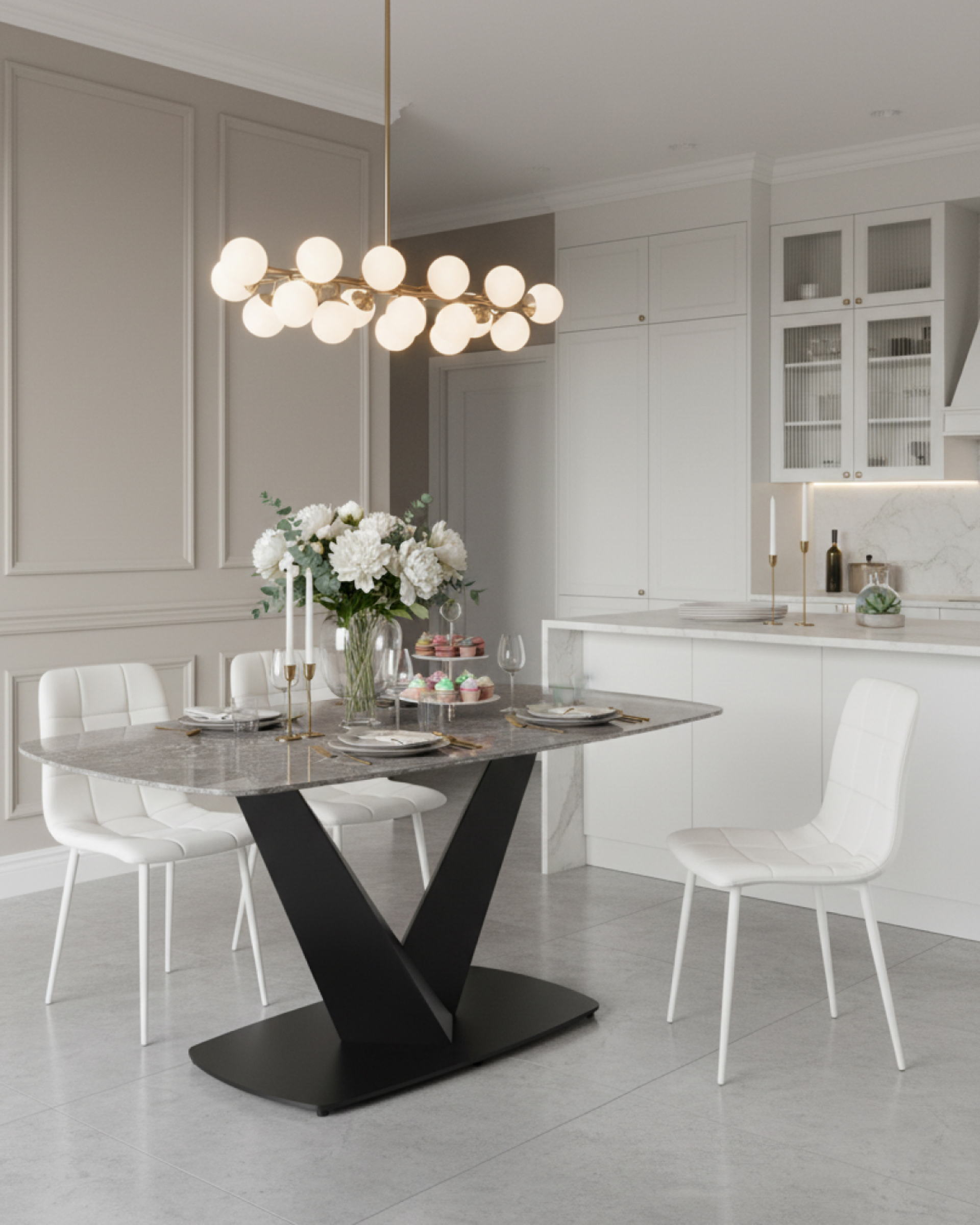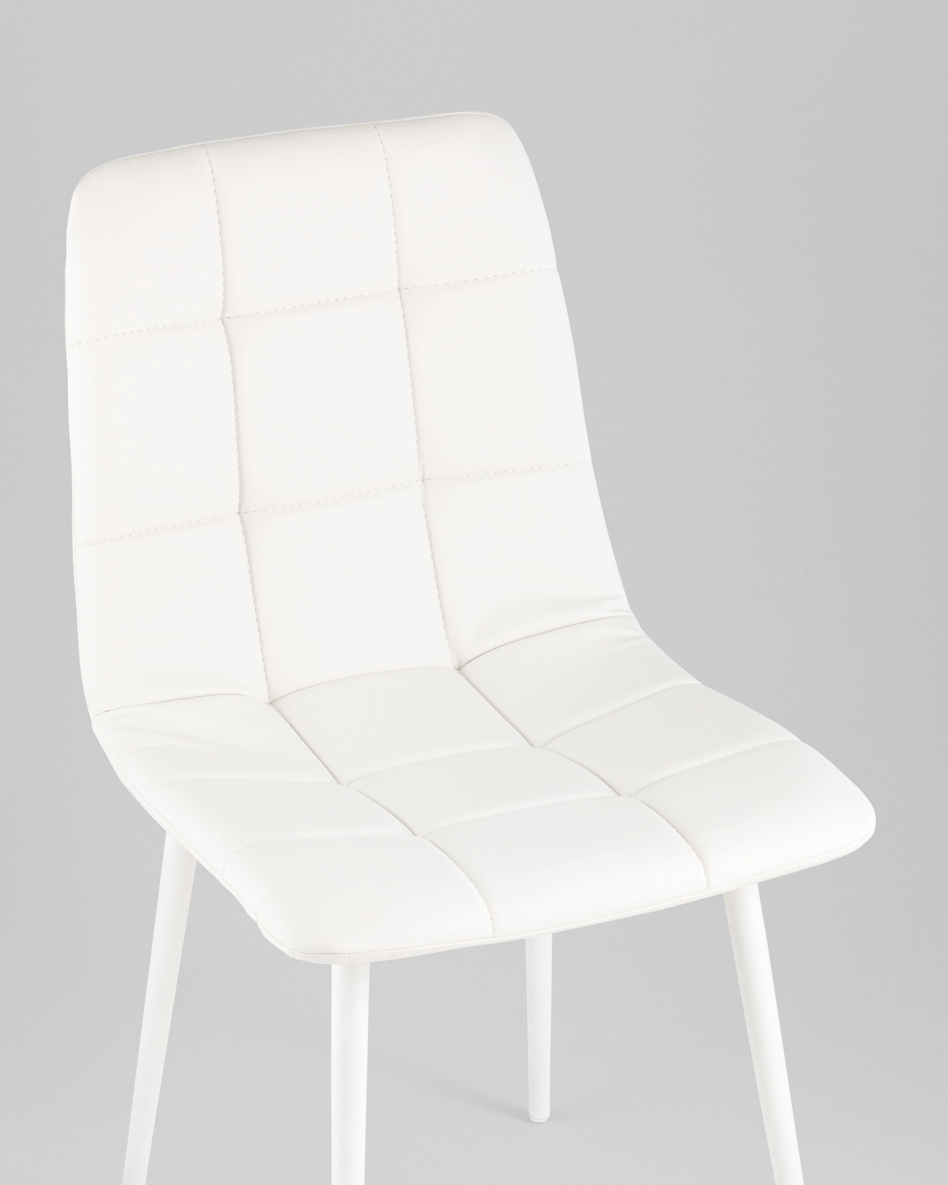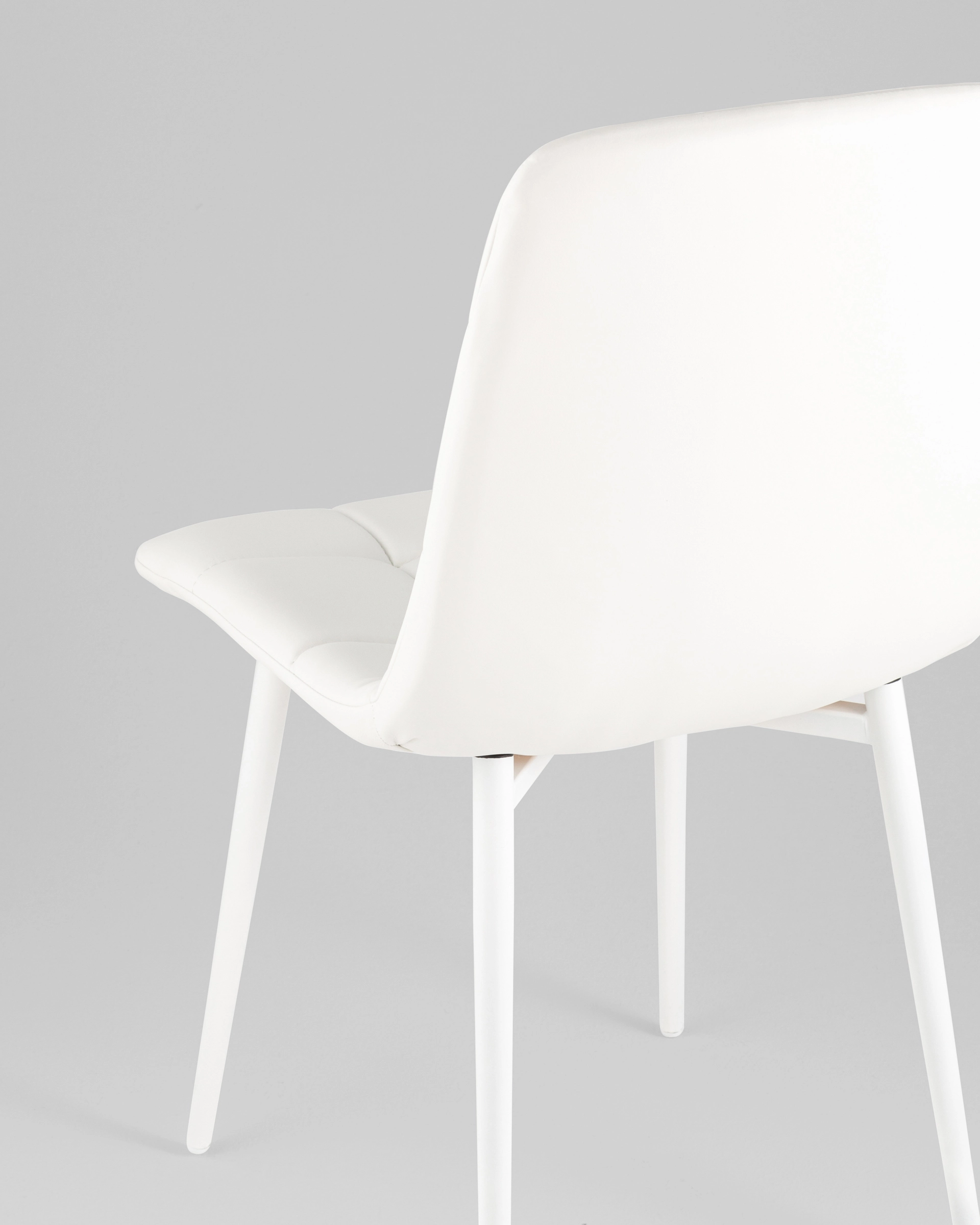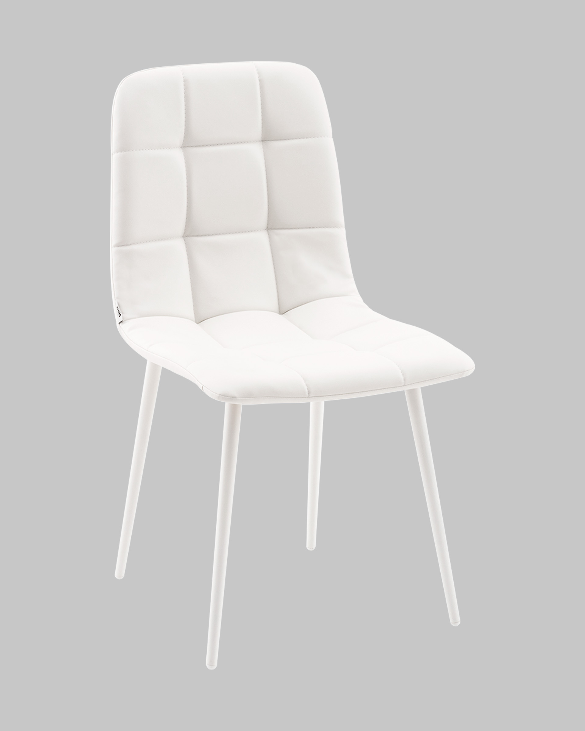 Тонкие, но прочные ножки из белого металла создают устойчивую основу и подчёркивают современный силуэт изделия. Благодаря прочному каркасу и качественным материалам, стул выдерживает повседневное использование, оставаясь надежным и эстетичным элементом интерьера.