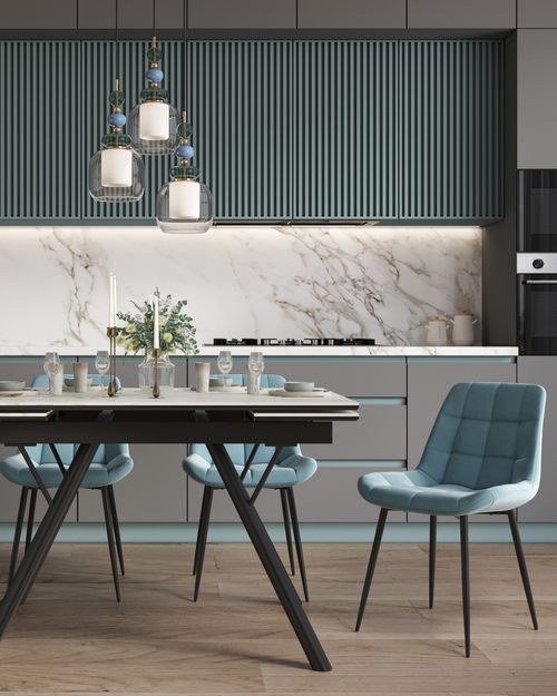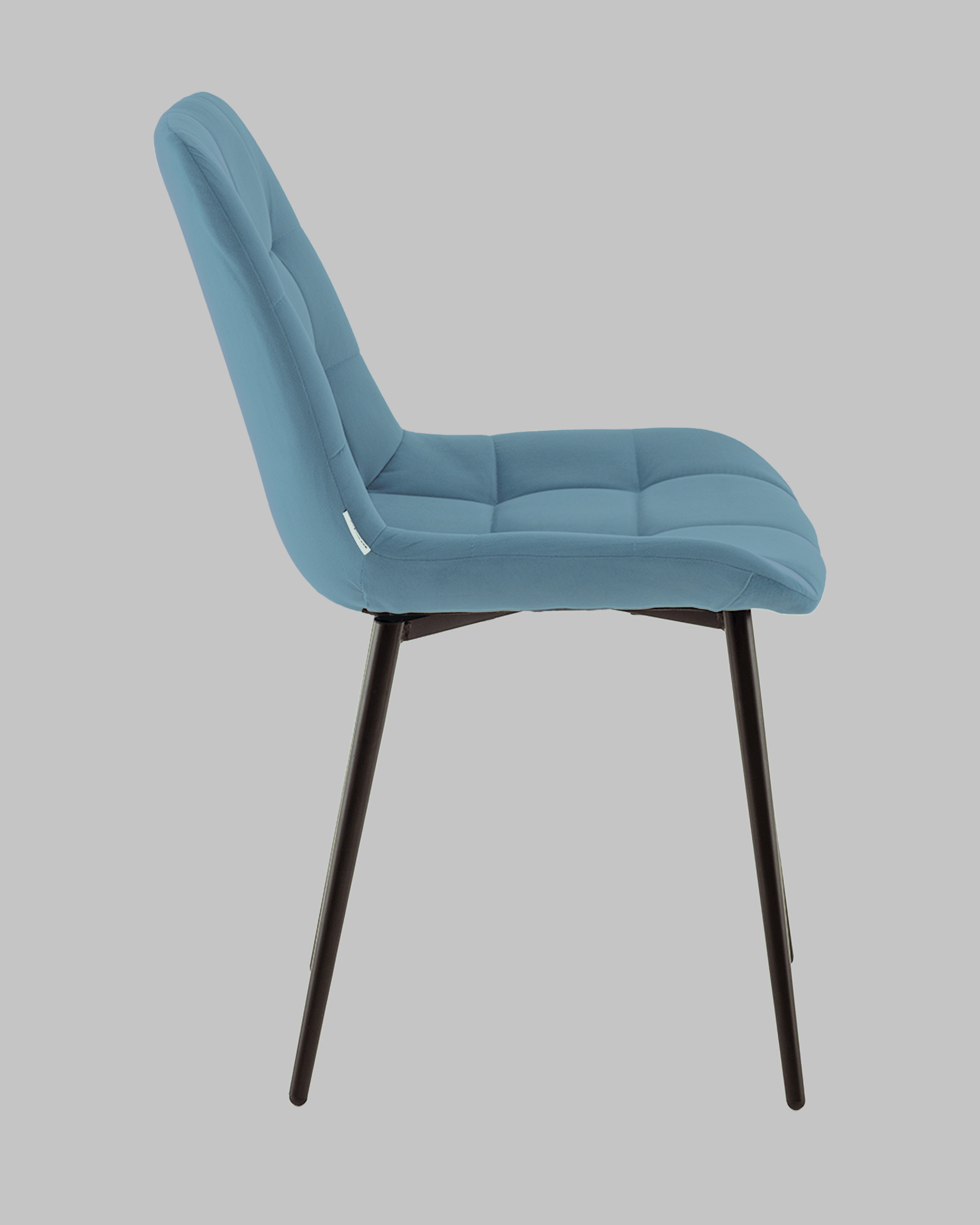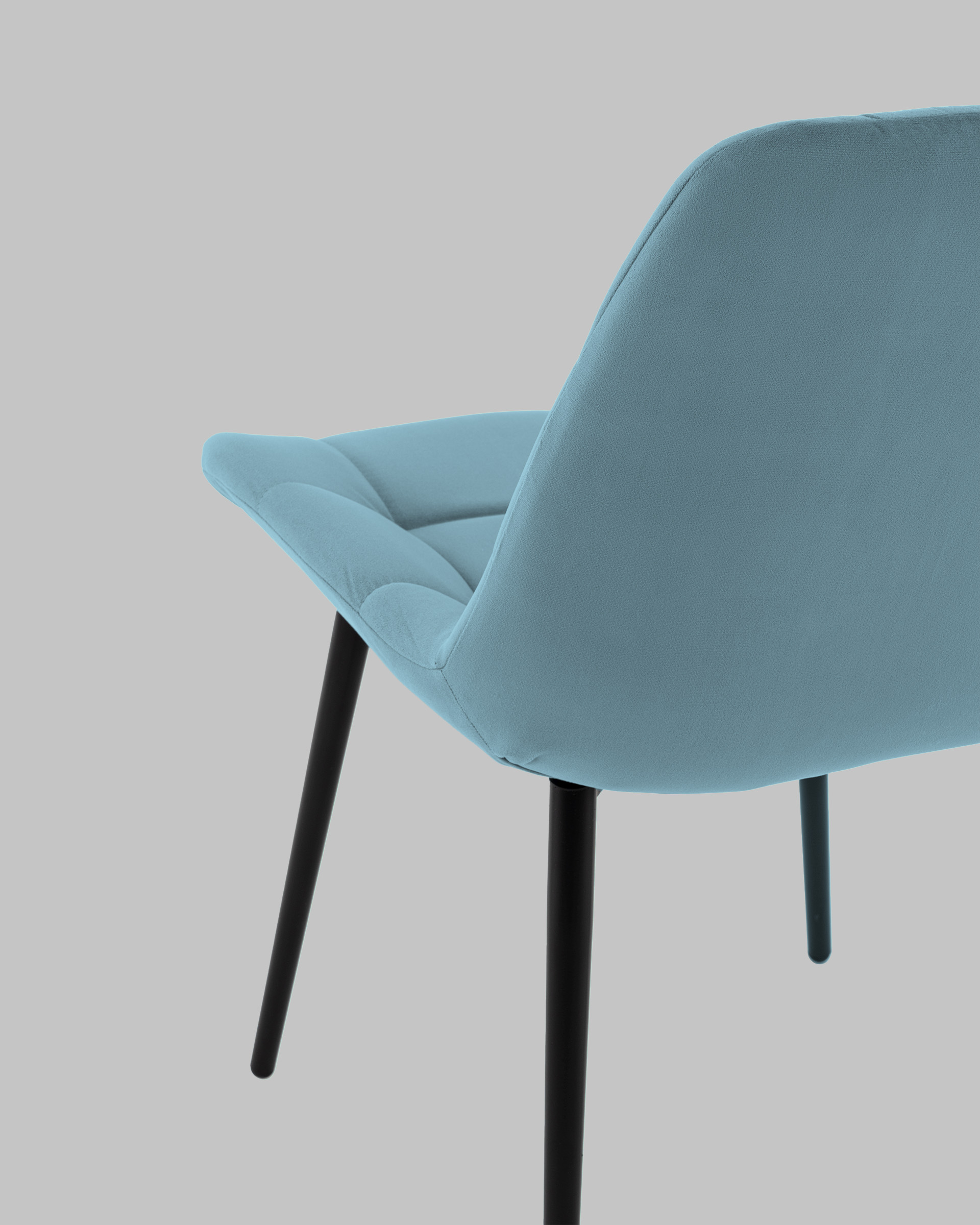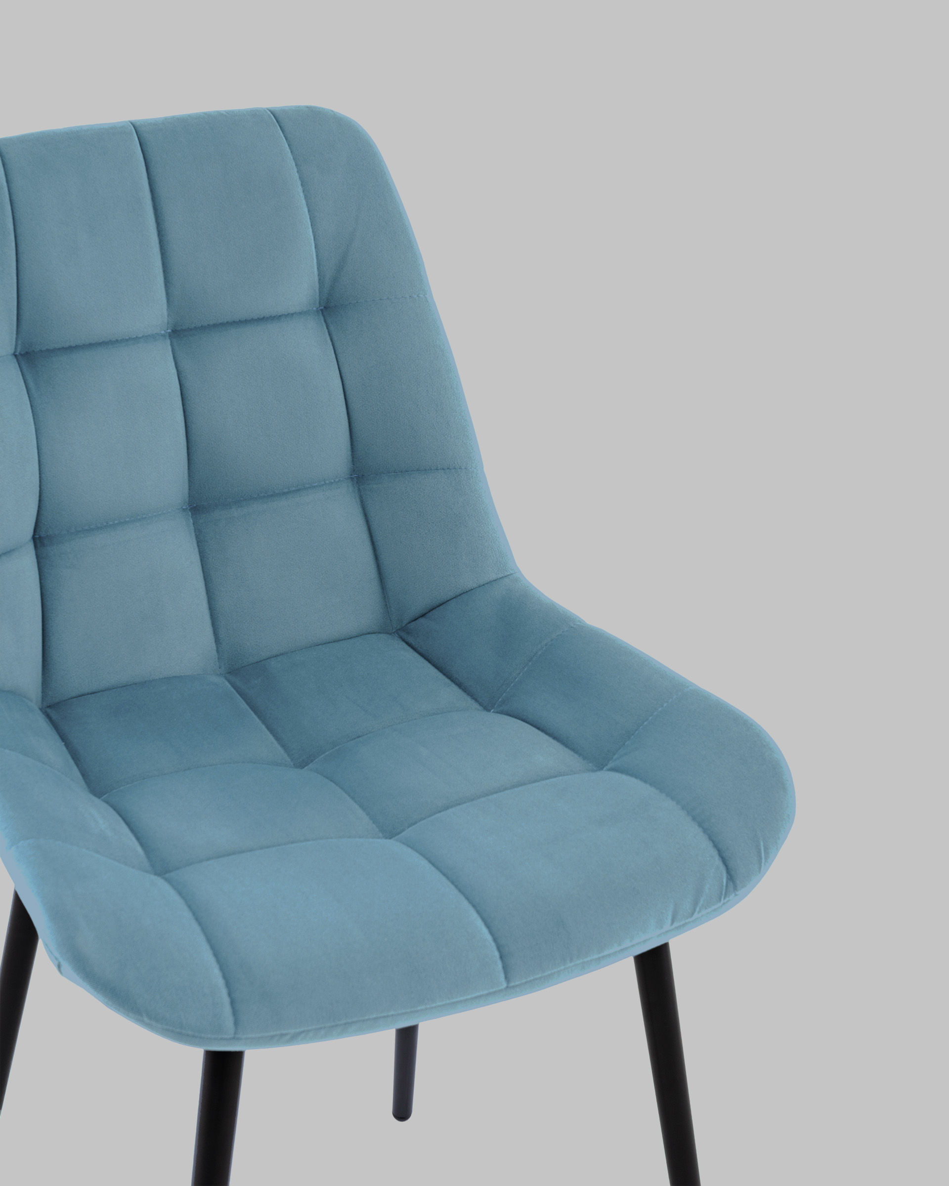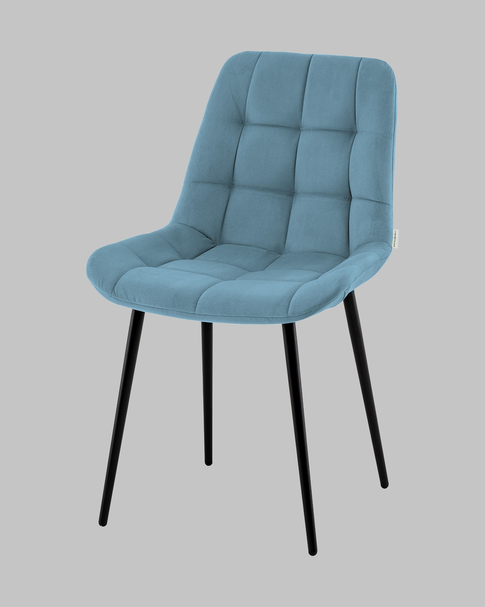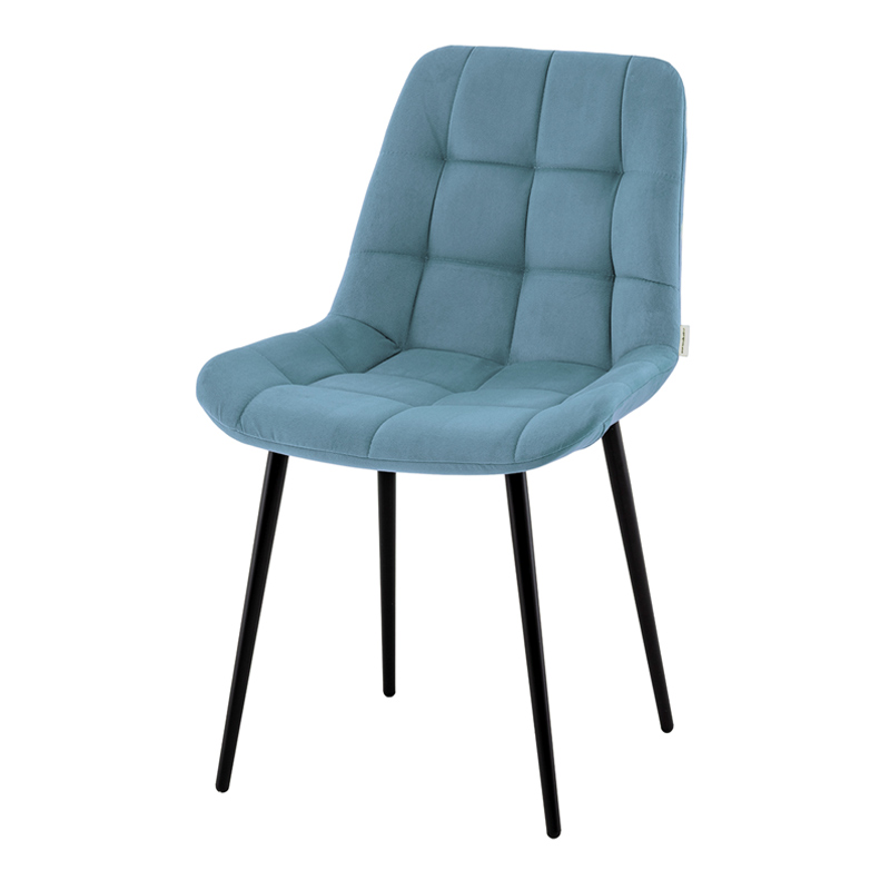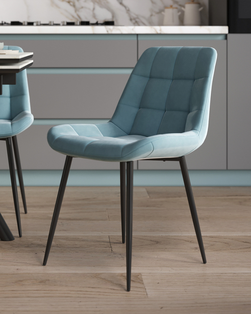 Материалы и дизайн. Выполнен из высококачественного велюра — тактильно приятного, износостойкого и простого в уходе материала. Обивка пыльно-голубого цвета идеально сочетается с черными металлическими ножками, которые придают стулу элегантный и современный вид. Сиденье с анатомической формой гарантирует комфорт, а декоративная стяжка добавляет объём и предотвращает от появления вмятин. Стул подходит для длительного использования, не теряя своей формы и внешнего вида.