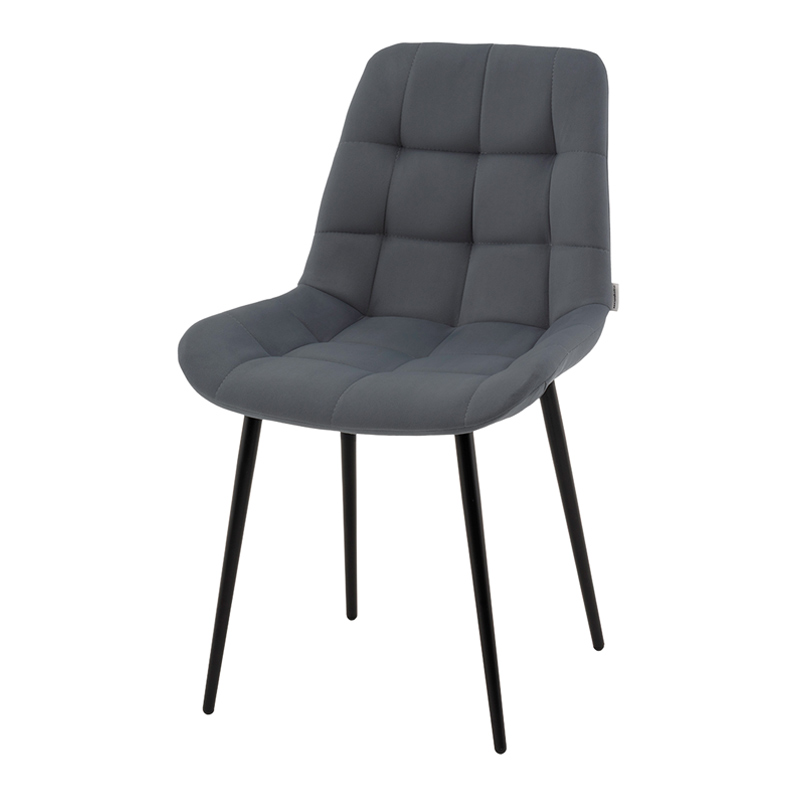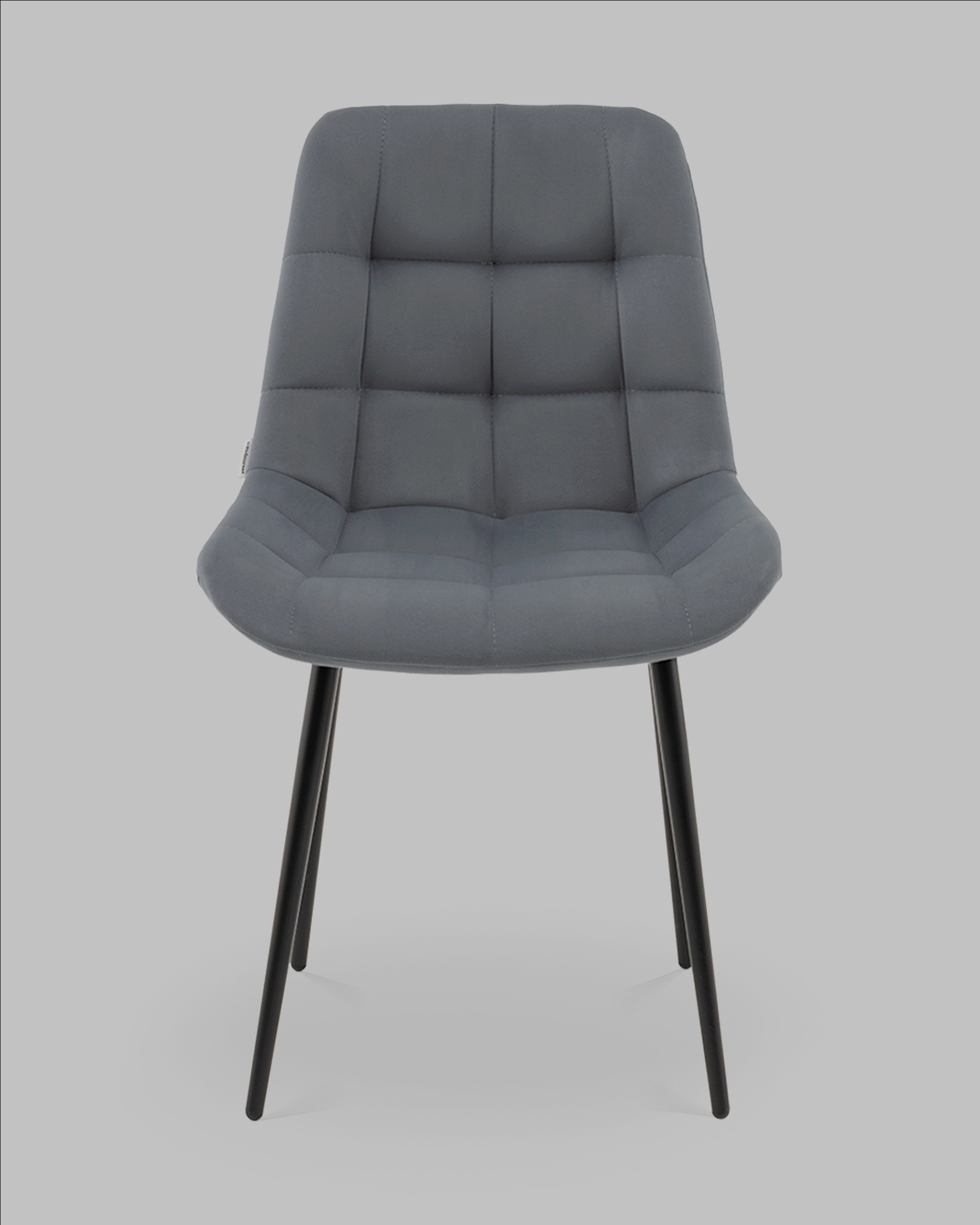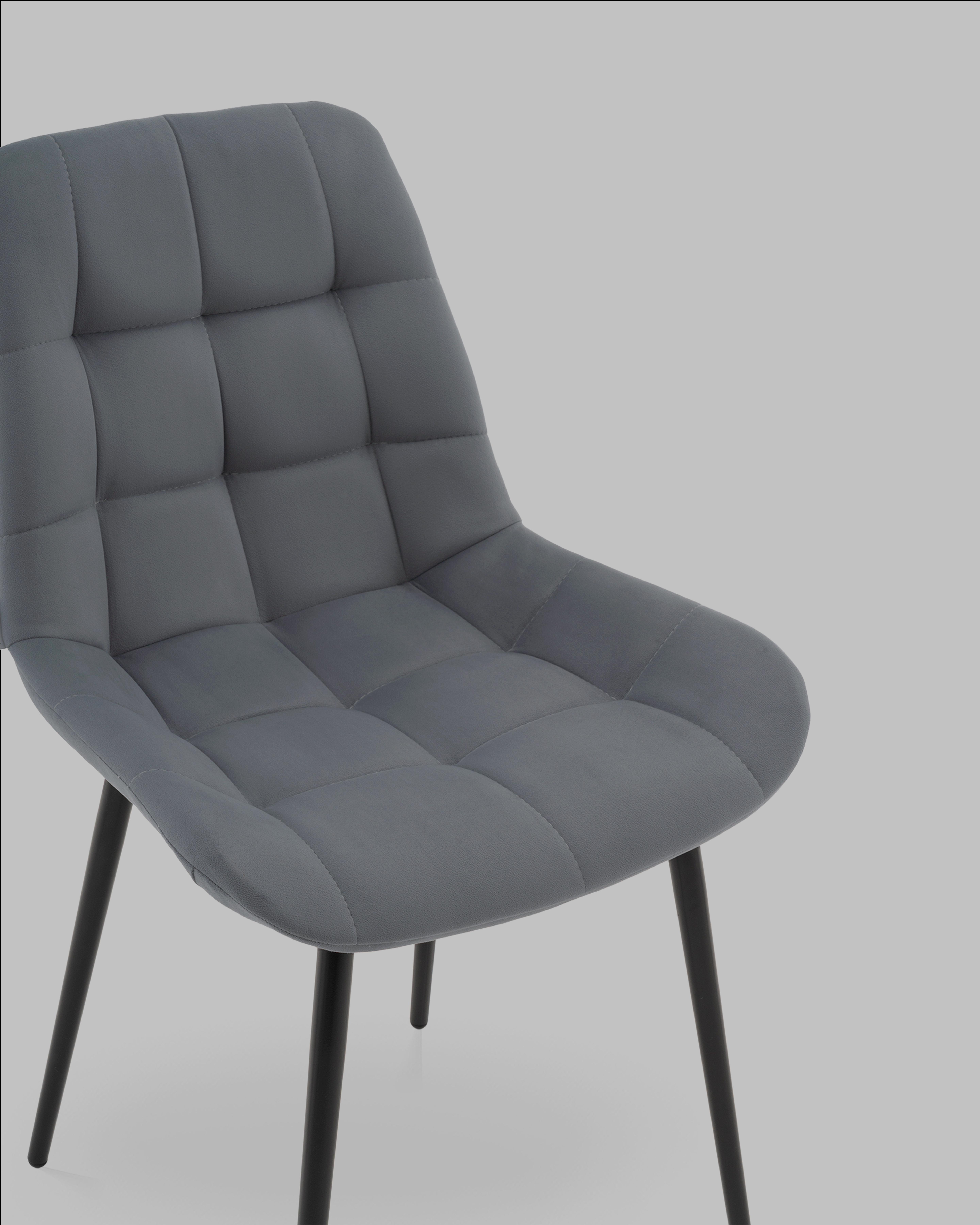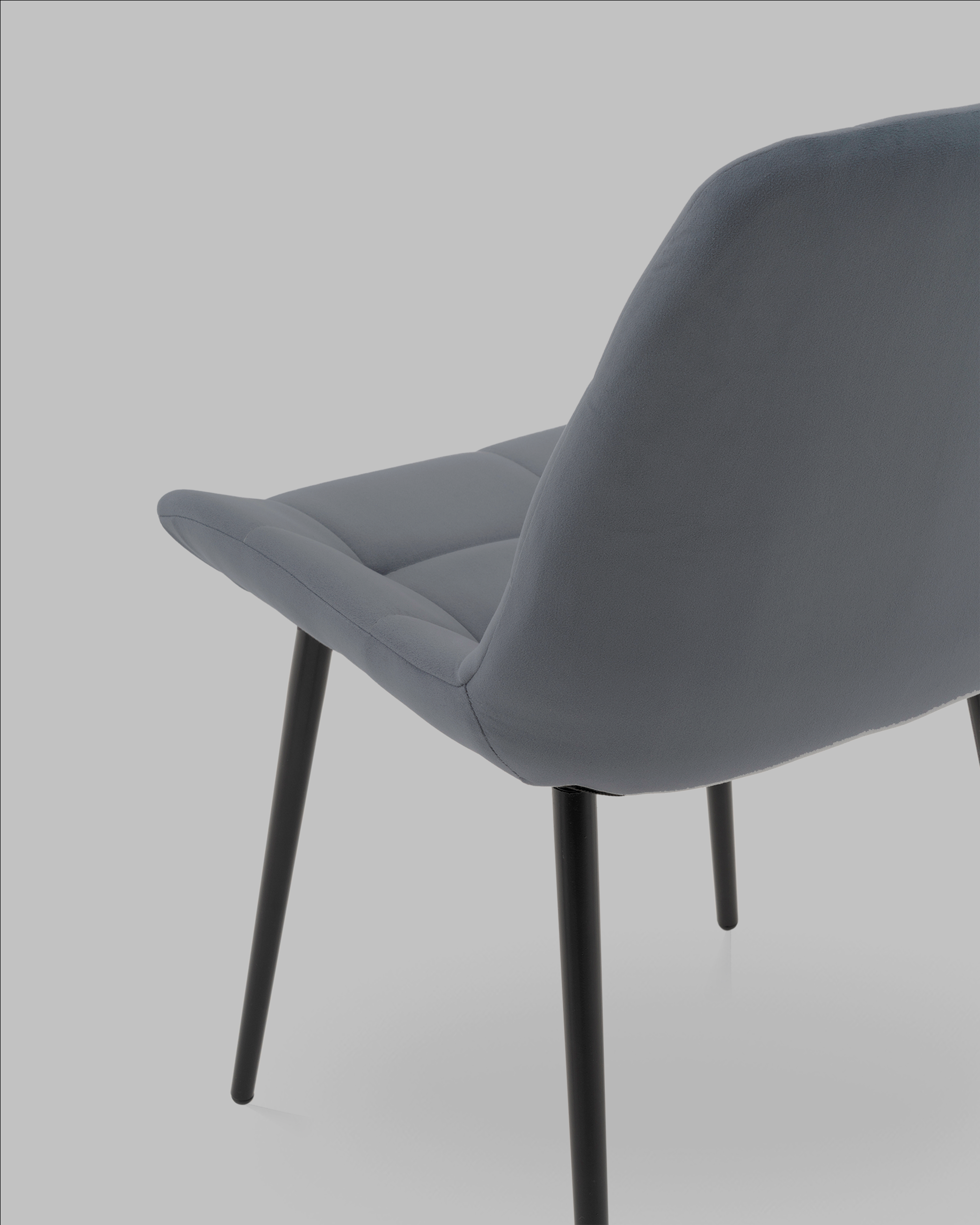 Материалы и дизайн. Выполнен из высококачественного велюра — тактильно приятного, износостойкого и простого в уходе материала. Обивка тёмно-серого цвета идеально сочетается с черными металлическими ножками, которые придают стулу элегантный и современный вид. Сиденье с анатомической формой гарантирует комфорт, а декоративная стяжка добавляет объём и предотвращает от появления вмятин. Стул подходит для длительного использования, не теряя своей формы и внешнего вида.