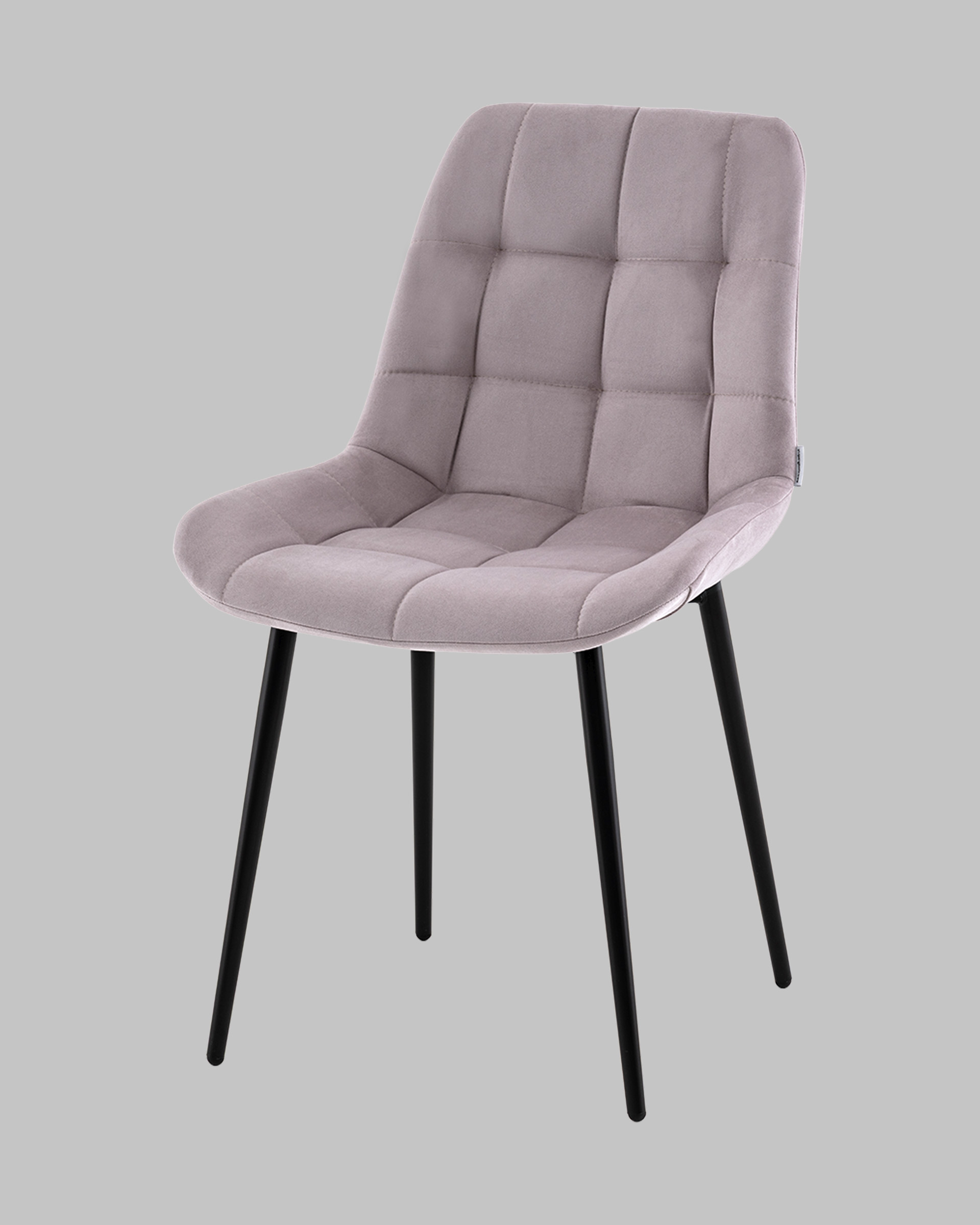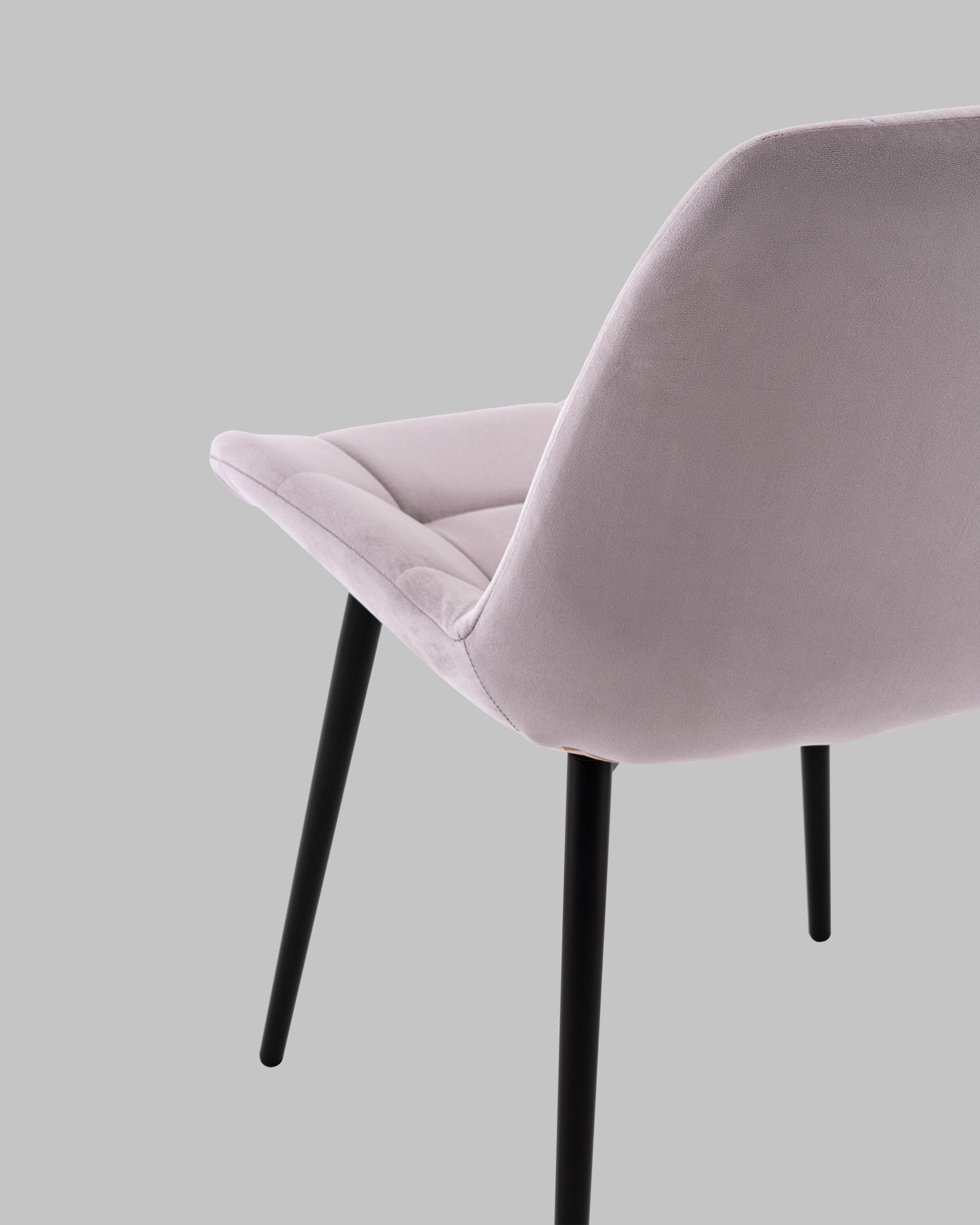 Материалы и дизайн. Выполнен из высококачественного велюра — тактильно приятного, износостойкого и простого в уходе материала. Обивка светло-сиреневого цвета идеально сочетается с черными металлическими ножками, которые придают стулу элегантный и современный вид. Сиденье с анатомической формой гарантирует комфорт, а декоративная стяжка добавляет объём и предотвращает от появления вмятин. Стул подходит для длительного использования, не теряя своей формы и внешнего вида.