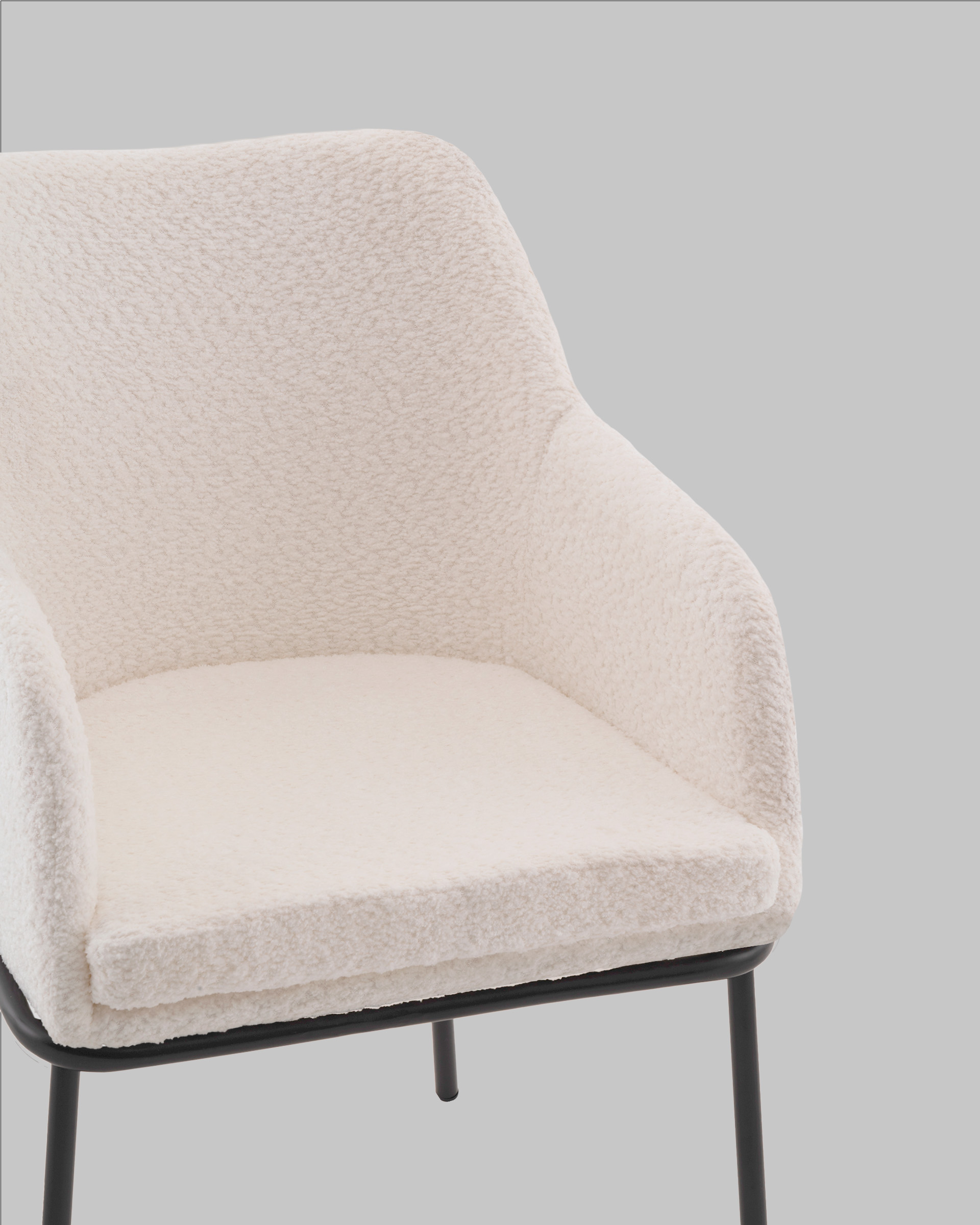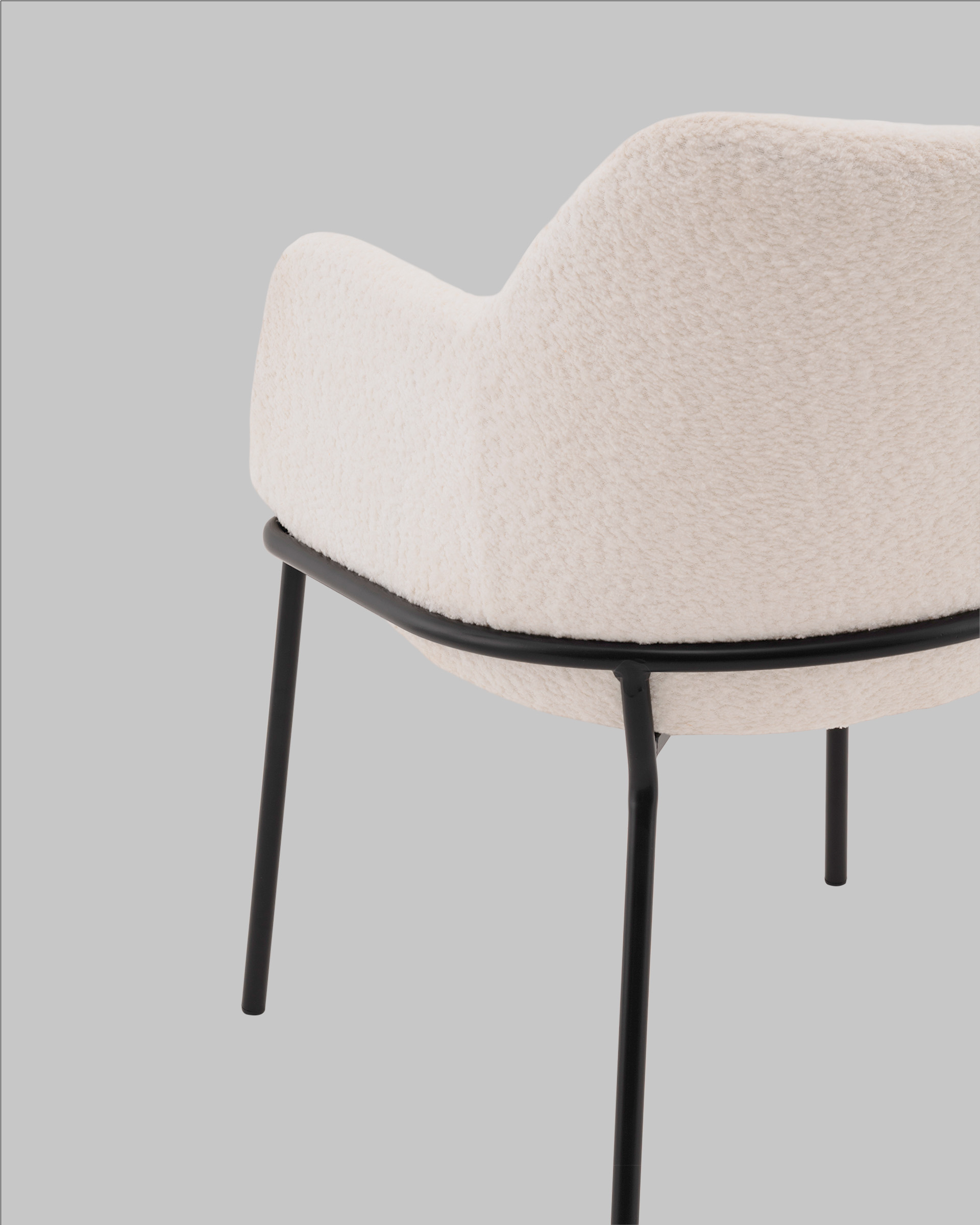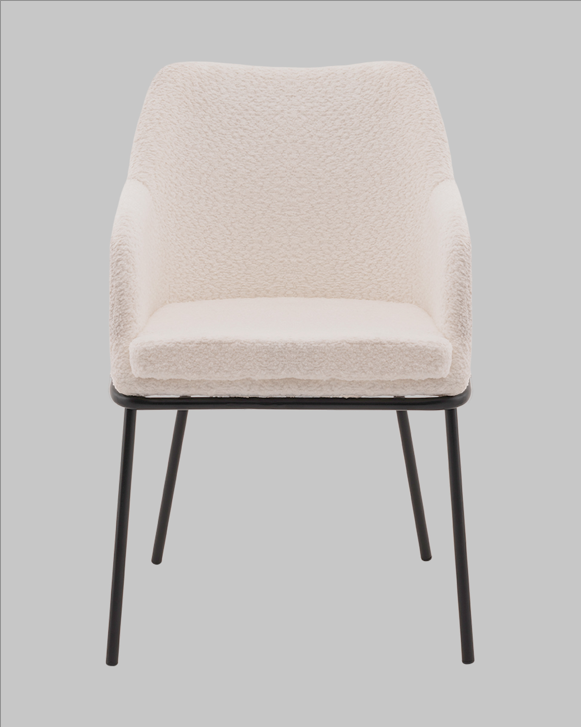 Запросить индивидуальное предложениеСтул с подлокотниками Кози — это сочетание мягких форм и обволакивающего комфорта. Обивка из нежной ткани букле в сером цвете добавляет интерьеру уюта и визуального тепла, а округлая форма спинки и подлокотников будто приглашает присесть и расслабиться. Чёрный металлический каркас подчёркивает графичность силуэта и придаёт модели современный акцент.