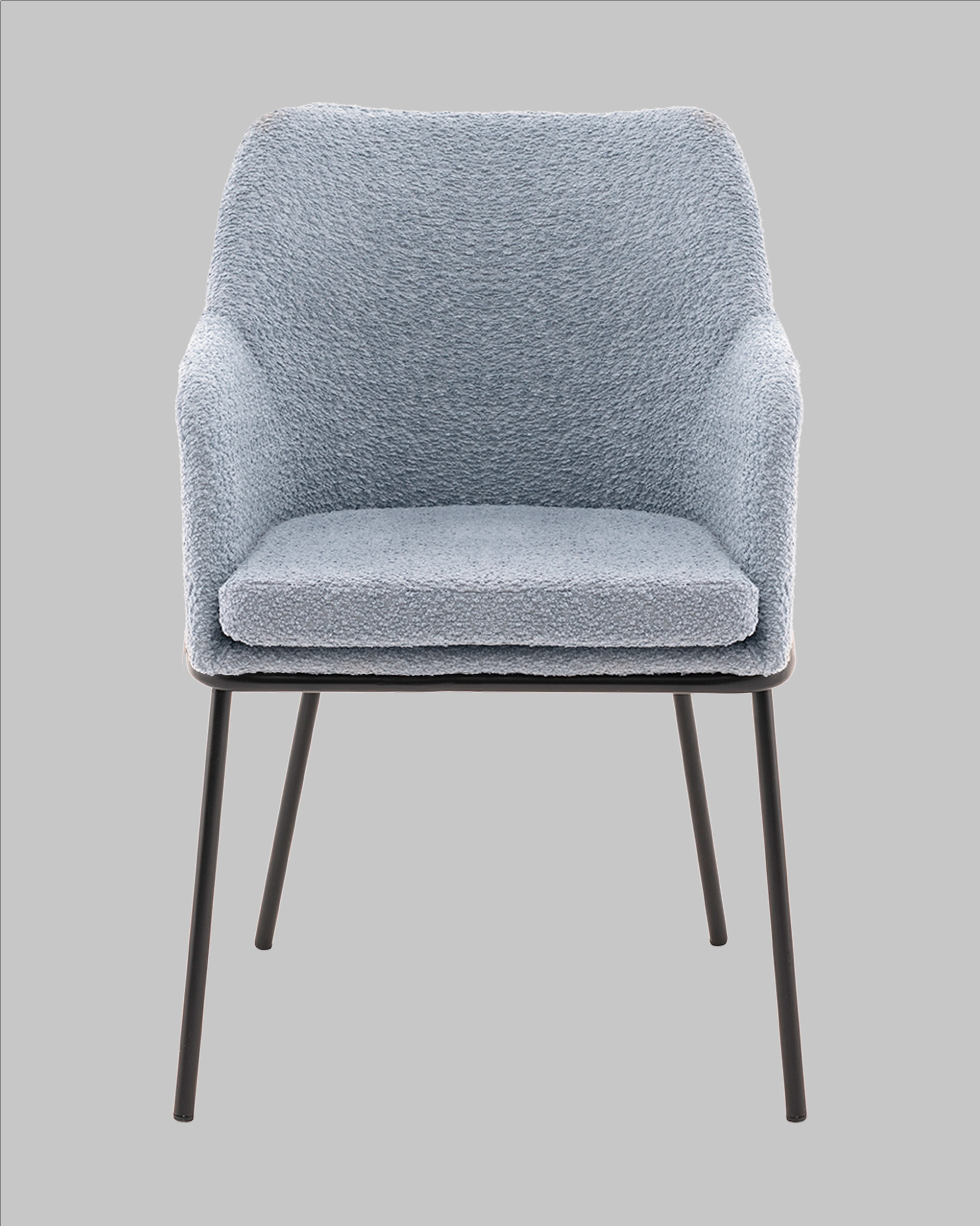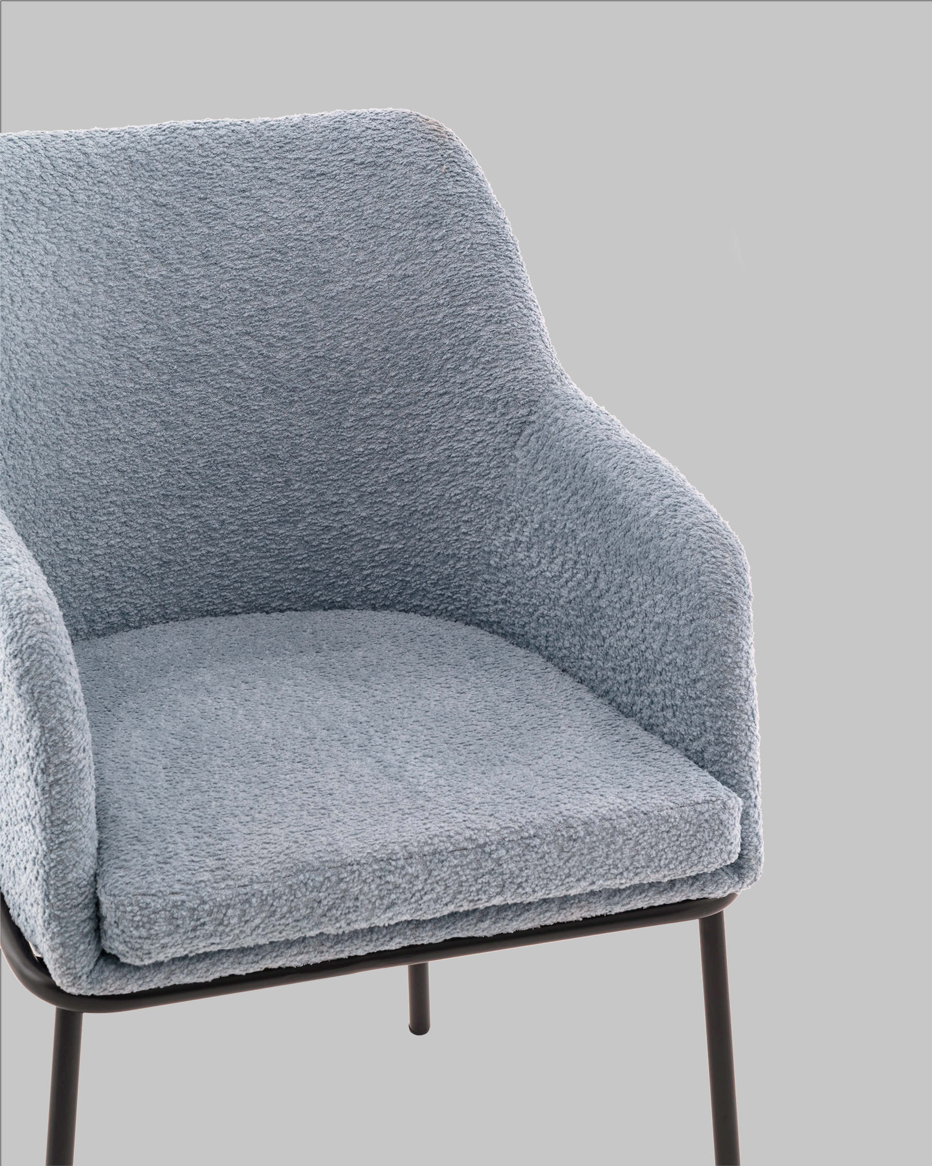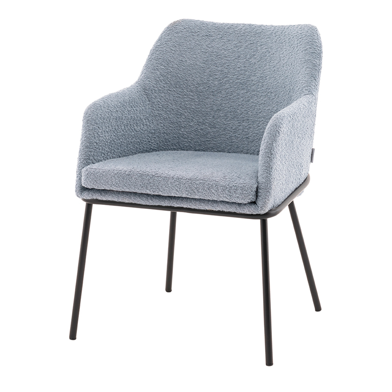 Запросить индивидуальное предложениеСтул с подлокотниками Кози — это сочетание мягких форм и обволакивающего комфорта. Обивка из нежной ткани букле в сером цвете добавляет интерьеру уюта и визуального тепла, а округлая форма спинки и подлокотников будто приглашает присесть и расслабиться. Чёрный металлический каркас подчёркивает графичность силуэта и придаёт модели современный акцент.