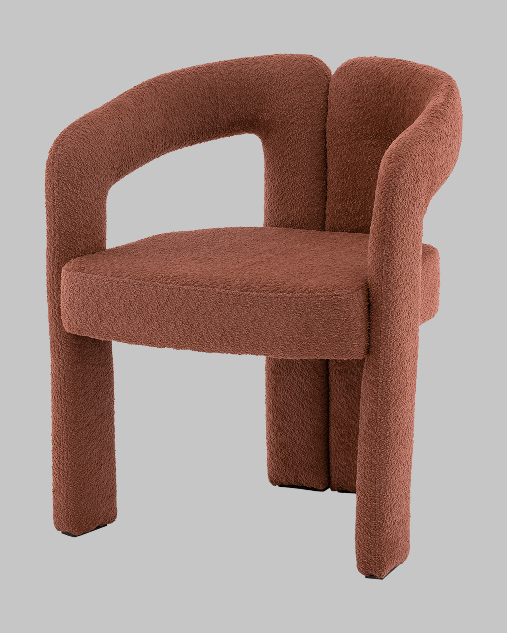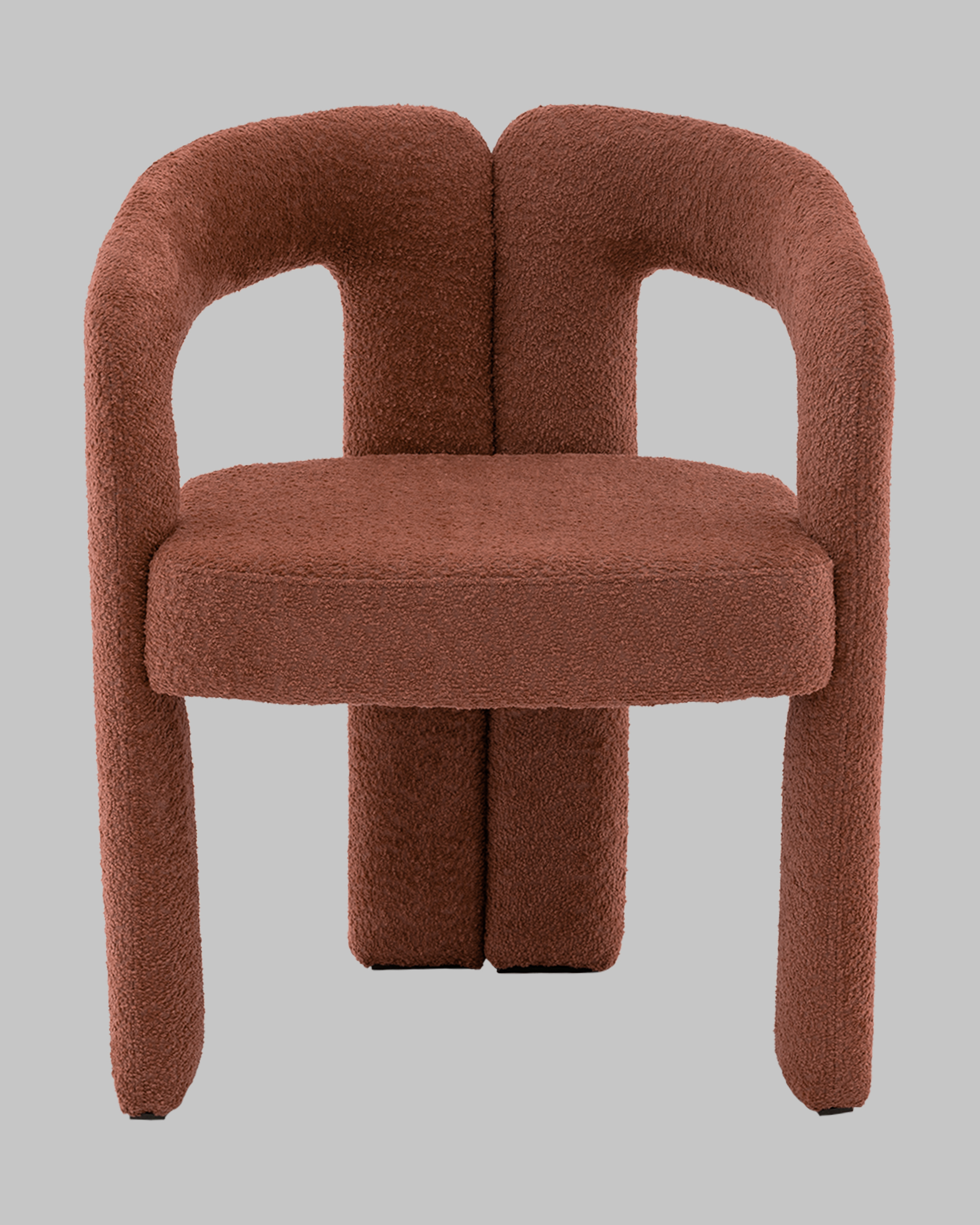 Идеальный выбор для стильного интерьера Универсальный терракотовый оттенок и текстурная ткань букле легко сочетаются с современными интерьерами в стиле сканди, минимализм или модерн. Стул Болинджер станет не просто функциональной деталью, а выразительным элементом, который придаст пространству индивидуальность и уют.