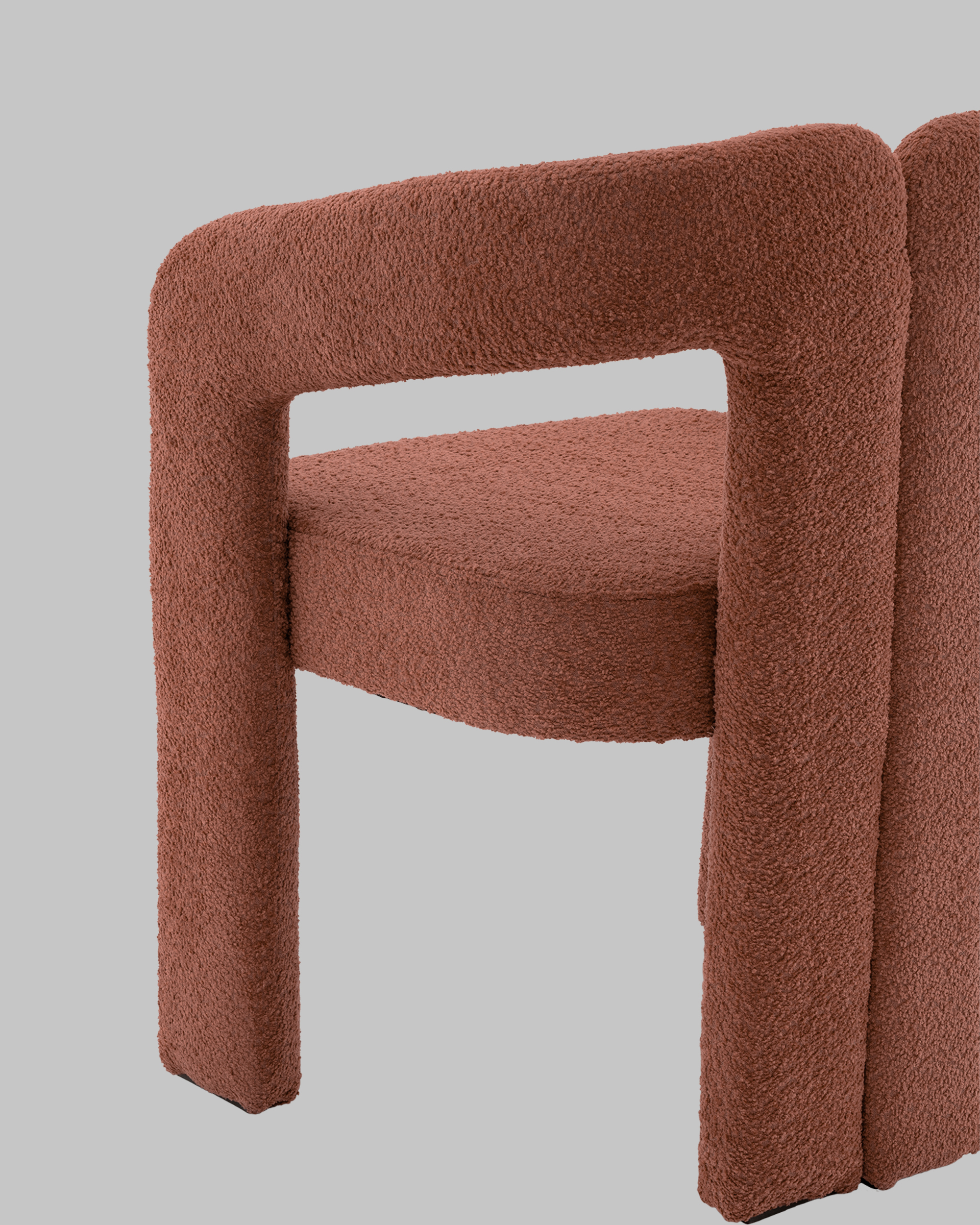 Стул Болинджер — это гармония скульптурной формы и уюта. Полностью обитый светло-серым букле, он выглядит монолитно и при этом невероятно мягко. Плавные линии спинки и подлокотников создают обволакивающий силуэт, который станет стильным акцентом в интерьере и подчеркнёт современный вкус.