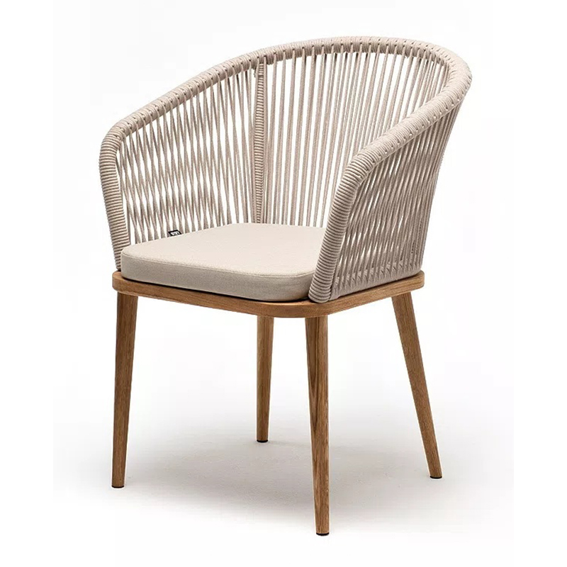 "Марсель" стул плетеный из роупа, основание дуб, роуп бежевый круглый, ткань бежевая 052