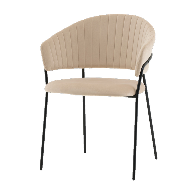 Запросить индивидуальное предложениеСтильный кухонный стул с оригинальной формой спинки, высокой поддержкой и подлокотниками. В качестве обивки используется мягкий велюр – приятный на ощупь износостойкий, гигроскопичный материал. Металлический каркас в черном цвете огибает спинку и выступает аккуратным акцентом модели. Широкое сиденье обеспечивает удобную посадку и уют.