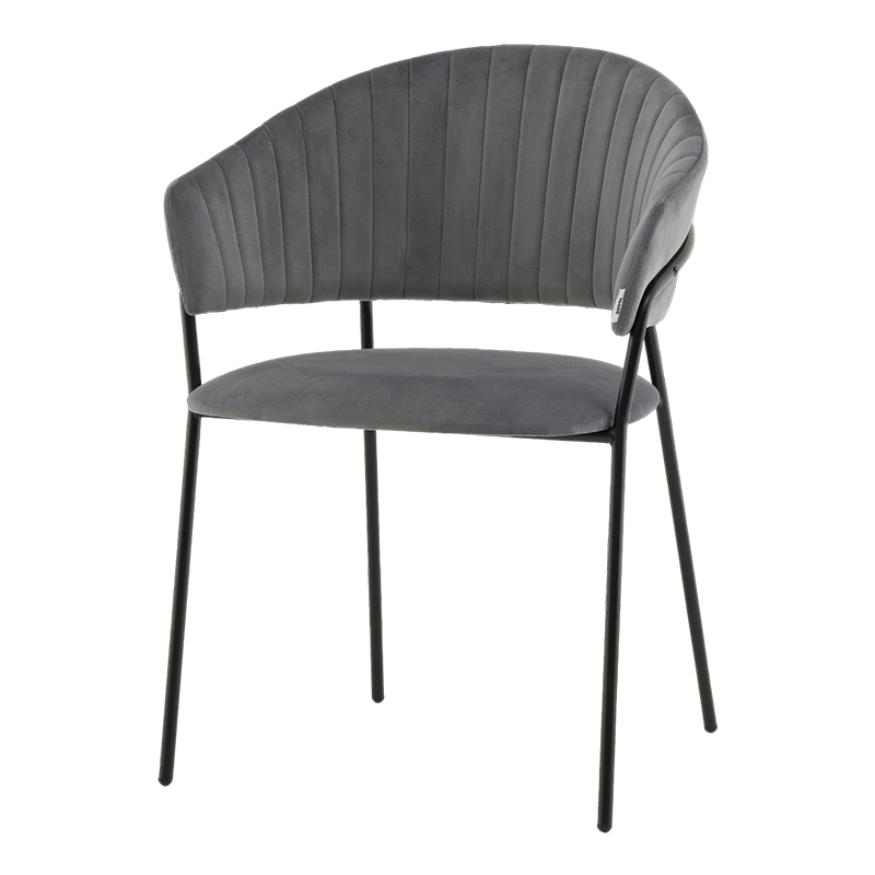 Запросить индивидуальное предложениеСтильный кухонный стул с оригинальной формой спинки, высокой поддержкой и подлокотниками. В качестве обивки используется мягкий велюр – приятный на ощупь износостойкий, гигроскопичный материал. Металлический каркас в черном цвете огибает спинку и выступает аккуратным акцентом модели. Широкое сиденье обеспечивает удобную посадку и уют.