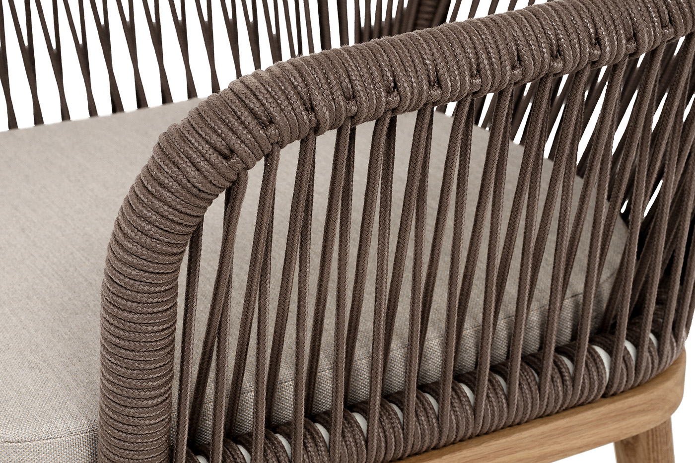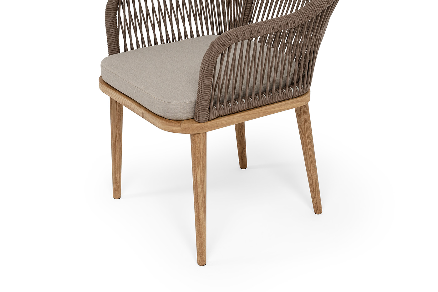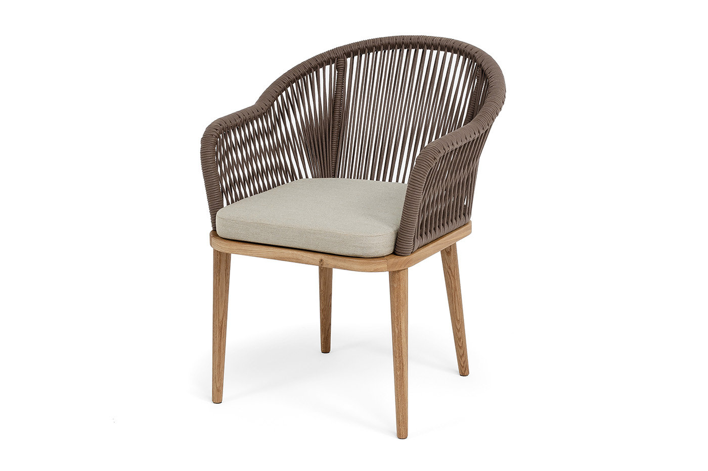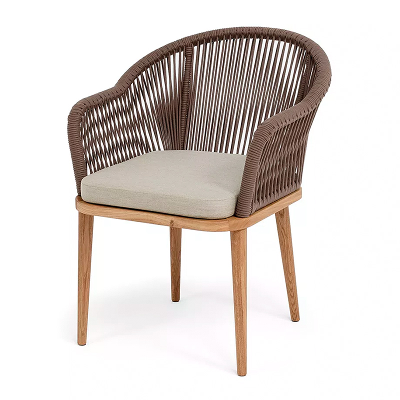 "Лион" стул плетеный из роупа, основание дуб, роуп коричневый круглый, ткань бежевая 15052