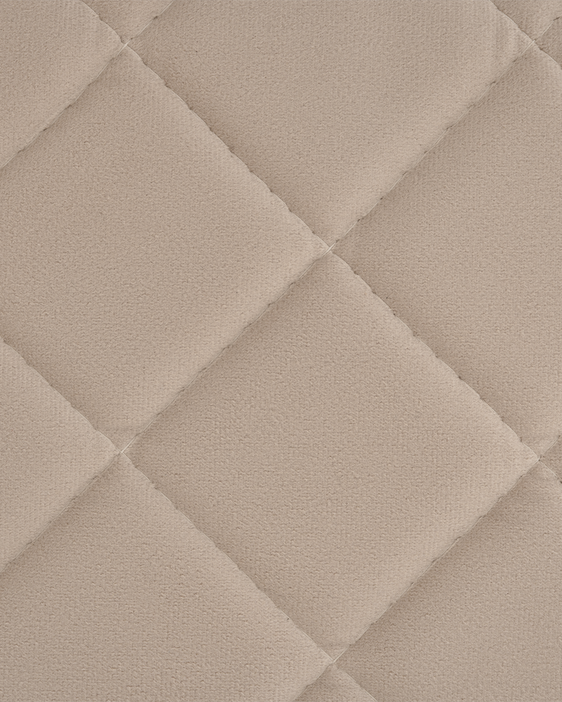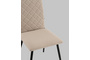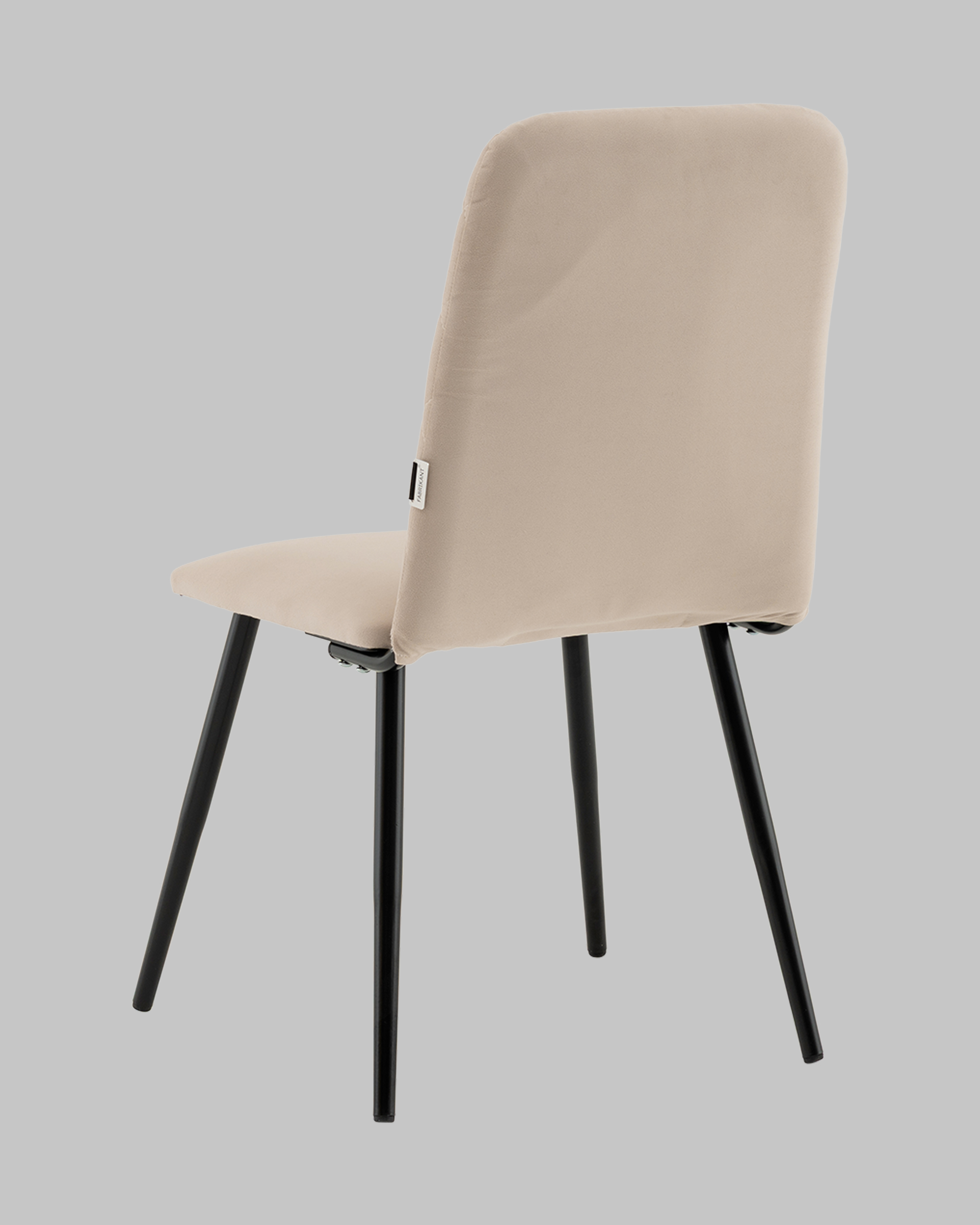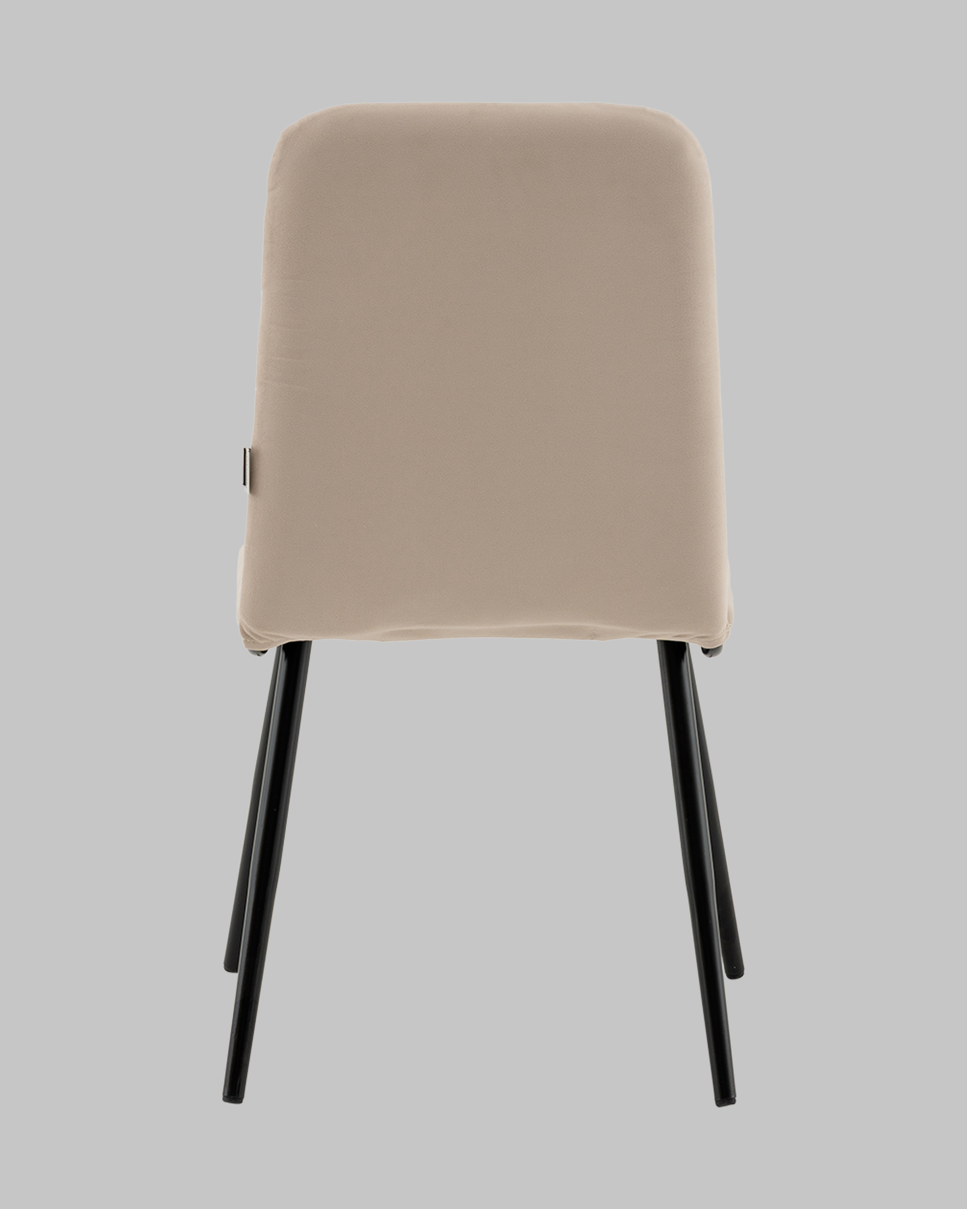 Спинка стула украшена аккуратной стёжкой в виде ромбов, добавляющей визуальный интерес и подчёркивающей уютный характер. Прямое сиденье и слегка наклонённая спинка обеспечивают удобную посадку для повседневных трапез и бесед. Прочные металлические ножки в чёрном цвете гарантируют надёжность и устойчивость конструкции.