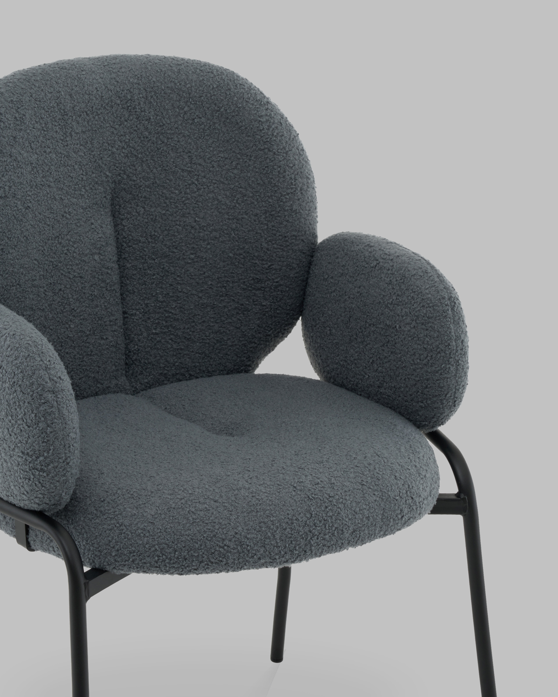 Запросить индивидуальное предложениеСовременный комфорт с акцентом на тактильность Моллек — это современный стул в лаконичном дизайне, выполненный в стиле минимализм. Мягкая трендовая обивка из ткани букле в тёмно-сером оттенке и плавные округлые формы спинки, сиденья и подлокотников создают ощущение уюта и изящности. Модель особенно актуальна для тех, кто ценит не только эстетику, но и комфорт в повседневном использовании.