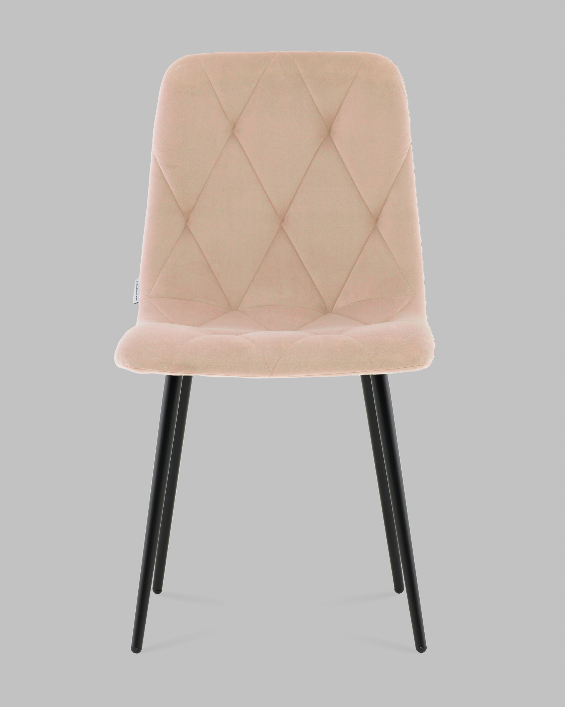 Комфортная посадка и прочная основа Мягкая обивка выполнена из приятного на ощупь велюра пыльно-сиреневого цвета. Спинка эргономичной формы обеспечивает комфортную поддержку спины. Металлические ножки окрашены в черный цвет и устойчиво выдерживают нагрузку до 120 кг.