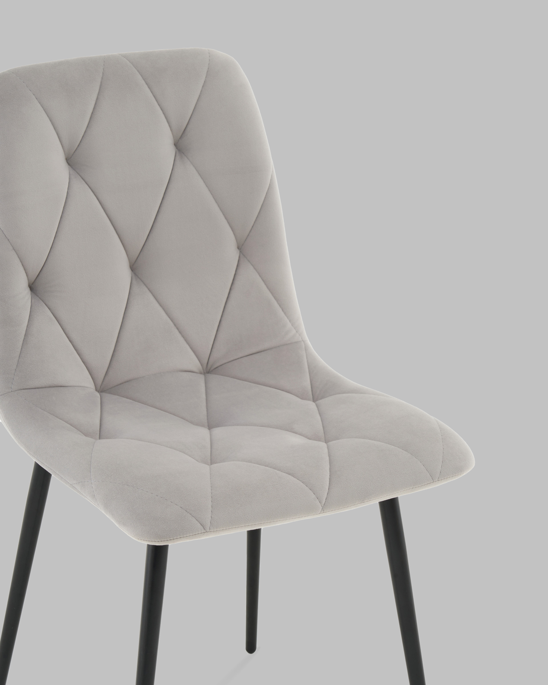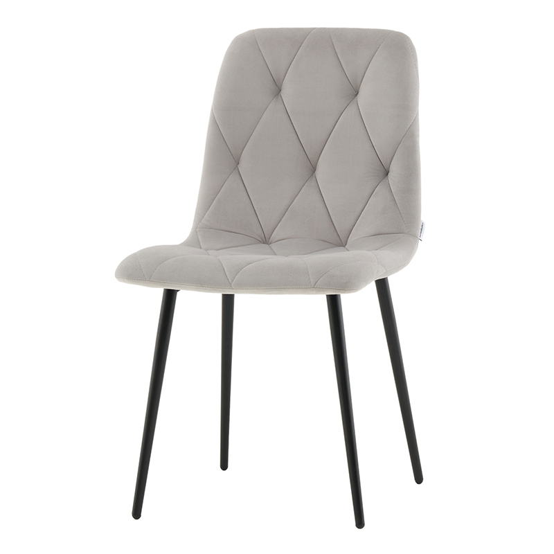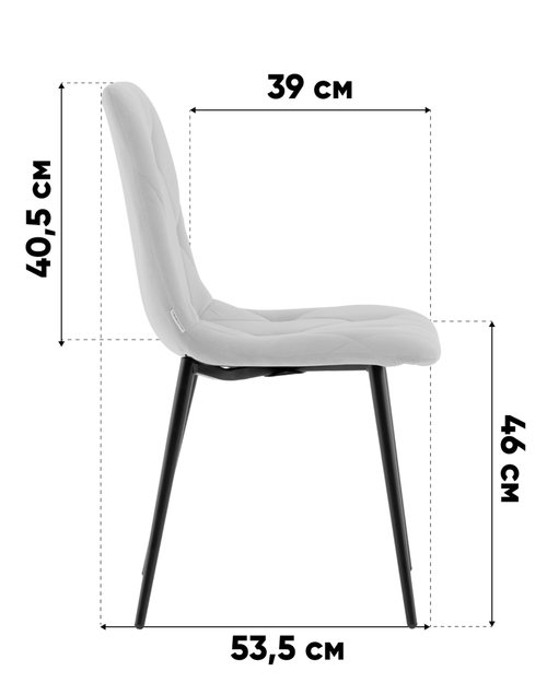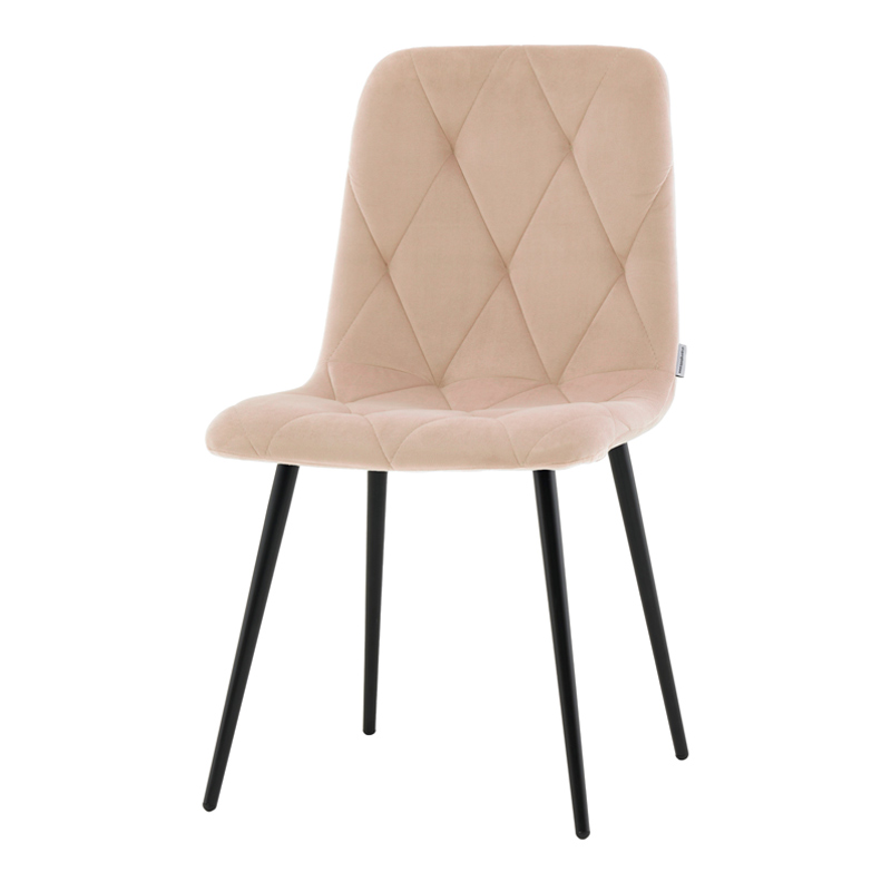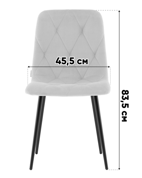 Комфортная посадка и прочная основа Мягкая обивка выполнена из приятного на ощупь велюра пыльно-сиреневого цвета. Спинка эргономичной формы обеспечивает комфортную поддержку спины. Металлические ножки окрашены в черный цвет и устойчиво выдерживают нагрузку до 120 кг.