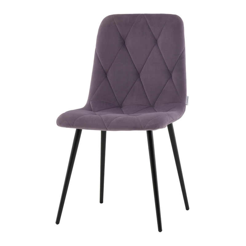 Комфортная посадка и прочная основа Мягкая обивка выполнена из приятного на ощупь велюра пыльно-сиреневого цвета. Спинка эргономичной формы обеспечивает комфортную поддержку спины. Металлические ножки окрашены в черный цвет и устойчиво выдерживают нагрузку до 120 кг.