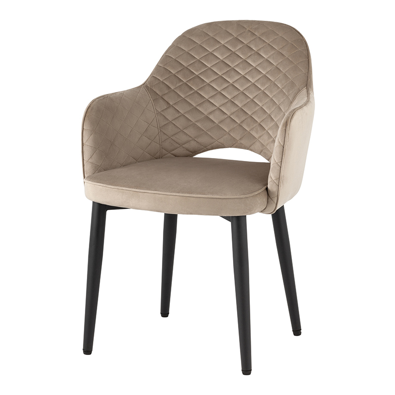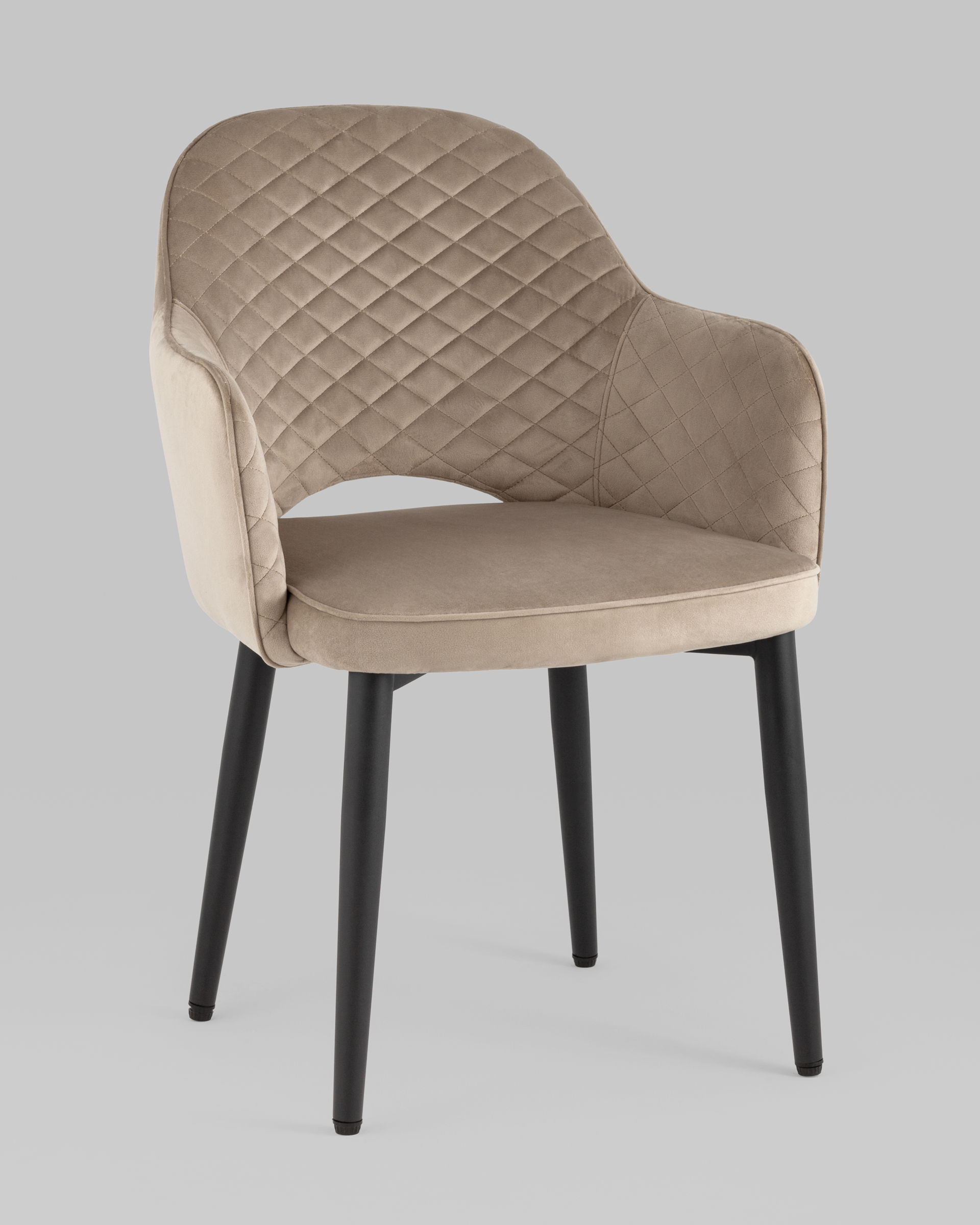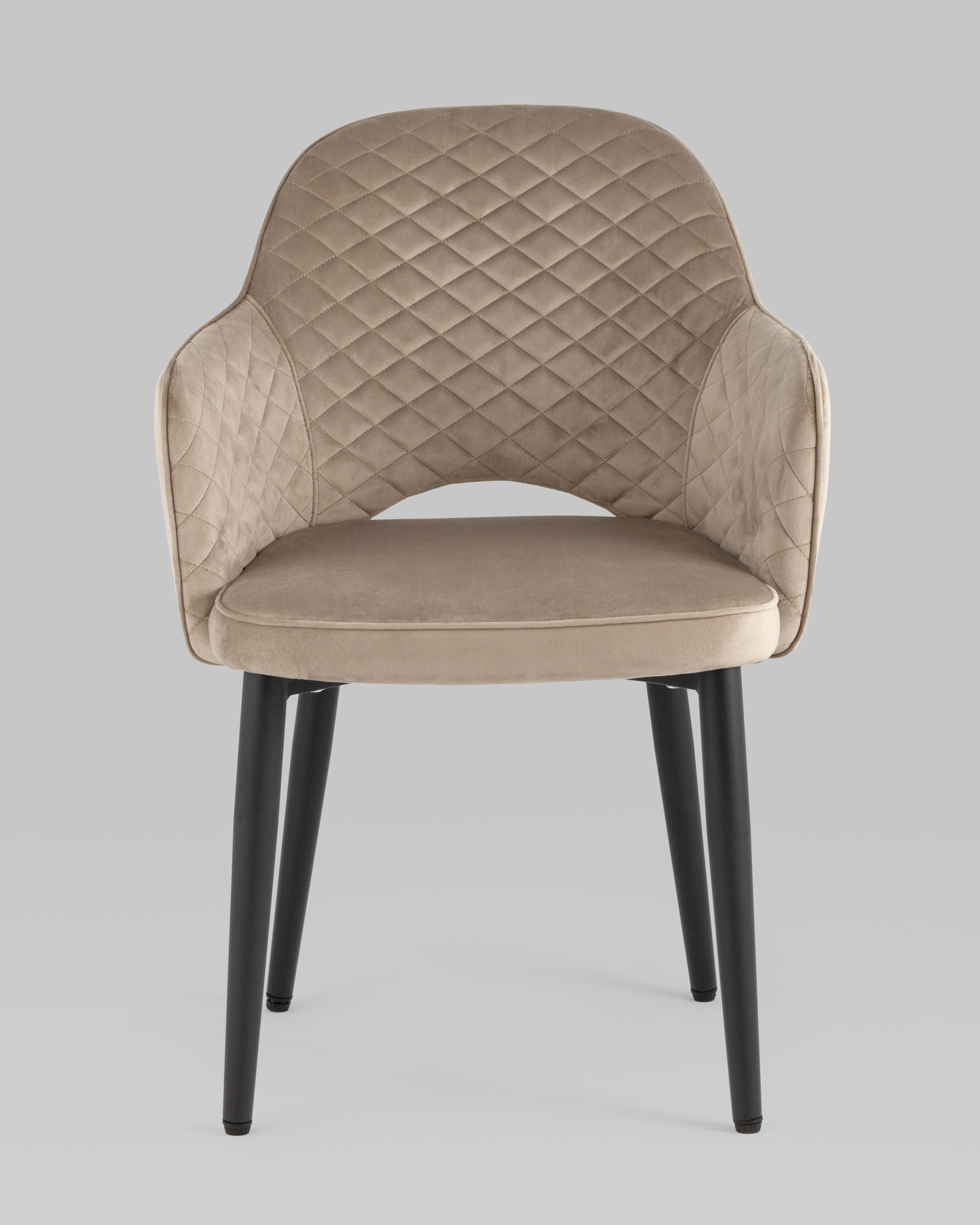 Запросить индивидуальное предложениеМягкий стул с округлой спинкой анатомической формы и удобными подлокотниками подарит комфорт и уют. В качестве обивки используется велюр - прочный износостойкий материал. Внутренняя сторона спинки и подлокотников украшена декором в виде ромбов. Высота подлокотников от пола - 64,5 см.