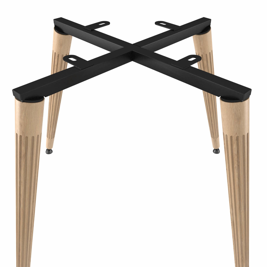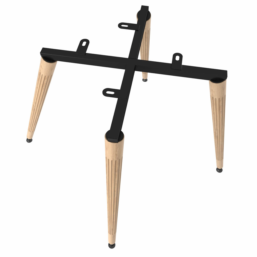 Ножки каркаса выполнены из натурального дерева (бук). Верхняя крестовина каркаса с приваренными фланцами выполнена из квадратной трубы.