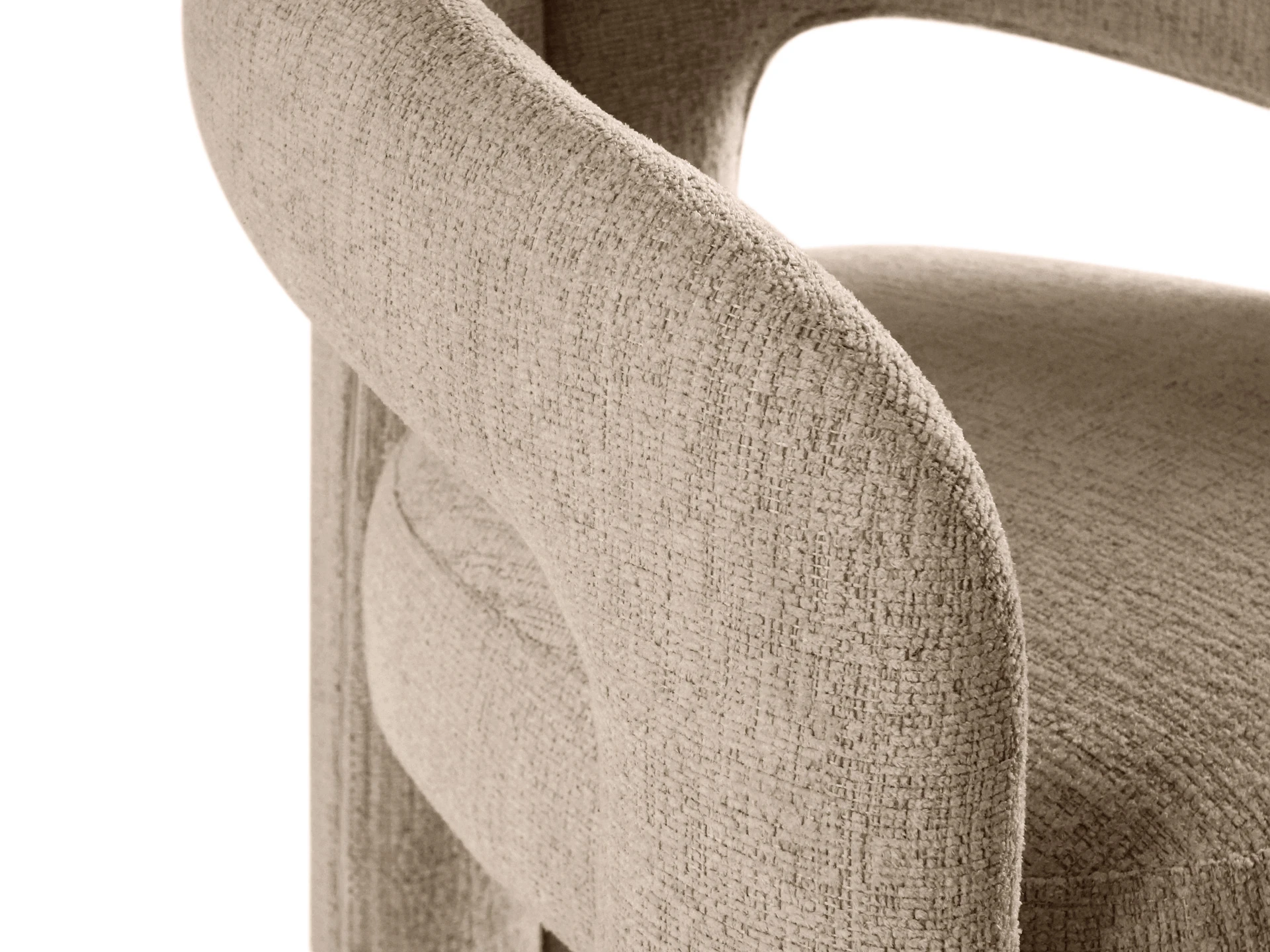 Округлая форма обеспечивает поддержку спины, дарит чувство уюта и надёжности. Силуэту присуща легкость и выразительность благодаря плавным изгибам. Мягкая обивка выполнена из износостойкого шенилла. Ворсистая ткань приятна на ощупь, добавит фактурности и многослойности в интерьер. Выбирайте нужный цвет обивки, чтобы максимально гармонично интегрировать стул Alatri в ваше пространство.