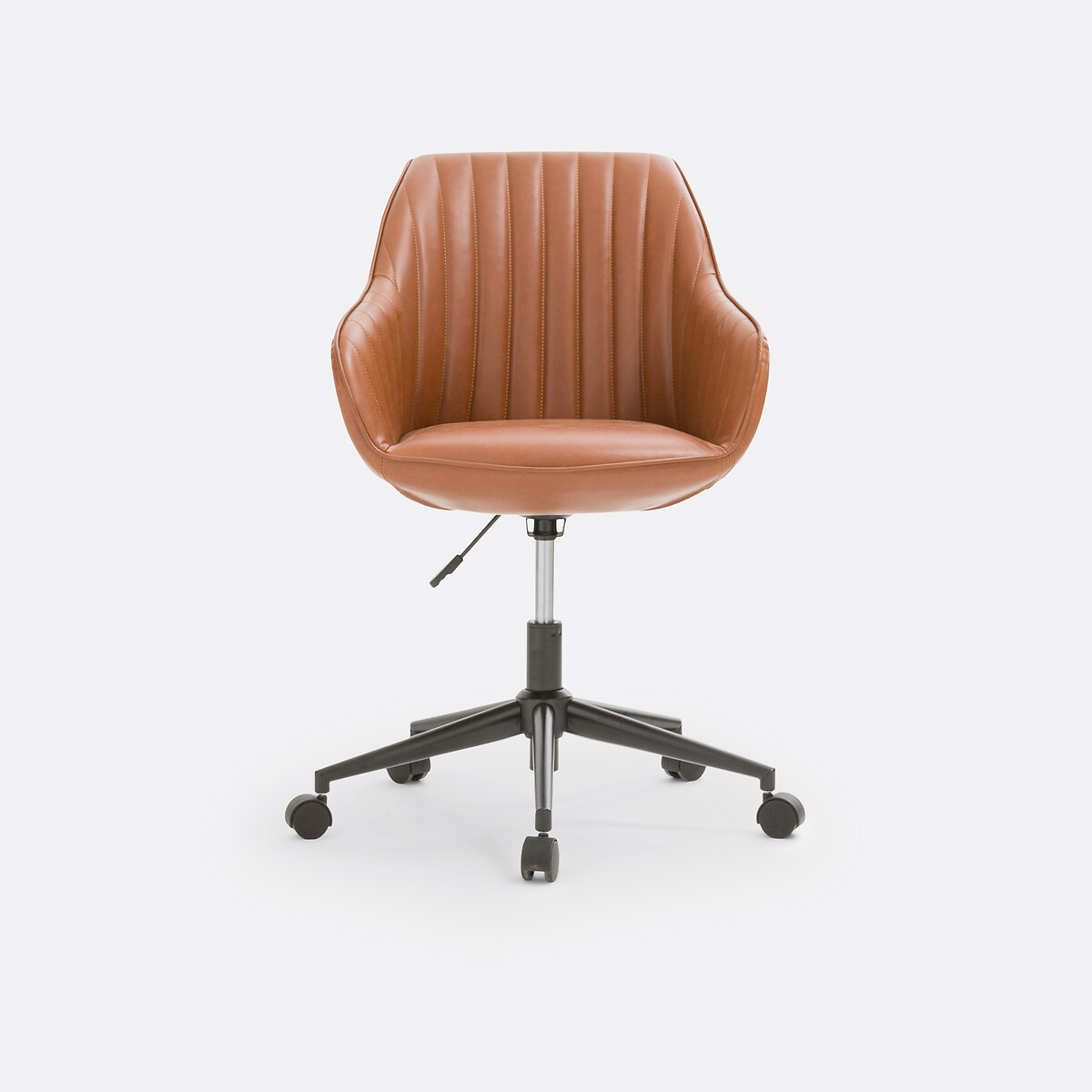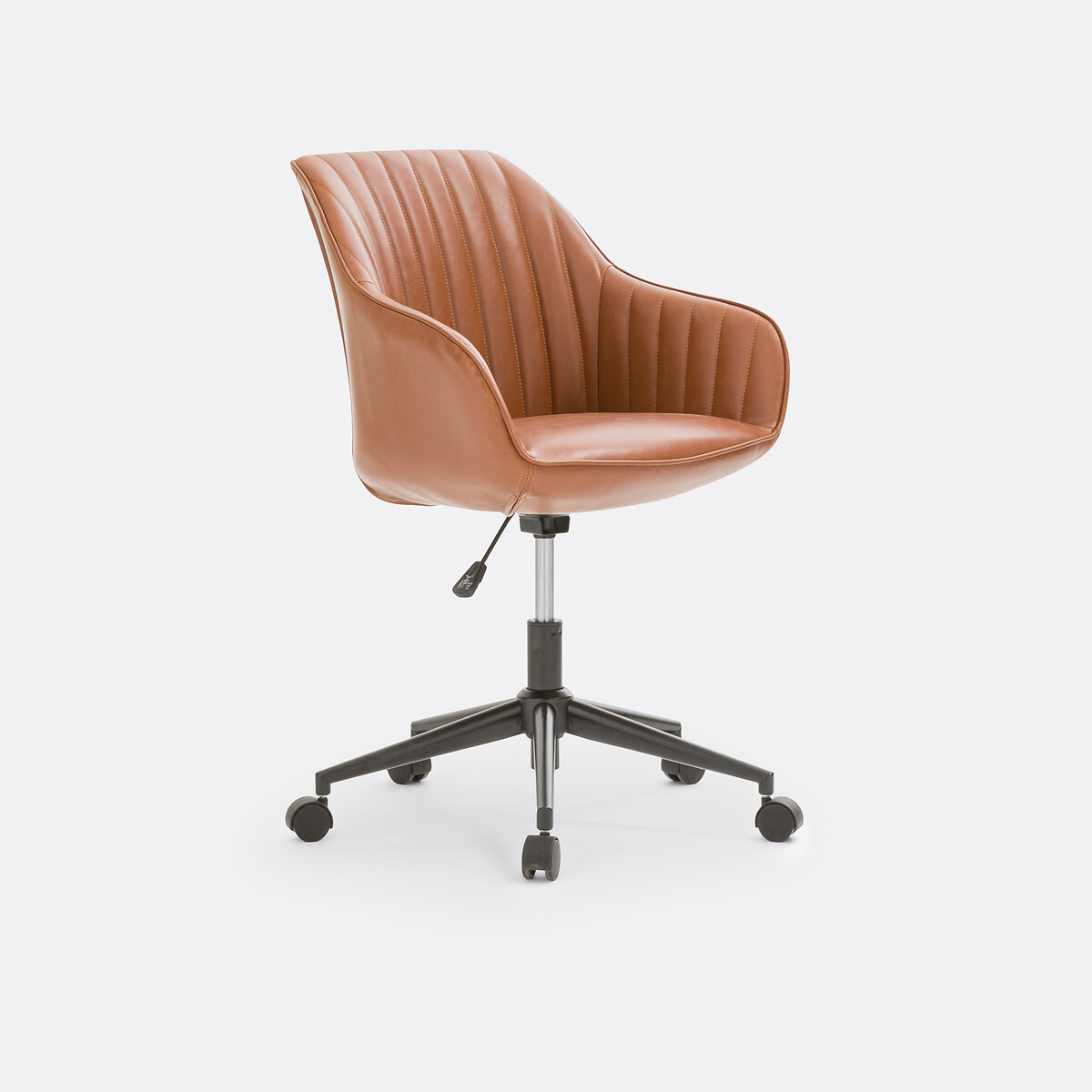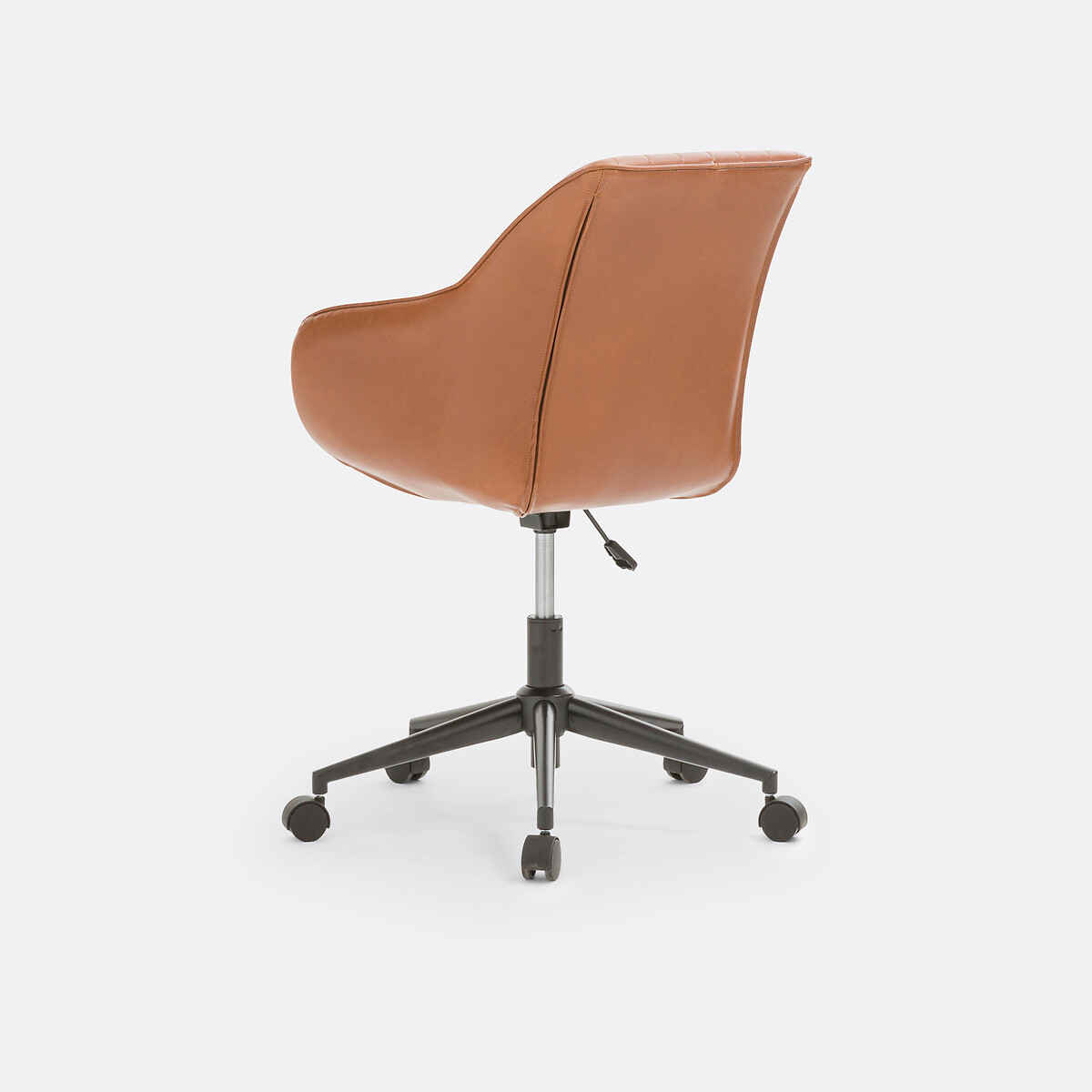 Простая и комфортная модель офисного кресла Hiba в винтажном стиле, то, что нужно. Так как оно оборудовано колесиками, вы будете иметь полную свободу передвижений.Описание • Вращающееся и регулируемое по высоте сиденье • Каркас из многослойной фанеры и стали • Наполнитель из пенополиуретана 25 кг/м³ и полиэстеровые волокна • Обивка из полиэстера с пропиткой из полиуретана • Стеганые подушки сиденья и спинки, отделка видимыми швами • Ножки из стали, покрытие эмалью черного цвета, 5 колесиков из полиамидаРазмеры • Ширина: 61 см • Высота: 80/90 см • Длина: 66 см • Сиденье: Д56 x В46/56 x Г43 см • Высота подлокотников: 68 см • Вес: 9,7 кг • Самостоятельная сборка. • ДРЕВЕСИНА ИЗ УСТОЙЧИВО УПРАВЛЯЕМЫХ ЛЕСОВ. Наличие знака FSC® означает, что древесина, из которой изготовлено изделие, добыта с соблюдением международных стандартов: в процессе добычи не были нарушены права коренных народов, местных жителей и работников, и заготовка велась методом устойчивого лесопользования.Размеры и вес упаковкиОдна упаковка • Д71 x В45 x Г61 см. 13 кг