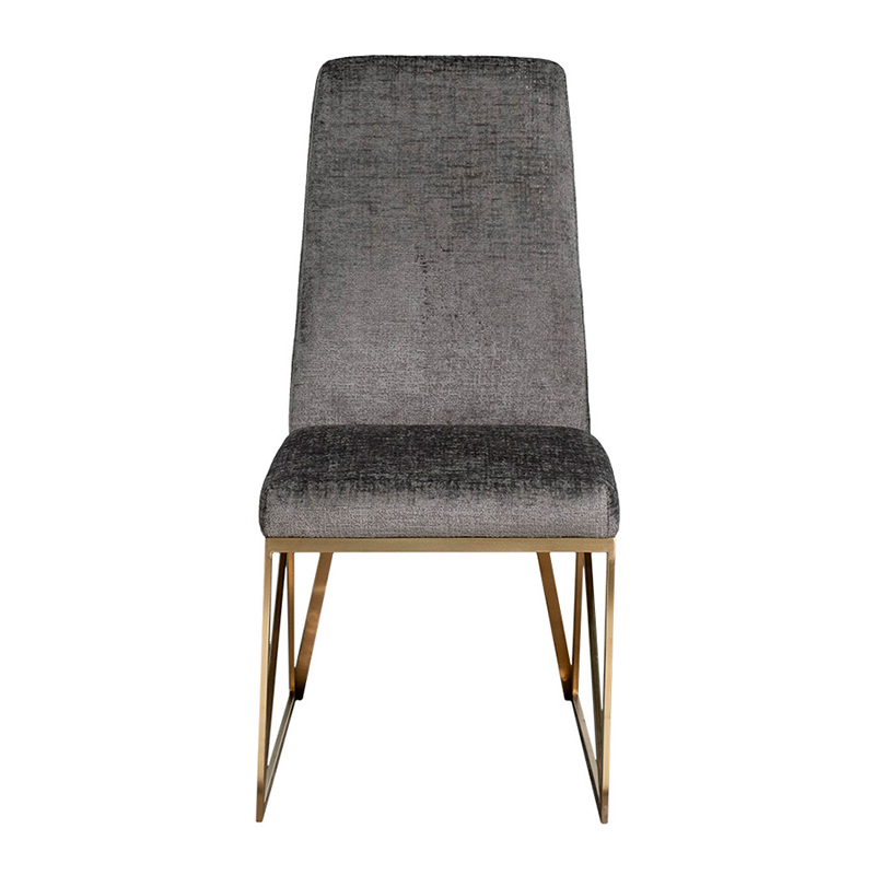 Запросить индивидуальное предложениеЭлегантный обеденный стул с высокой спинкой в стилистике современного ар-деко станет украшением вашей гостиной или столовой. Серый шенилл с серебристым проблеском выглядит роскошно и современно. Оригинальные ножки-опоры из нержавеющей стали брашированного золотого цвета придают конструкции устойчивость и прекрасно сочетаются с аристократически-изысканным цветом обивки. Габариты сиденья: ширина - 49см, глубина - 56см, высота от пола - 47см Идеально сочетается с обеденным столом 30F-14780.