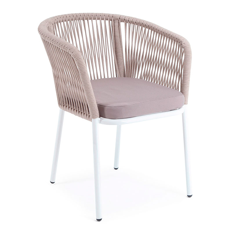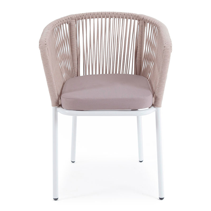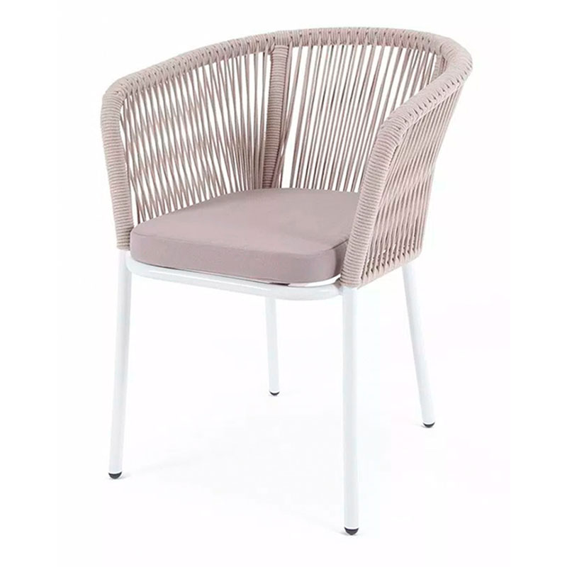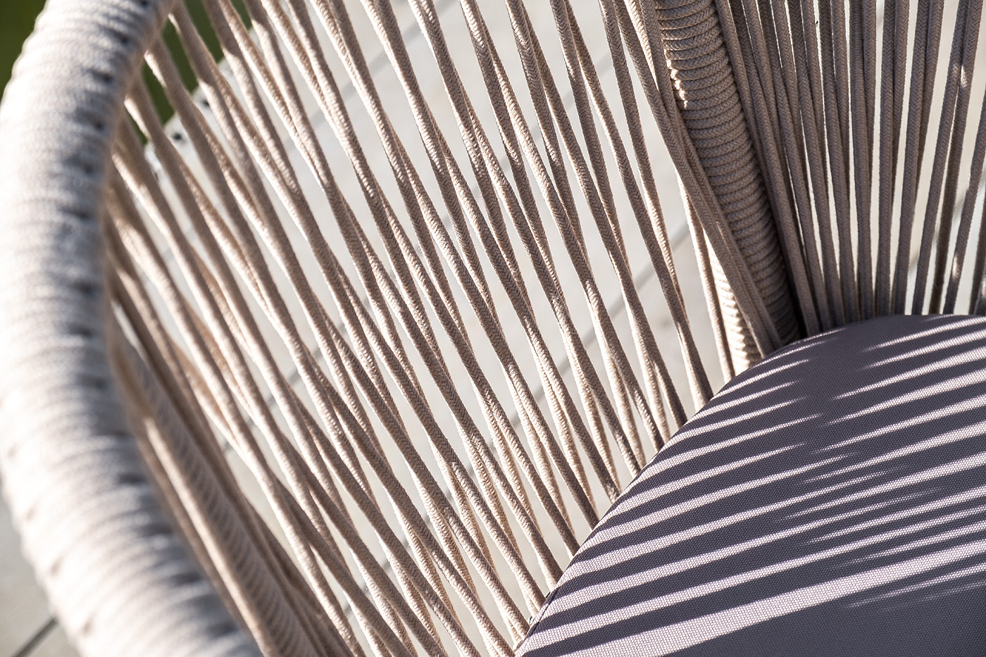 "Марсель" стул плетеный из роупа, каркас алюминий светло-серый (RAL7035) муар, роуп бежевый круглый, ткань бежевая 15052