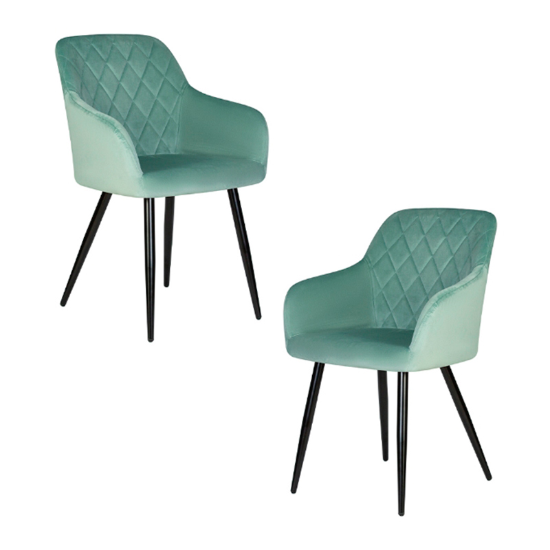 Набор 2 шт Стул обеденный DOBRIN ROBERT, черные матовые ножки, велюр V108-118 Мятный