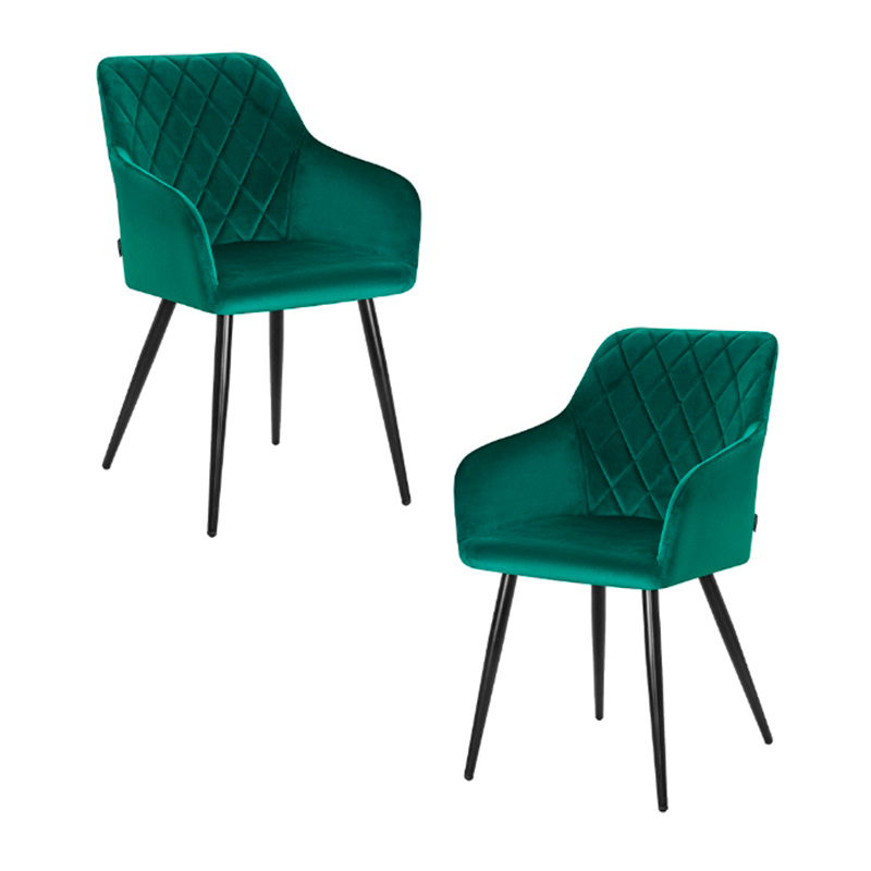 Набор 2 шт Стул обеденный DOBRIN ROBERT, черные матовые ножки, велюр V108-64 Зелёный