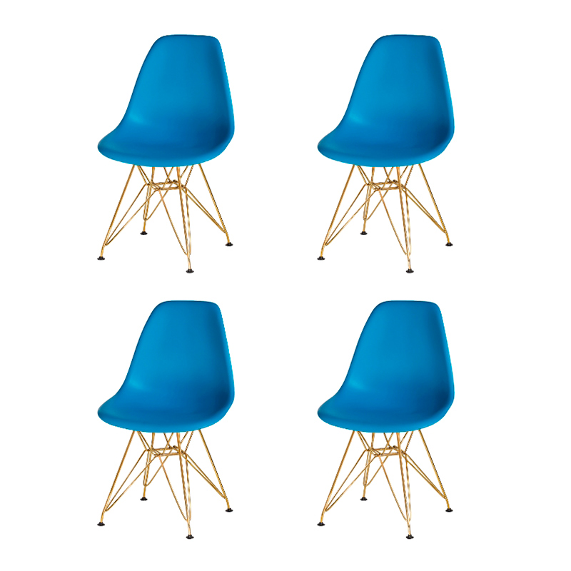 Набор 4 шт Стул обеденный DOBRIN DSR, ножки золотые, цвет голубой (BE-02)