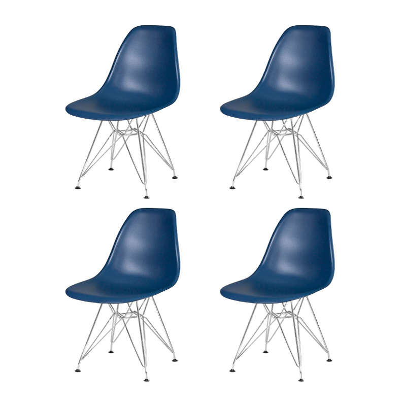 Набор 4 шт Стул обеденный DOBRIN DSR, ножки хром, цвет тёмно-синий (BE-12)