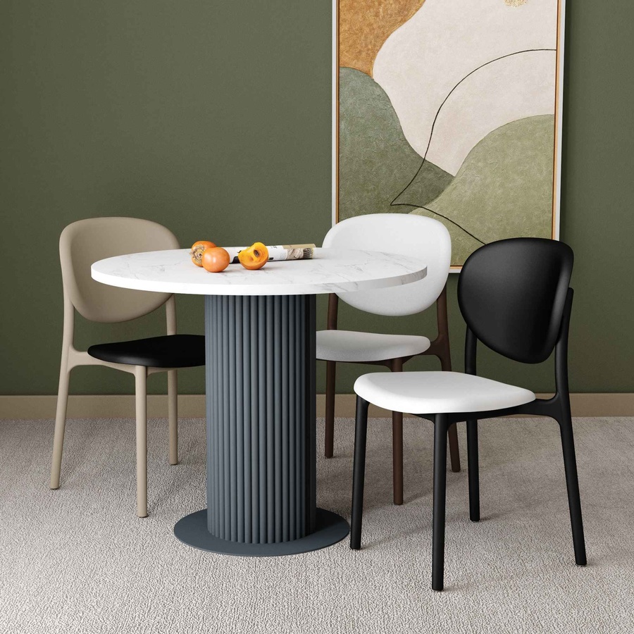 Благодаря округлой форме и объёмному силуэту, стул визуально воспринимается как мягкий и воздушный. Такой дизайн не только делает интерьер более лёгким, но и визуально добавляет уюта