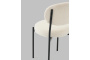 Обивка из плотного материала букле, которая обладает мягкостью и долговечностью, ножки изготовлены из металла в черном цвете. На ножках дополнительно предусмотрены специальные подпятники, которые предотвращают скольжение и повреждение напольного покрытия.