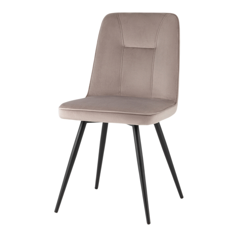 Материалы и цвета. В качестве обивки стула используется мягкий велюр – приятный на ощупь, износостойкий, гигроскопичный материал, прост в уходе и быстро восстанавливает первоначальную форму. Черные металлические ножки добавляют модели прочности и устойчивости.