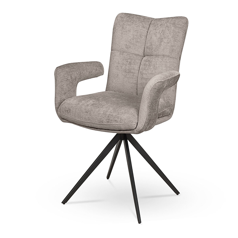 Запросить индивидуальное предложениеСтул с подлокотниками Lara (Лара) может поворачиваться на 180° и возвращаться в исходное положение, благодаря поворотно-возвратному механизму. Такой стул можно использовать как в качестве обеденного стула, так и в виде рабочего кресла к письменному столу. Его обивка исполнена в ткани серого оттенка. Ножки из черного металла. Он будет хорошо смотреться с самыми разными столами благодаря сдержанному цветовому решению и универсальному дизайну.