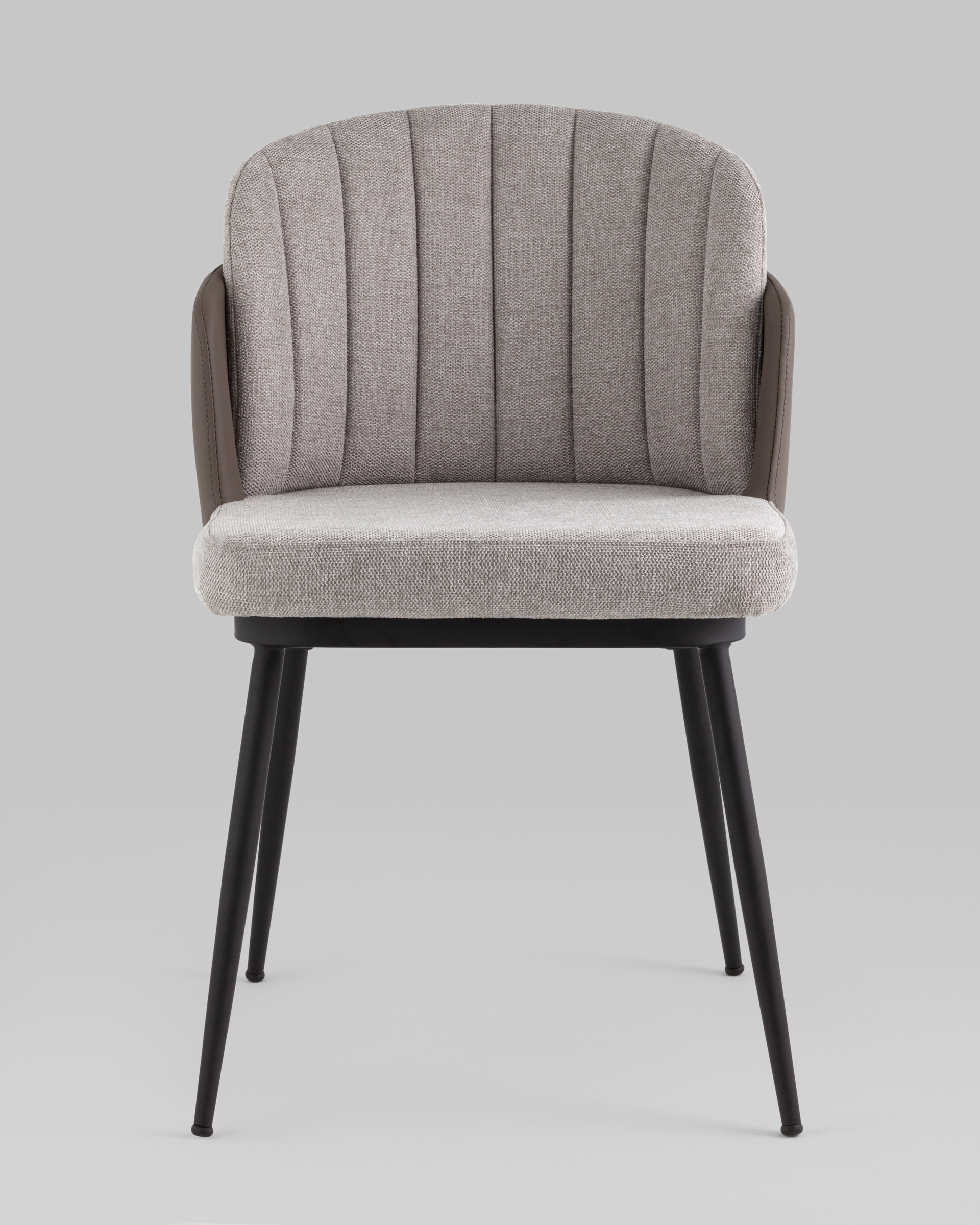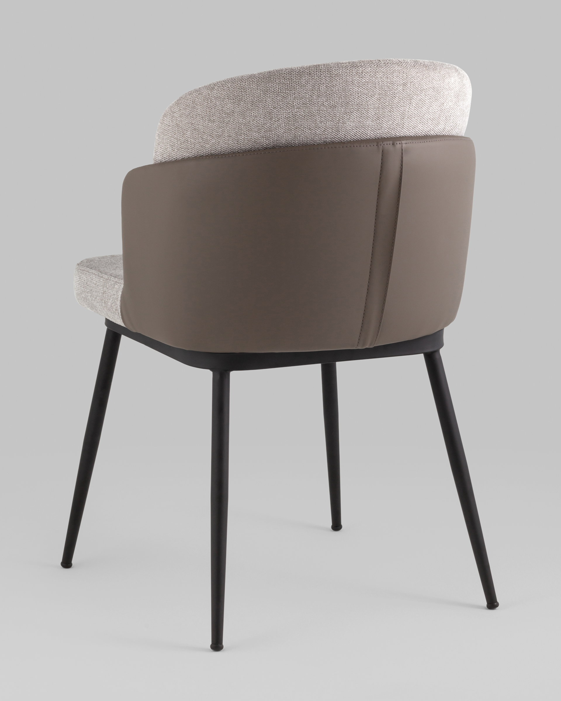 Мягкий кухонный стул с комбинированной обивкой из рогожки и экокожи. Надежная опора достигается благодаря металлическому каркасу и удобным устойчивым ножкам. Спинка состоит из двух элементов, внутренняя часть с вертикальной строчкой. На ножках предусмотрены специальные подпятники, которые предотвращают скольжение и не царапают напольное покрытие.