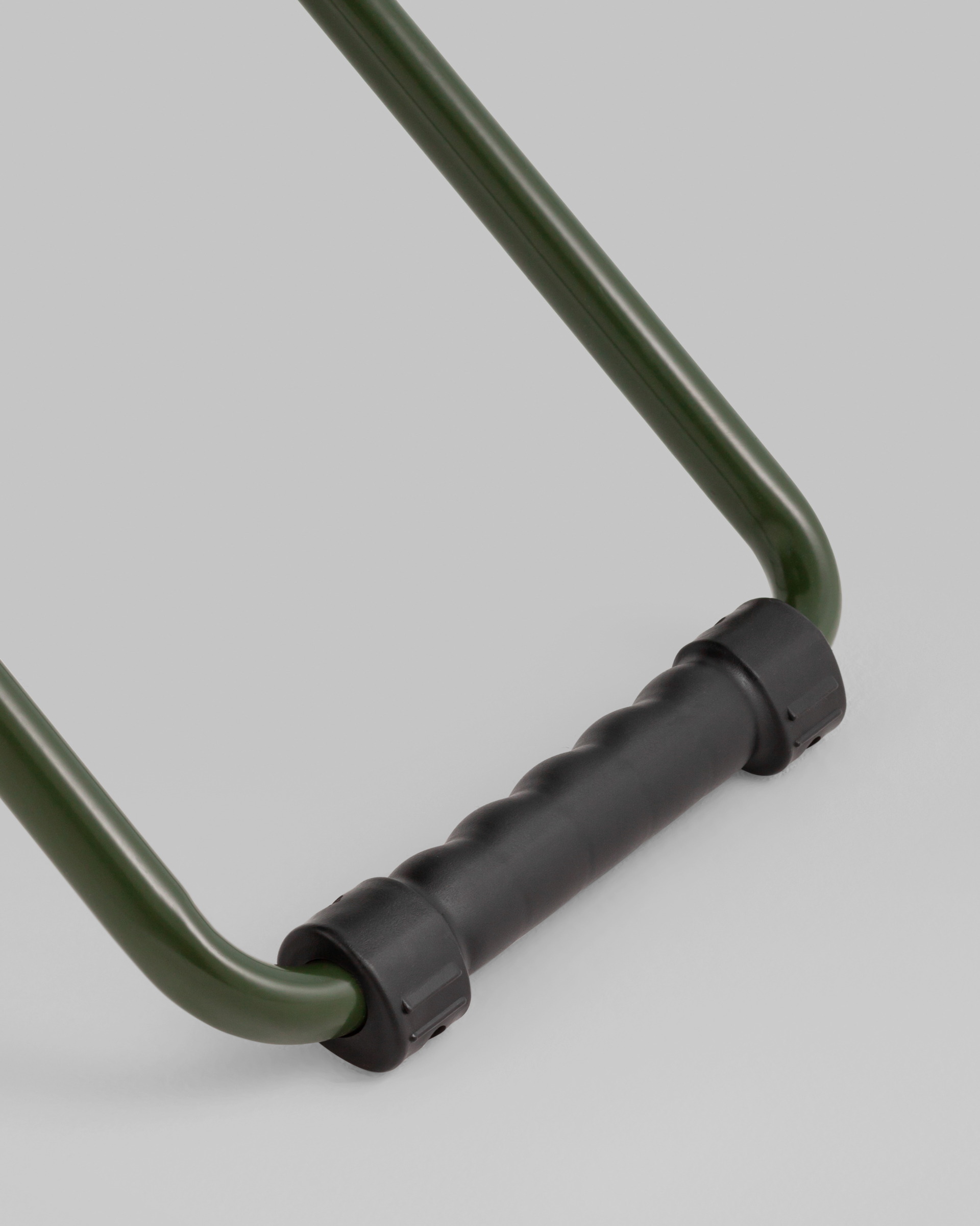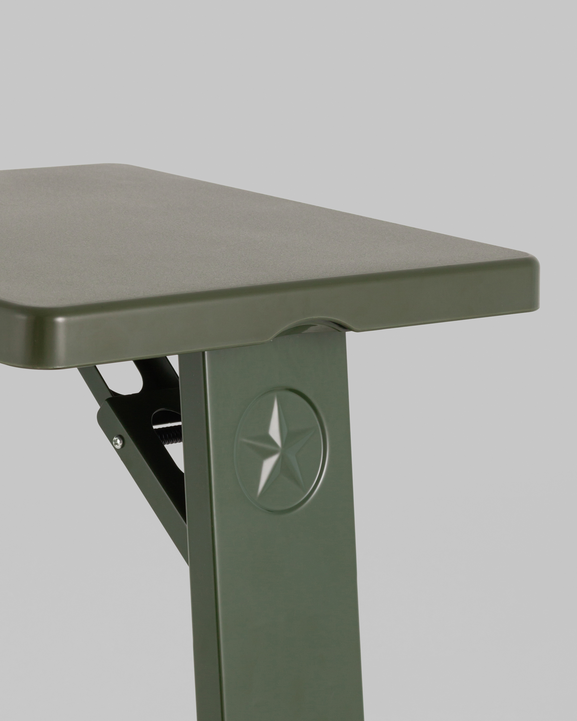 Минималистичный дизайн цвет хаки подчёркивают его утилитарный характер, а антискользящие накладки на ножках добавляют устойчивости на любой поверхности.