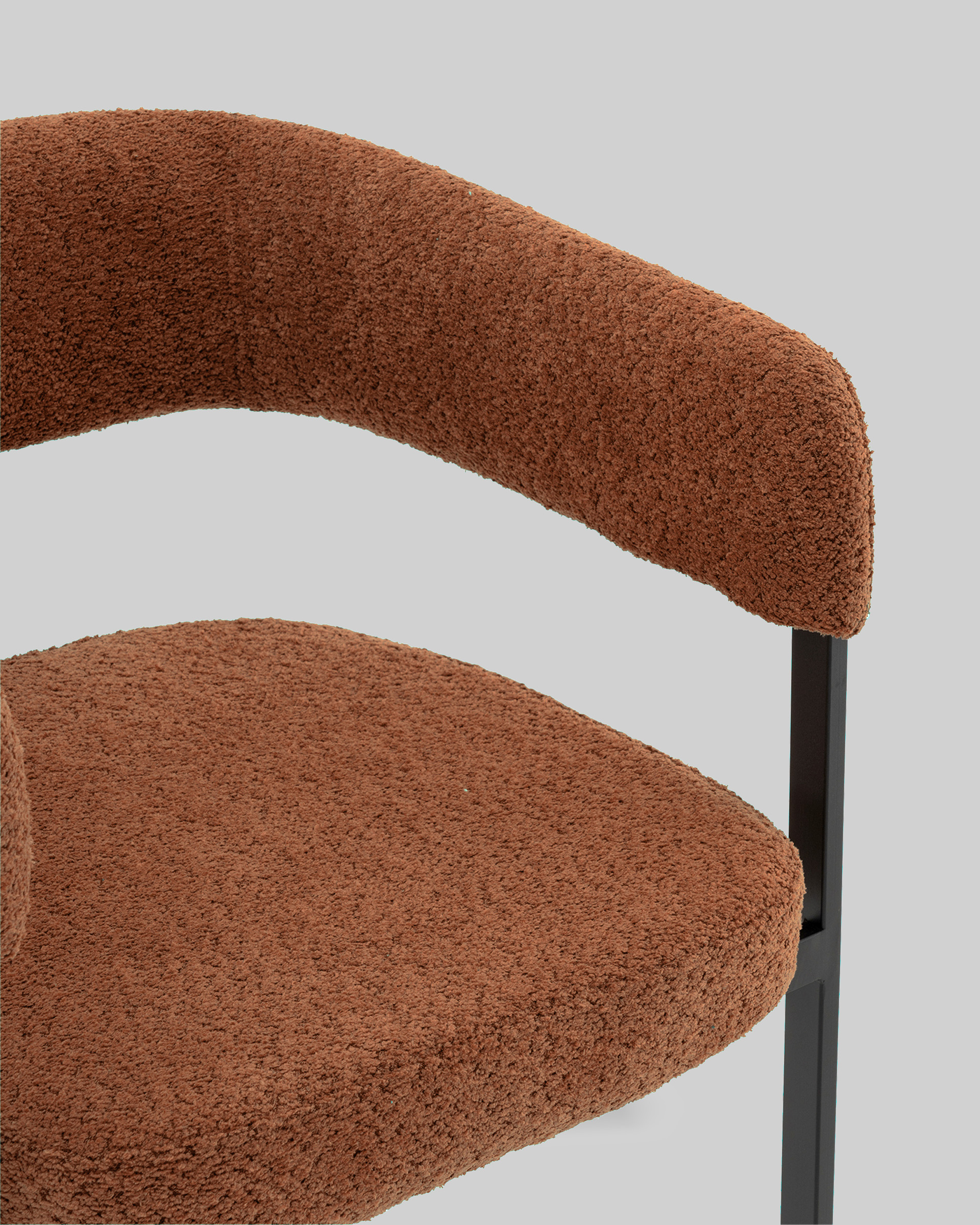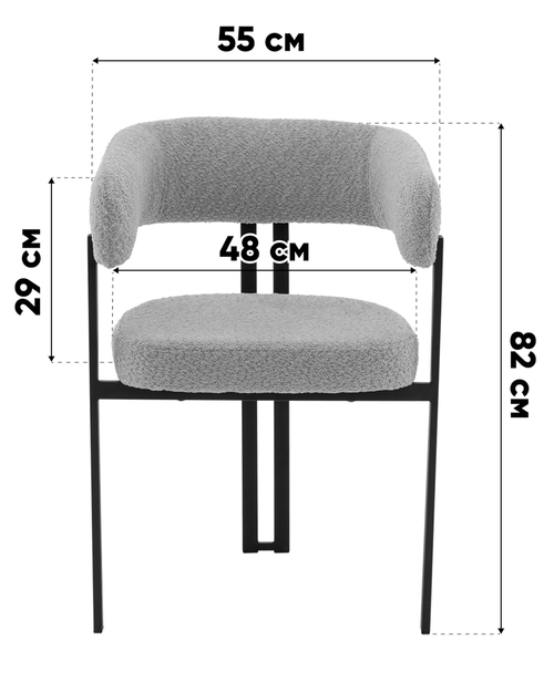Продуманный комфорт для ежедневного использования Широкое сиденье и плавно изогнутая спинка с подлокотниками обеспечивают удобную посадку и поддержку для спины и рук. Прочная металлическая конструкция выдерживает нагрузку до 120 кг, гарантируя надёжность даже при интенсивной эксплуатации дома, в офисе или кафе.