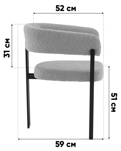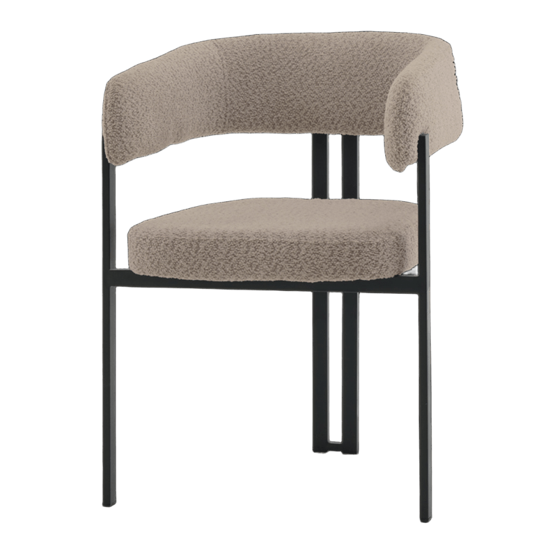 Стул для кухни Серенидат сочетает строгие линии и мягкий комфорт. Обивка из светло-серого букле придаёт изделию тактильную теплоту и современный облик, делая его стильным акцентом в интерьере. Чёрный металлический каркас подчёркивает геометрию силуэта и добавляет выразительности, создавая гармоничный контраст.