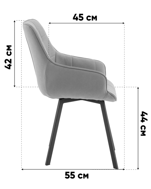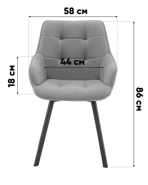 Удобство и надёжность в каждой детали Высокая спинка с поддержкой боковин и плавные подлокотники обеспечивают комфортную посадку для долгих встреч и бесед. Прочные металлические ножки в чёрном цвете не только подчёркивают современный силуэт, но и гарантируют надёжность конструкции при нагрузке до 120 кг.