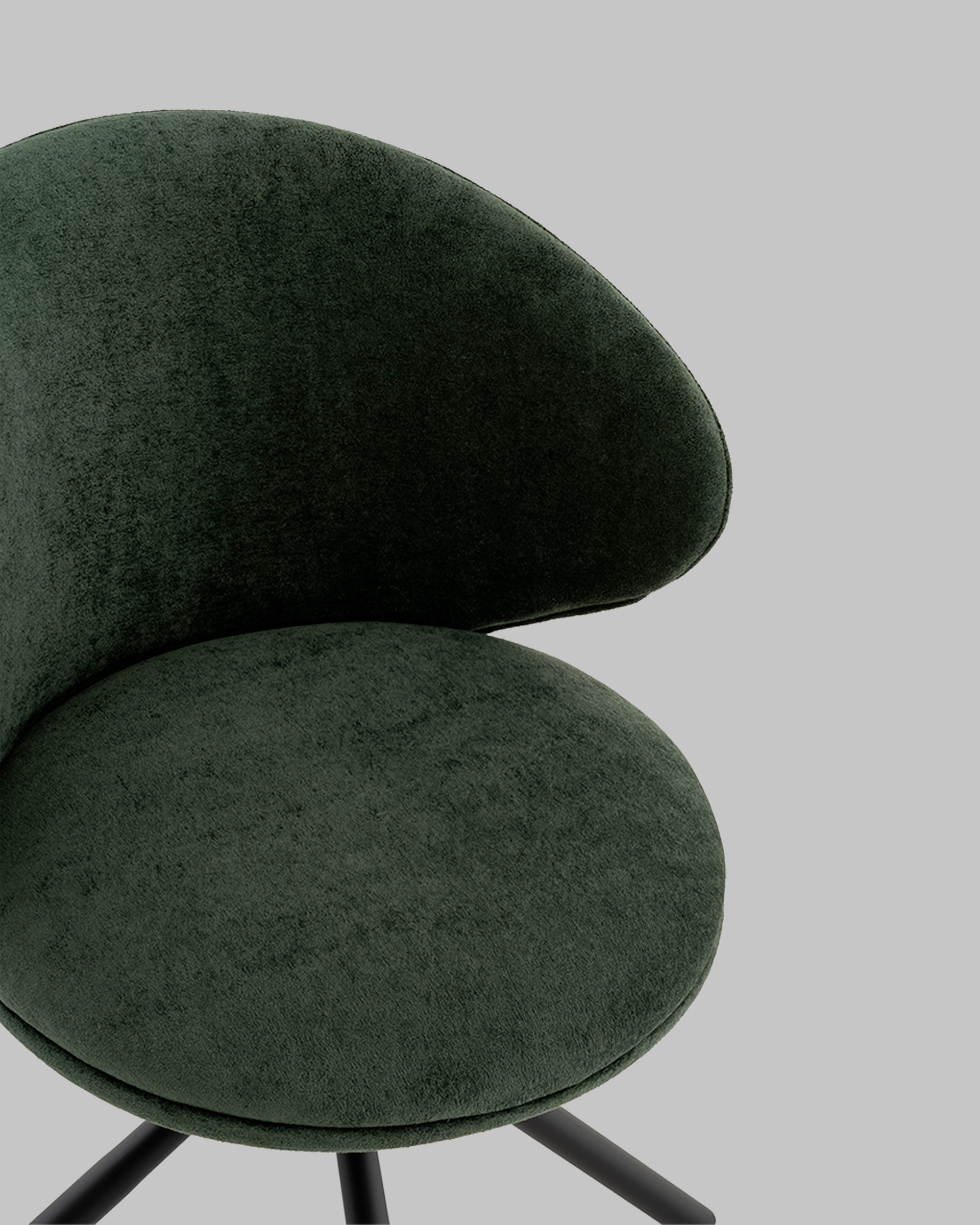 Круглое сиденье с оптимальной глубиной и удобная обтекаемая спинка создают ощущение уюта при длительном использовании. Встроенный поворотно-возвратный механизм на 360 градусов повышает удобство при общении или работе за столом, позволяя легко менять положение. Металлическая крестовина на четырёх ножках обеспечивает отличную устойчивость и выдерживает нагрузку до 100 кг.