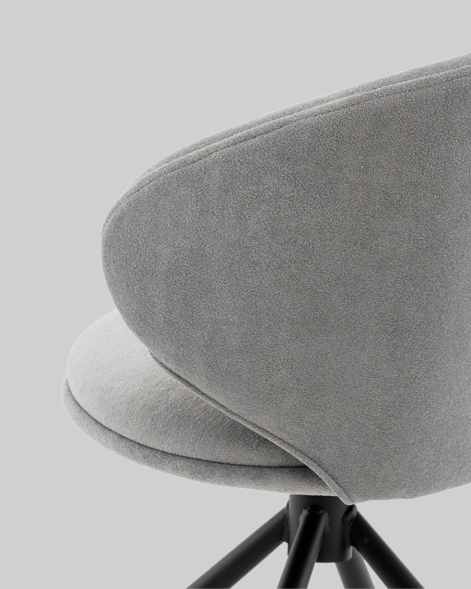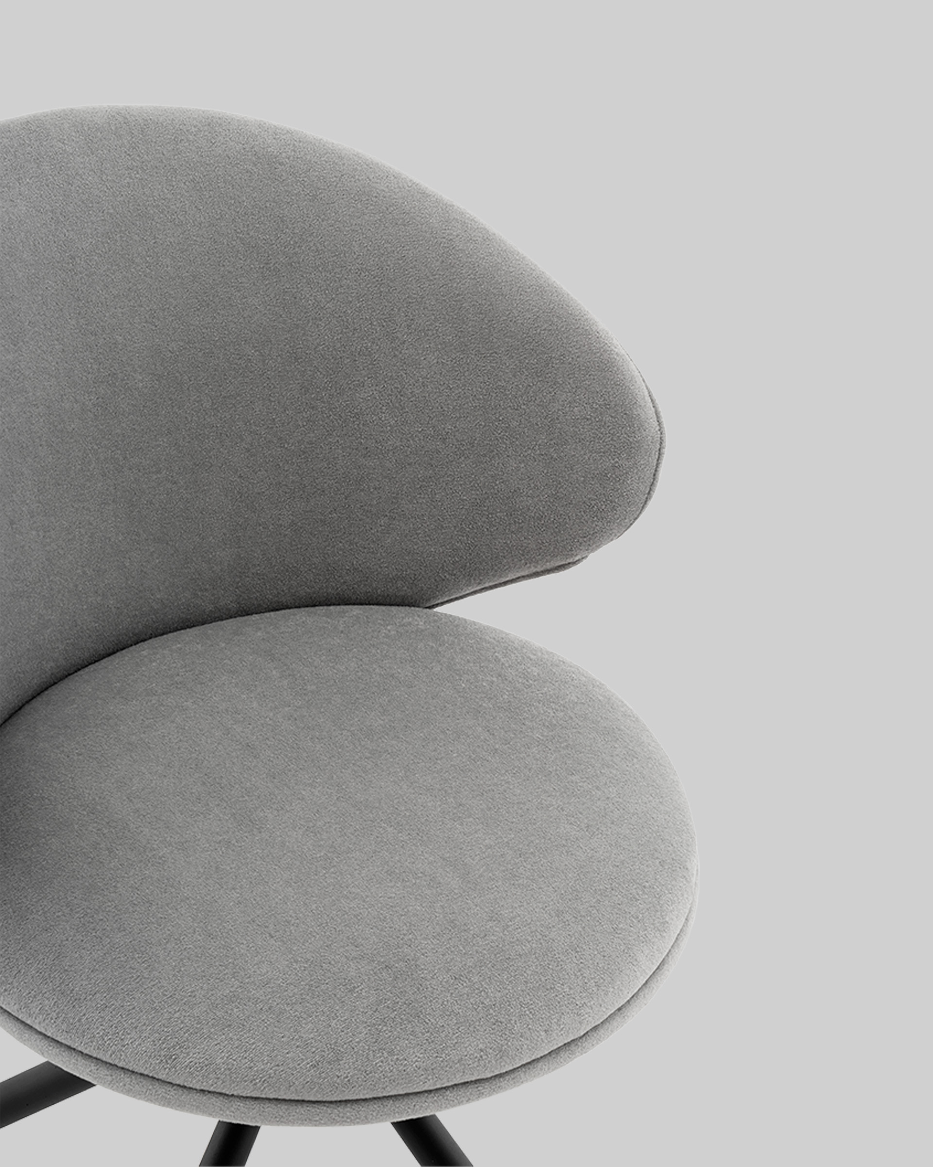 Круглое сиденье с оптимальной глубиной и удобная обтекаемая спинка создают ощущение уюта при длительном использовании. Встроенный поворотно-возвратный механизм на 360 градусов повышает удобство при общении или работе за столом, позволяя легко менять положение. Металлическая крестовина на четырёх ножках обеспечивает отличную устойчивость и выдерживает нагрузку до 100 кг.