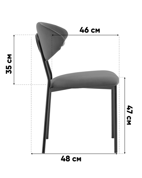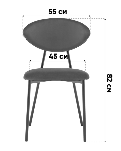 Удобство и надёжность в эксплуатации. Металлический каркас с чёрным матовым покрытием обеспечивает прочность и устойчивость. Обивка выполнена из мягкого на ощупь велюра, который придаёт стулу благородный внешний вид и лёгкость в уходе. Сиденье и спинка наполнены ППУ, обеспечивая приятную поддержку при длительном сидении.