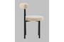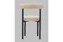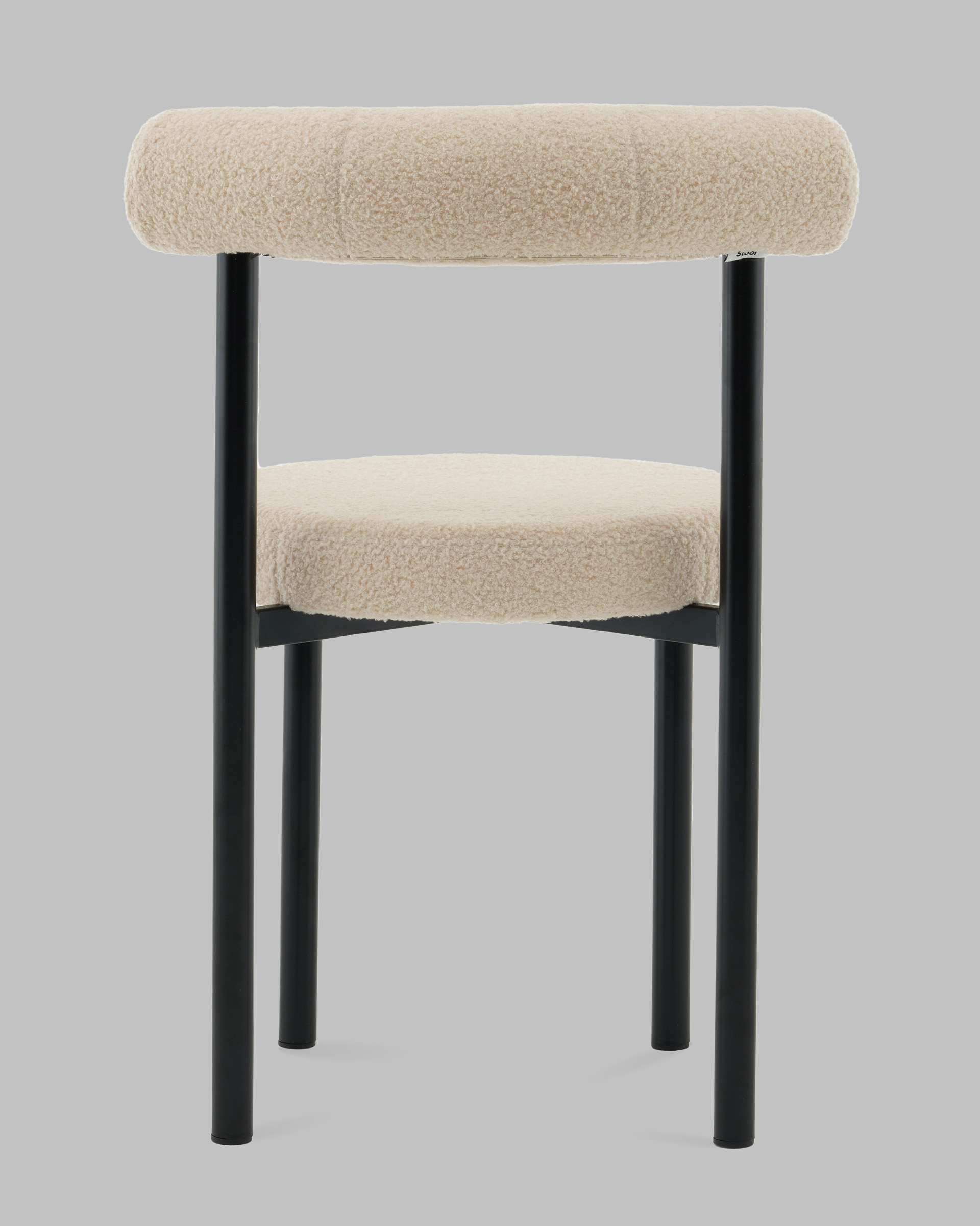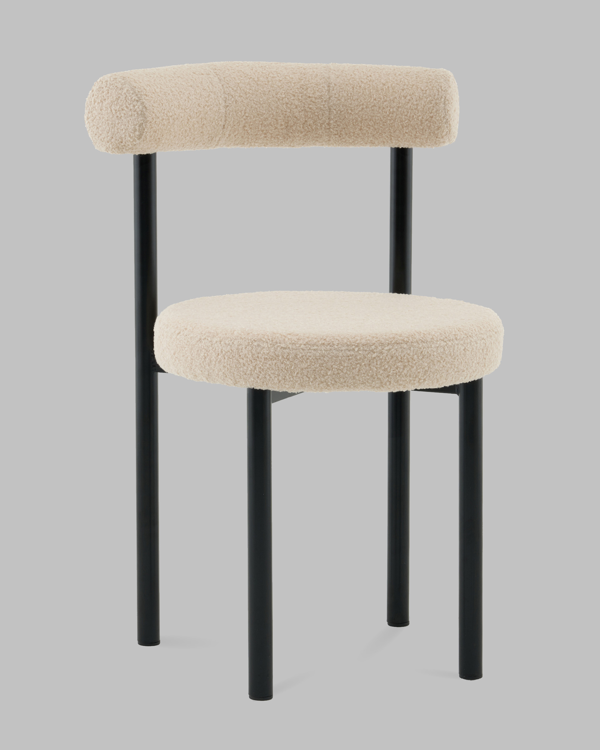 Обеденный стул Флорео — это удачное сочетание минималистичного дизайна и уютной текстуры. Обивка из тёмно-серого букле делает модель мягкой и приятной на ощупь, добавляя светлый акцент в интерьер. Чёрный металлический каркас подчёркивает геометрию и придаёт образу современный характер.