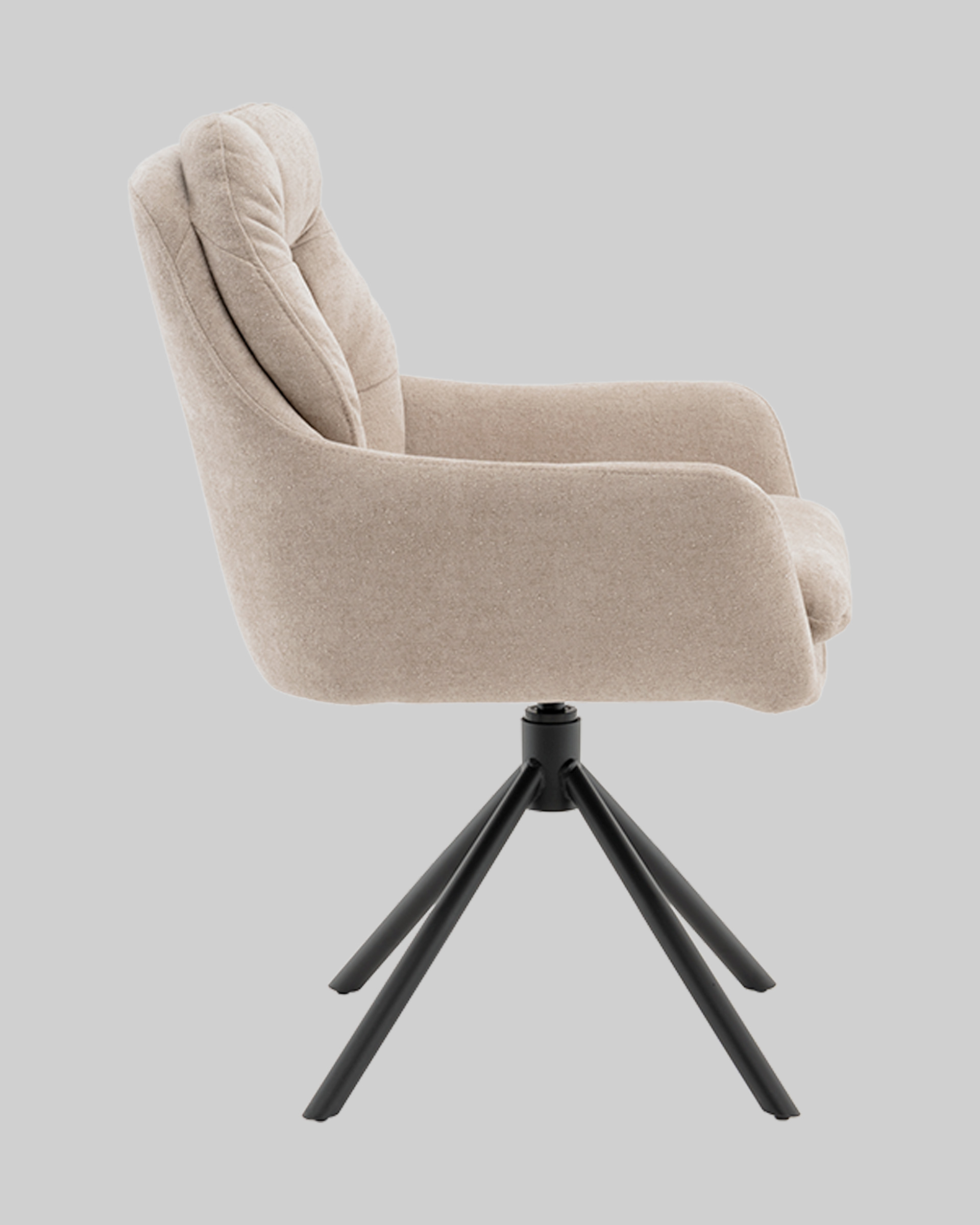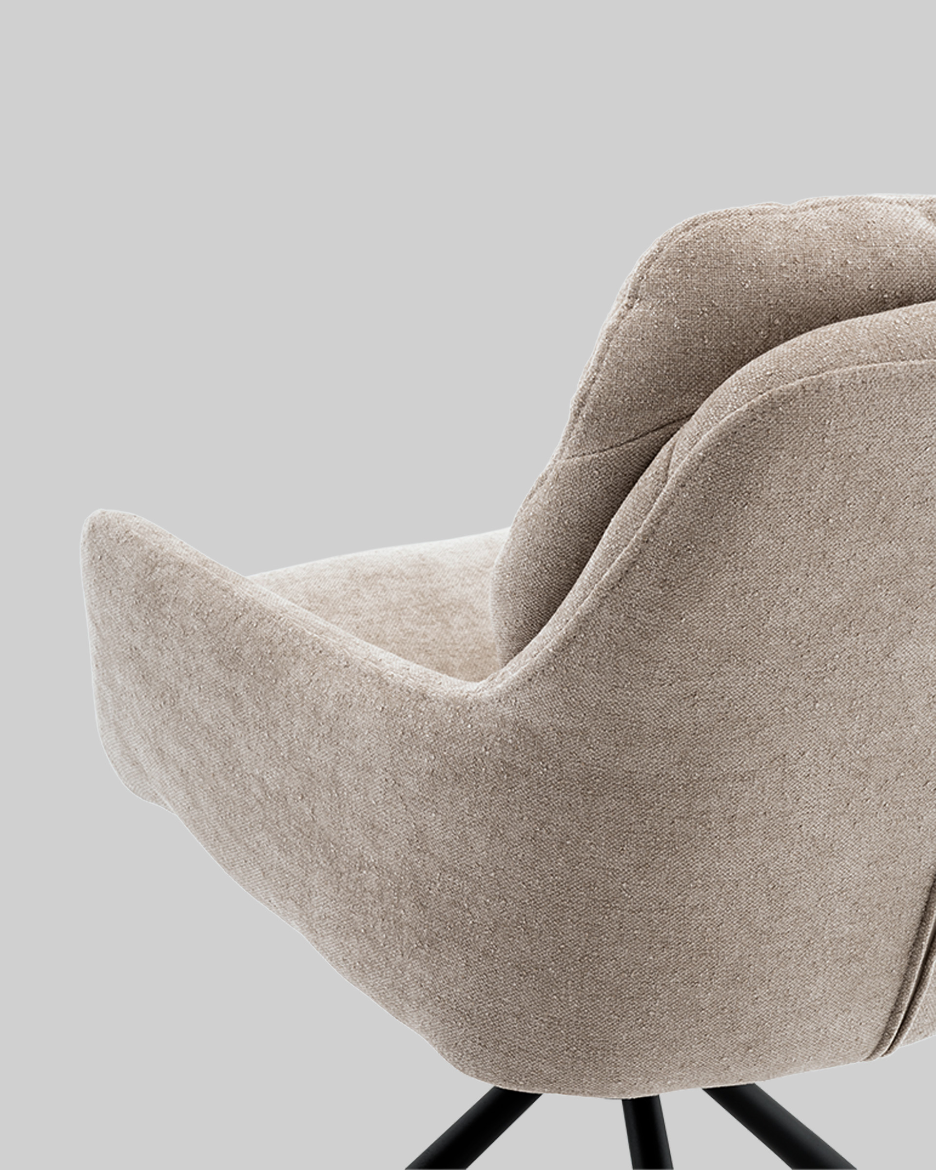 Стул Ральфио сочетает уютный дизайн и функциональные решения для ежедневного комфорта. Обивка из приятного на ощупь букле в бежевом оттенке добавляет интерьеру тепло и текстурный акцент, а объёмная простёжка на спинке и сиденье придаёт модели расслабленный, домашний вид.
