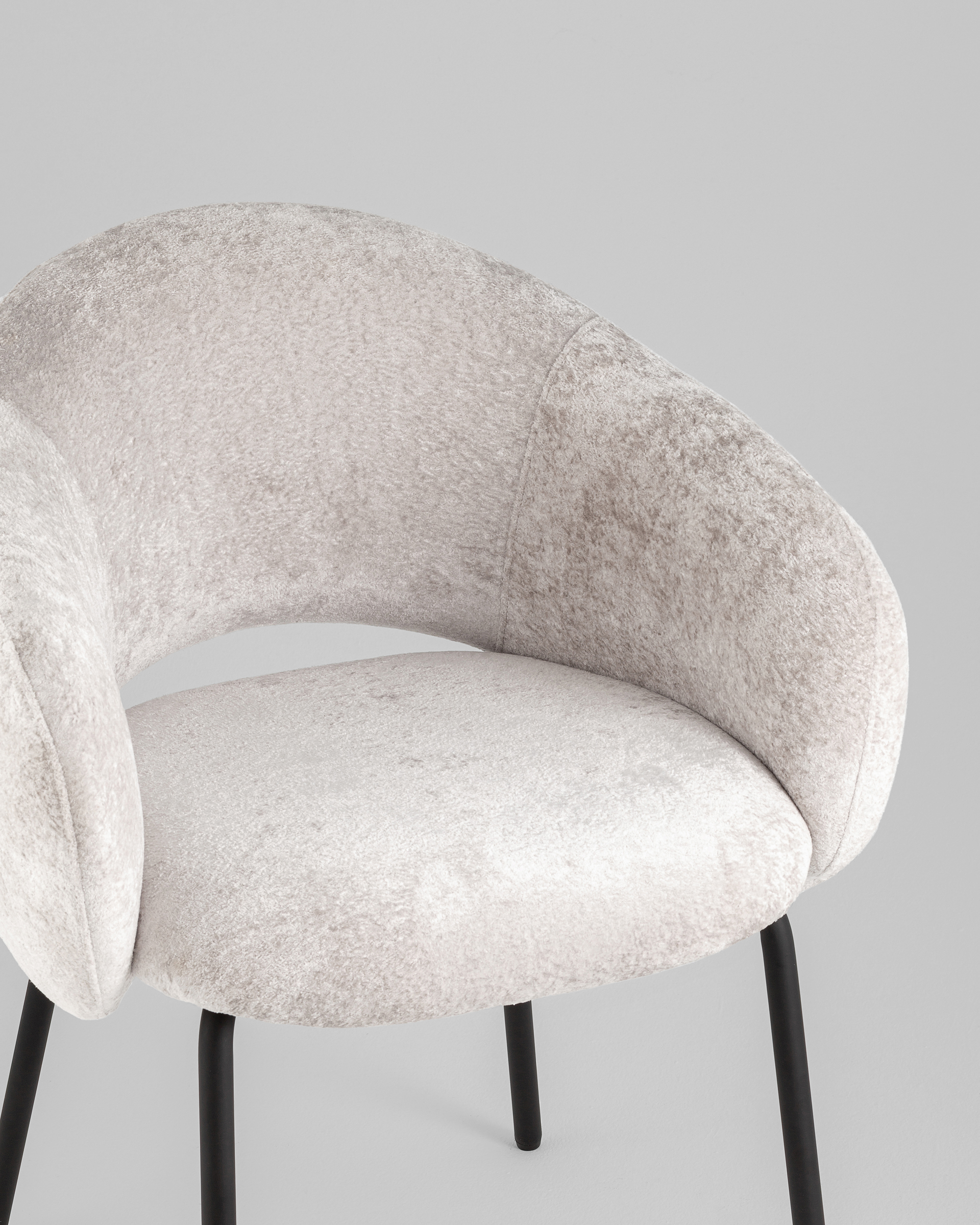 Широкое сиденье, мягкий наполнитель и полукруглая спинка с подлокотниками обеспечивают удобную и расслабленную посадку. Стул подойдёт как для повседневных обедов, так и для долгих уютных вечеров за столом.