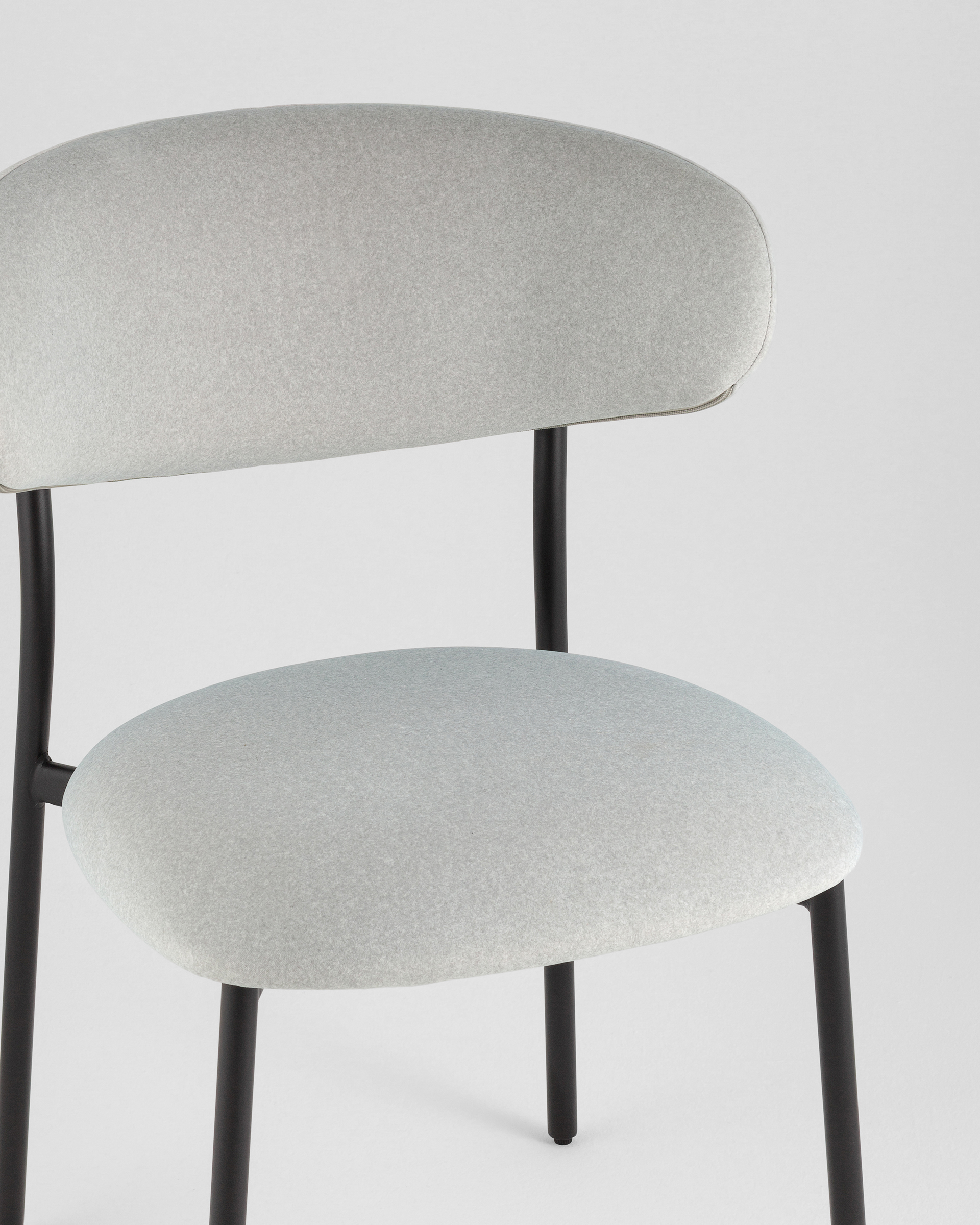 Обивка из ткани букле отличается приятной текстурой и трендовой фактурой. Этот материал устойчив к износу, хорошо держит форму и создаёт уютный, тактильно комфортный эффект. Наполнитель сиденья из поролона обеспечивает мягкую посадку, делая использование стула особенно комфортным даже при длительном сидении.