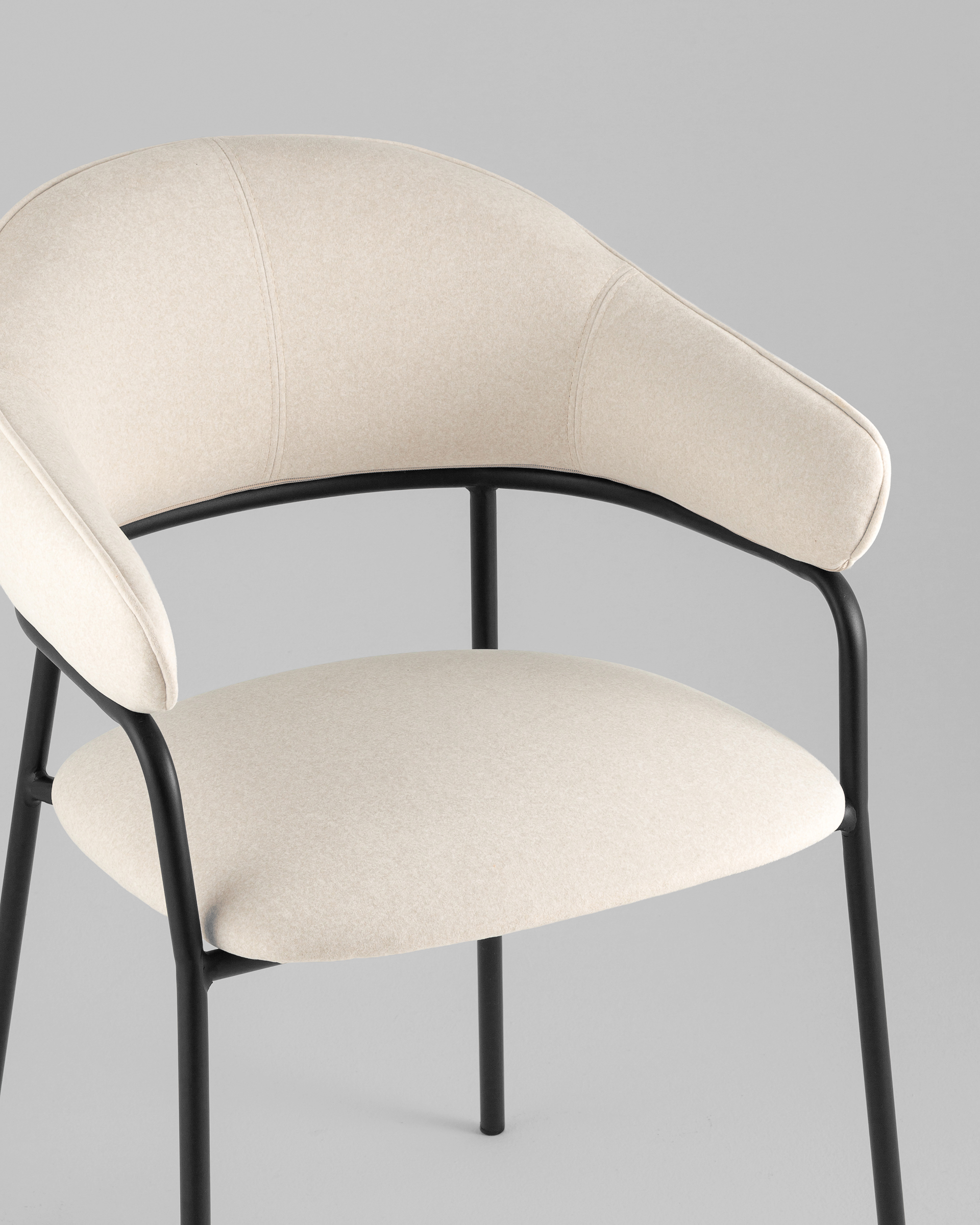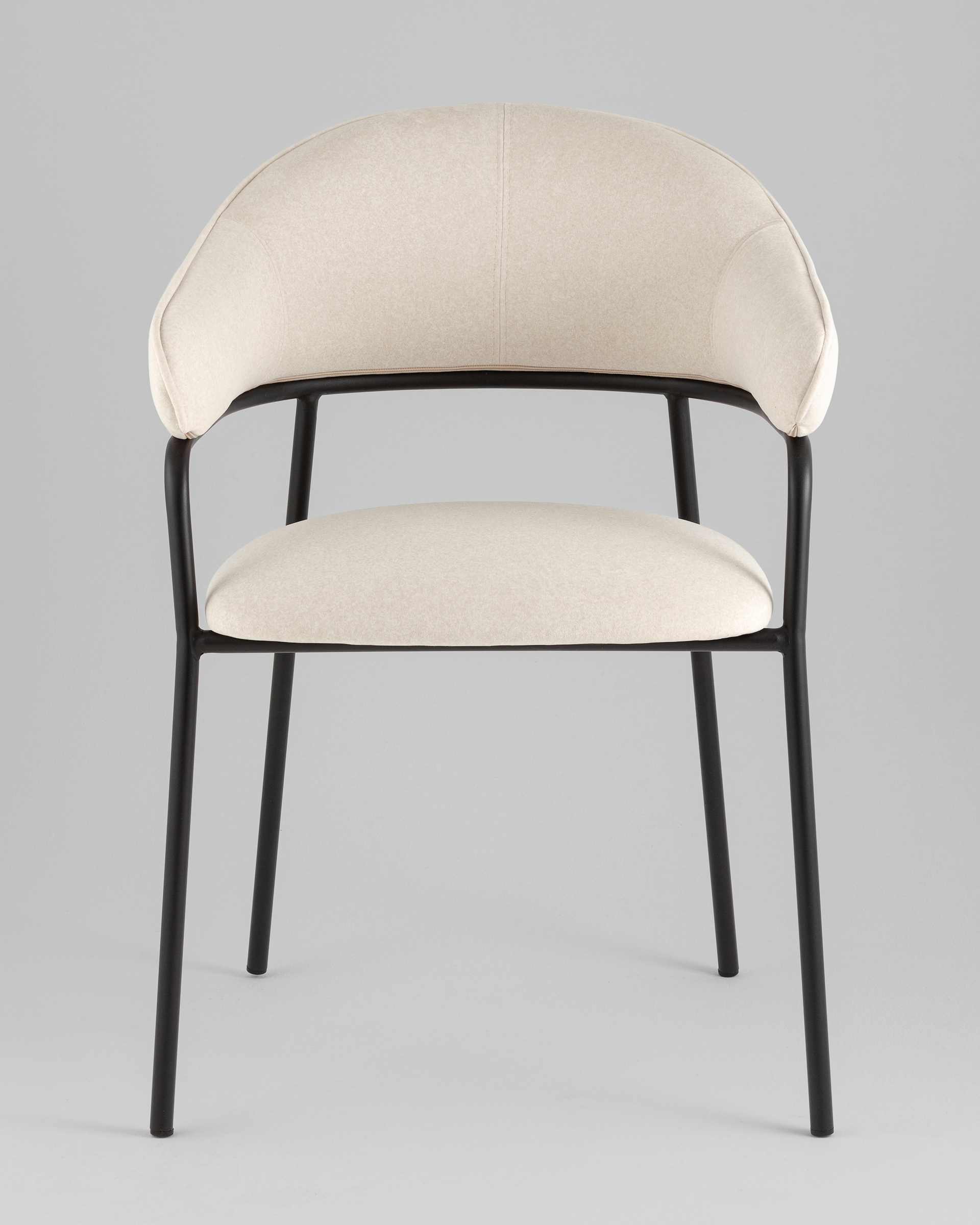 Стул Leya — это сочетание современного минимализма и утончённой элегантности. Лаконичный силуэт с мягкой обивкой и тонким металлическим каркасом делает его универсальным решением как для домашнего интерьера, так и для стильных общественных пространств. Полукруглая спинка и подлокотники создают гармоничные линии, придавая модели изысканный вид.