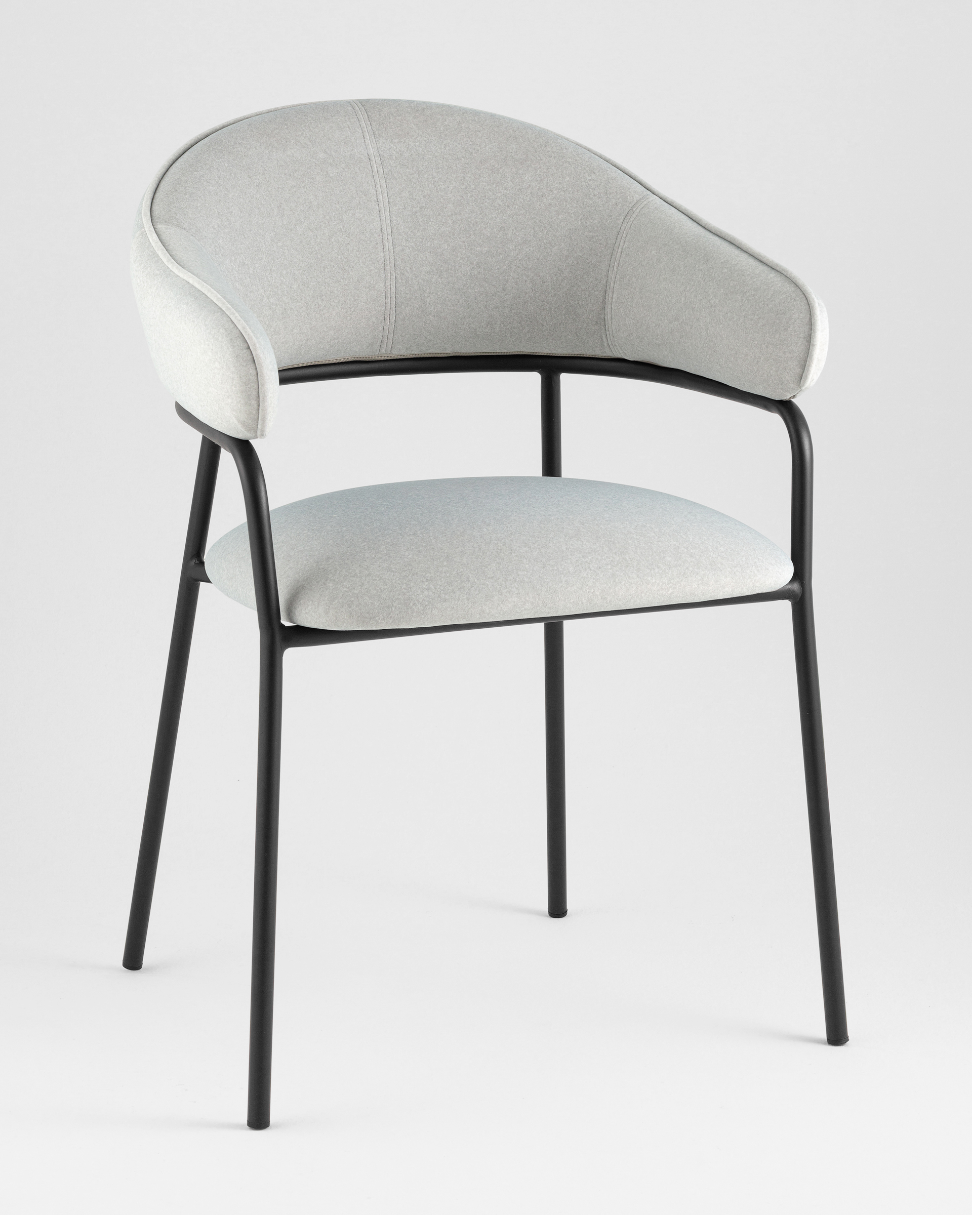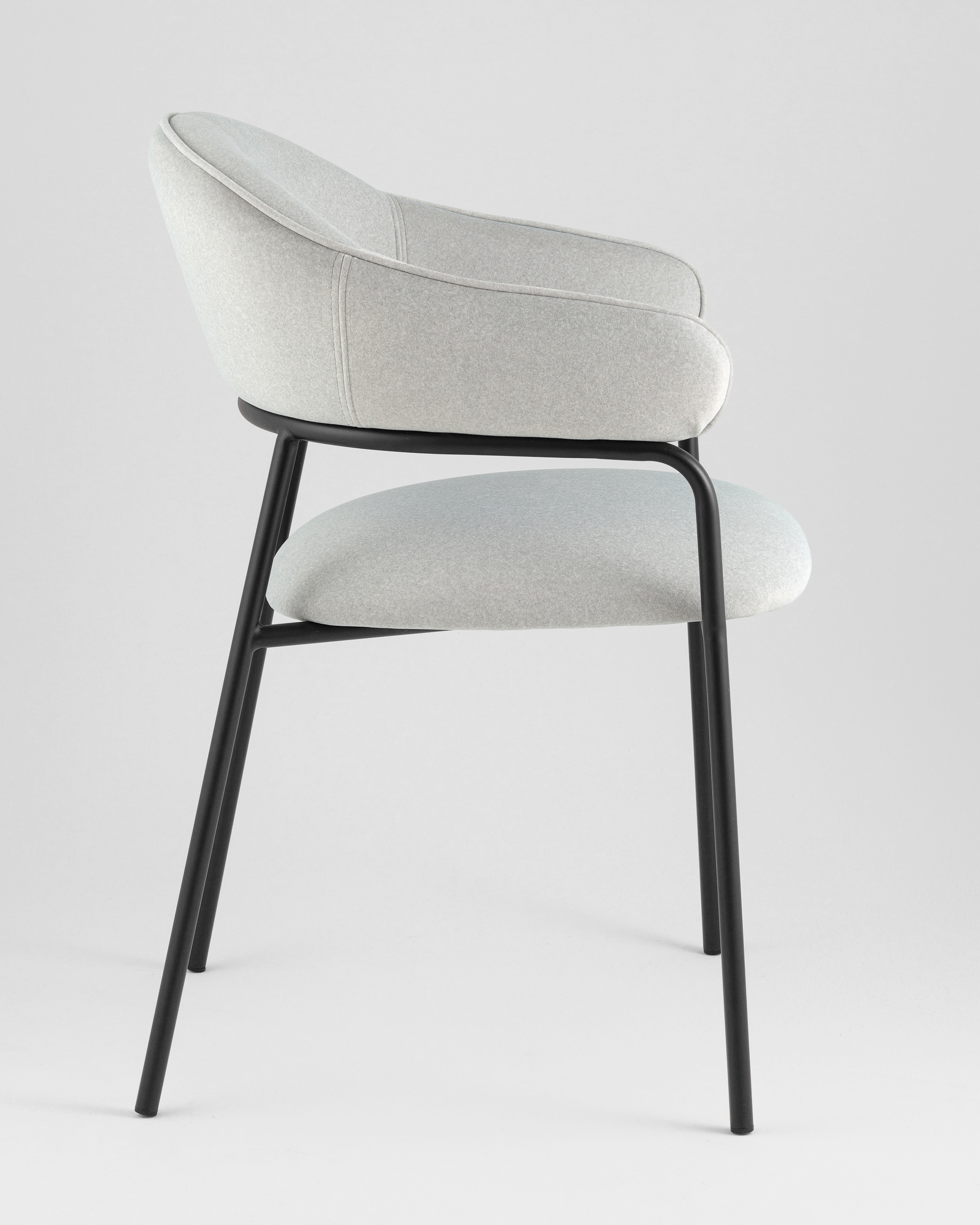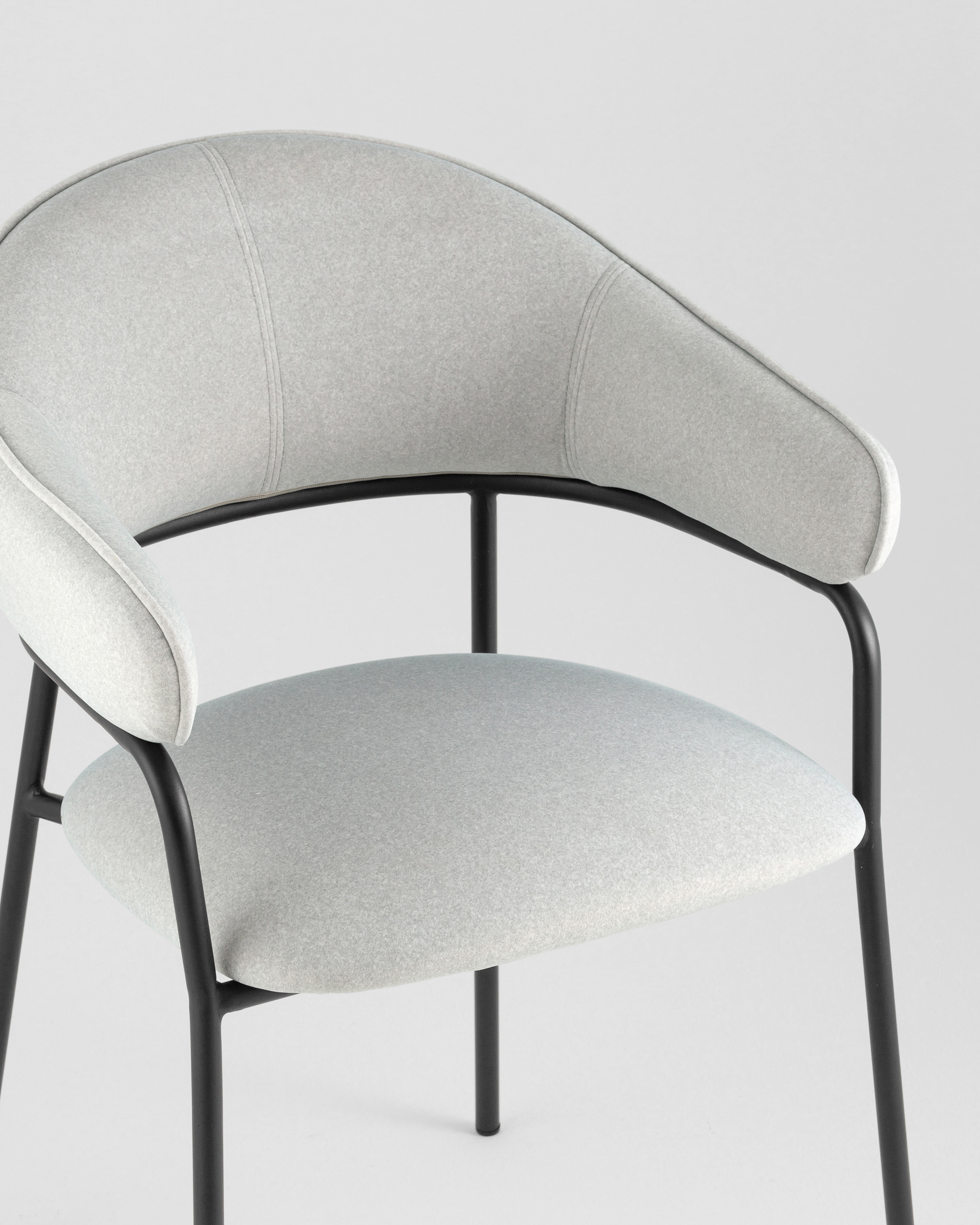 Стул Leya — это сочетание современного минимализма и утончённой элегантности. Лаконичный силуэт с мягкой обивкой и тонким металлическим каркасом делает его универсальным решением как для домашнего интерьера, так и для стильных общественных пространств. Полукруглая спинка и подлокотники создают гармоничные линии, придавая модели изысканный вид.