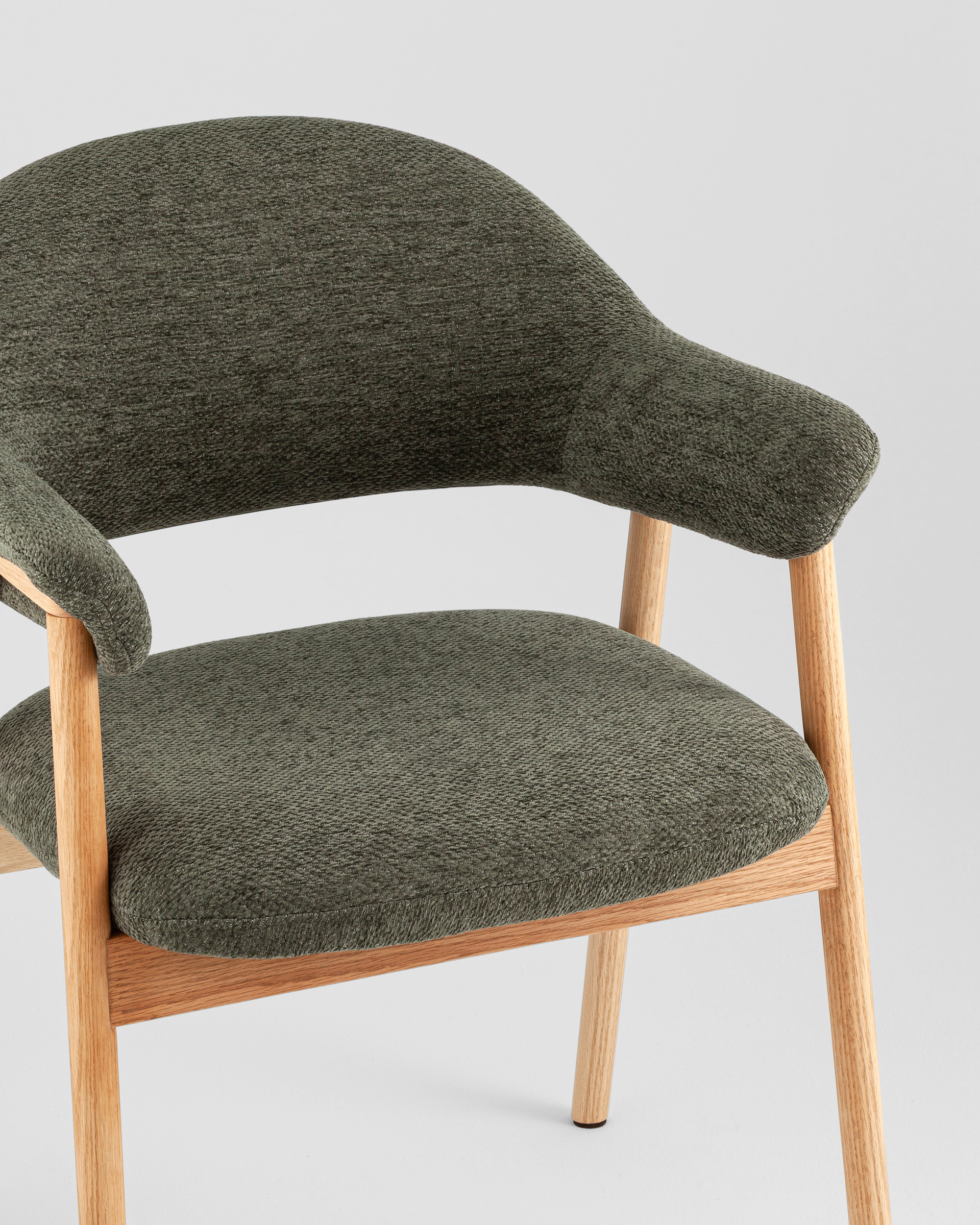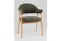 Стул выполнен в скандинавском стиле с элементами современного минимализма. Лаконичные линии, натуральная древесина ножек и глубокий зелёный оттенок обивки создают образ мебели, которая одновременно выглядит уютно и элегантно.