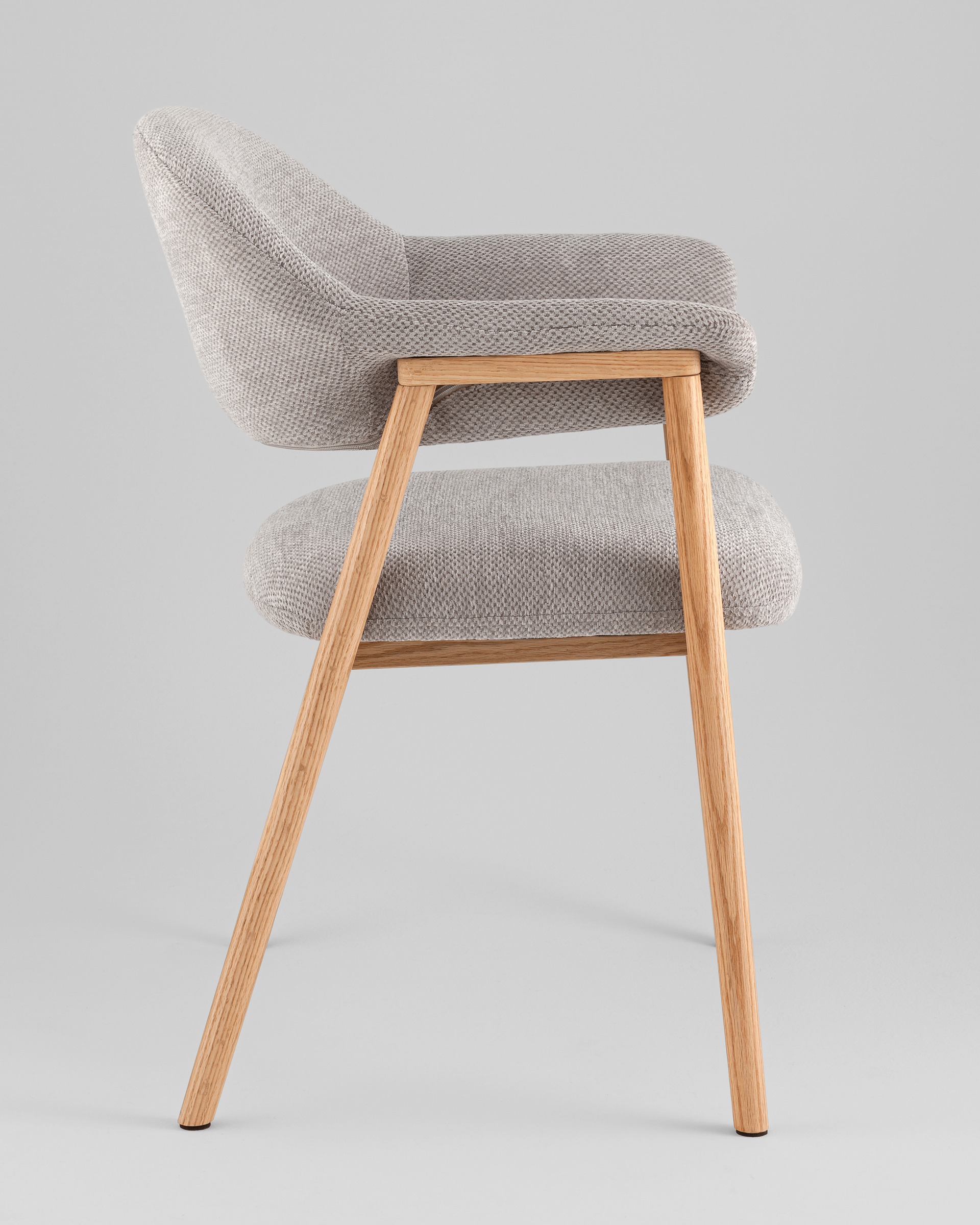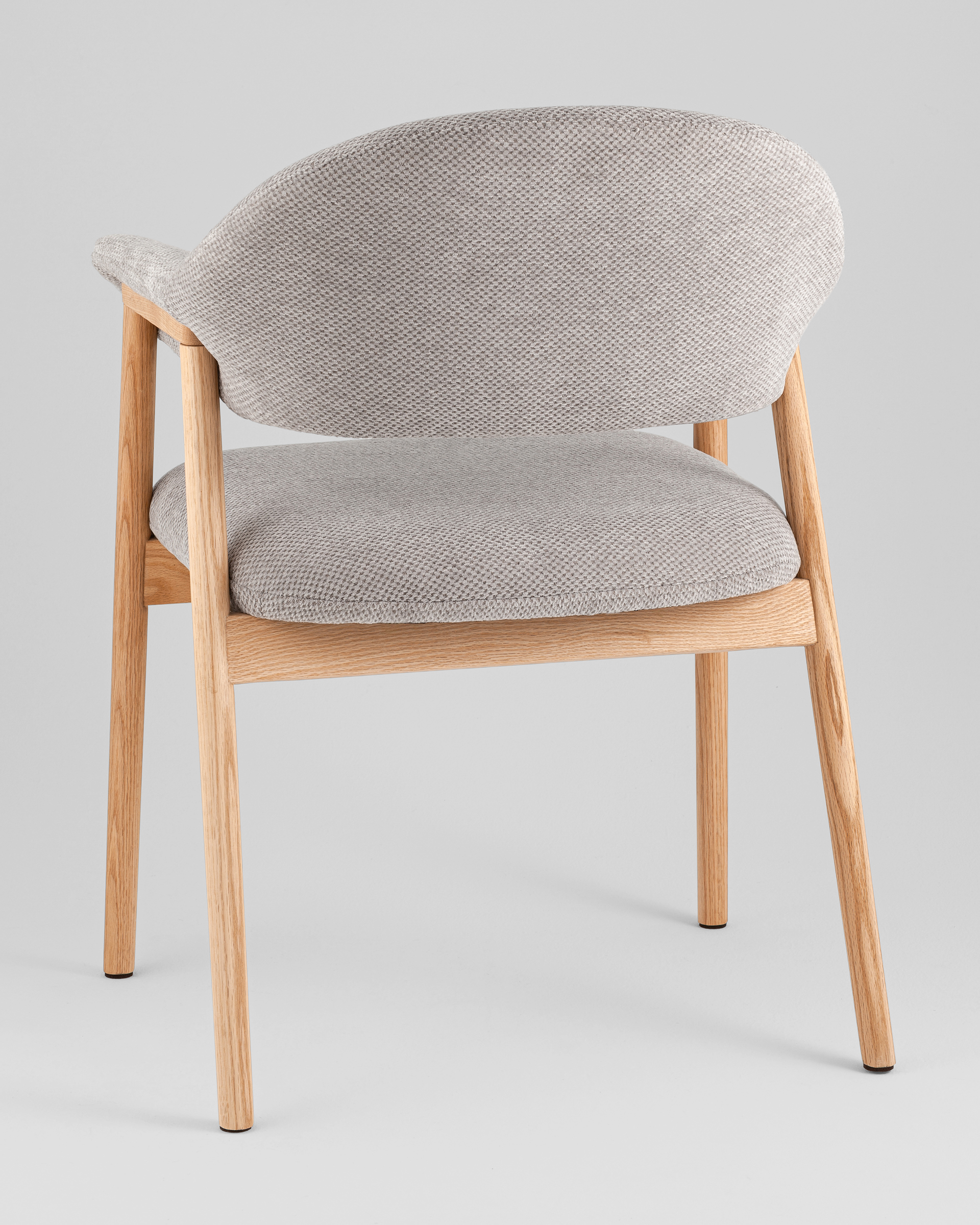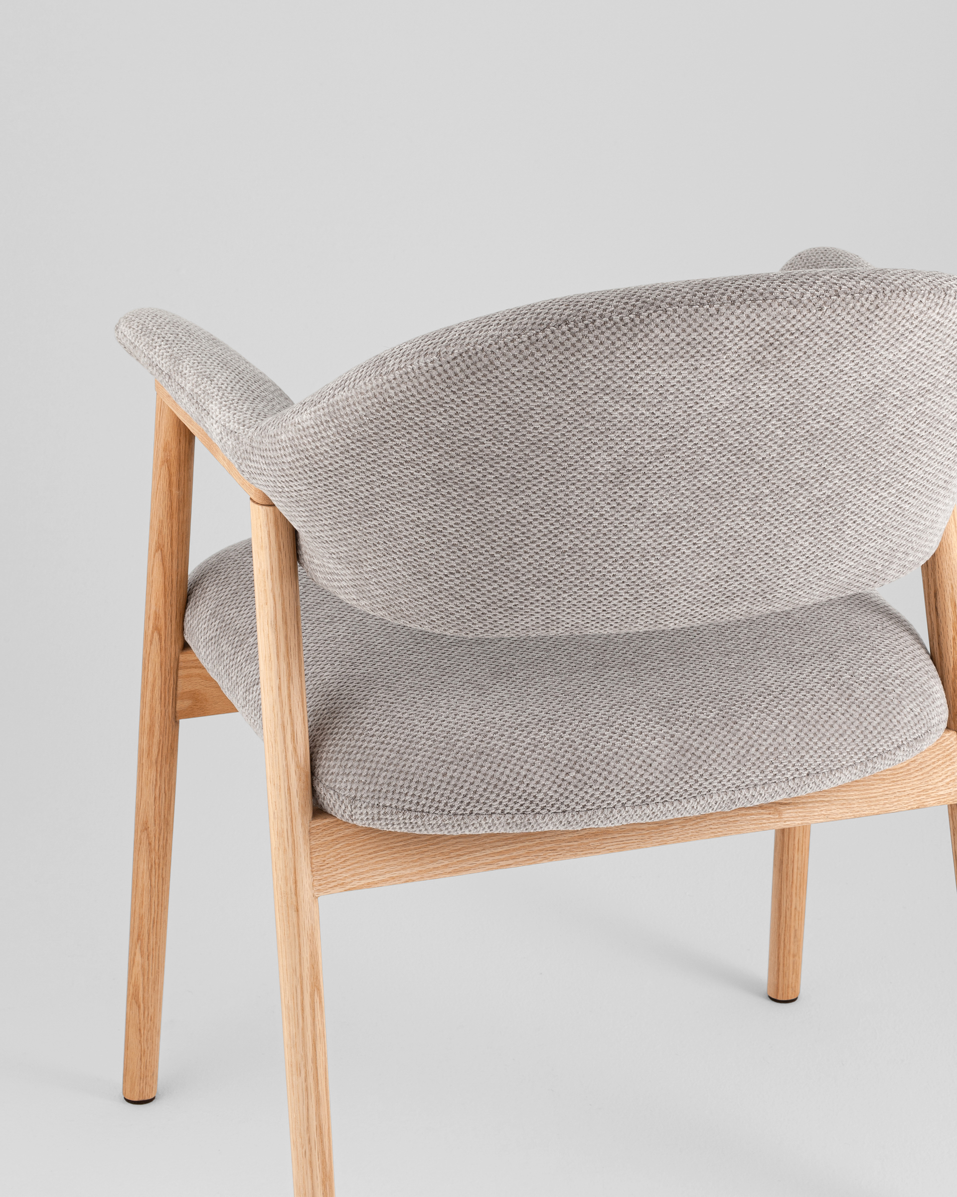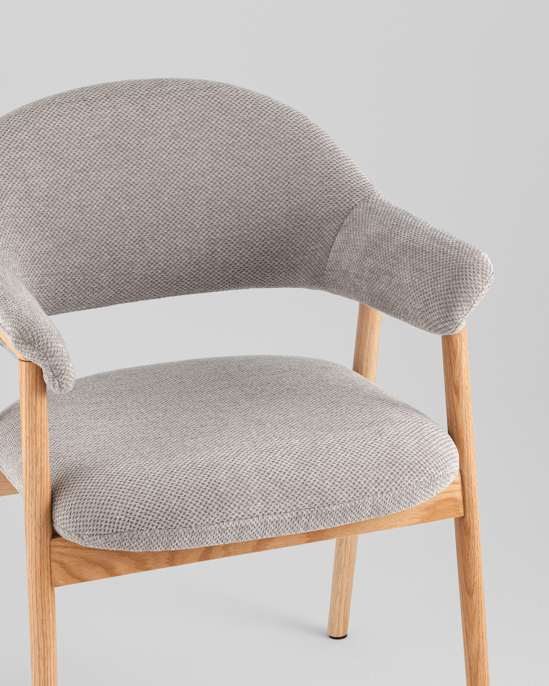 Стул выполнен в скандинавском стиле с элементами современного минимализма. Лаконичные линии, натуральная древесина ножек и глубокий серый оттенок обивки создают образ мебели, которая одновременно выглядит уютно и элегантно.