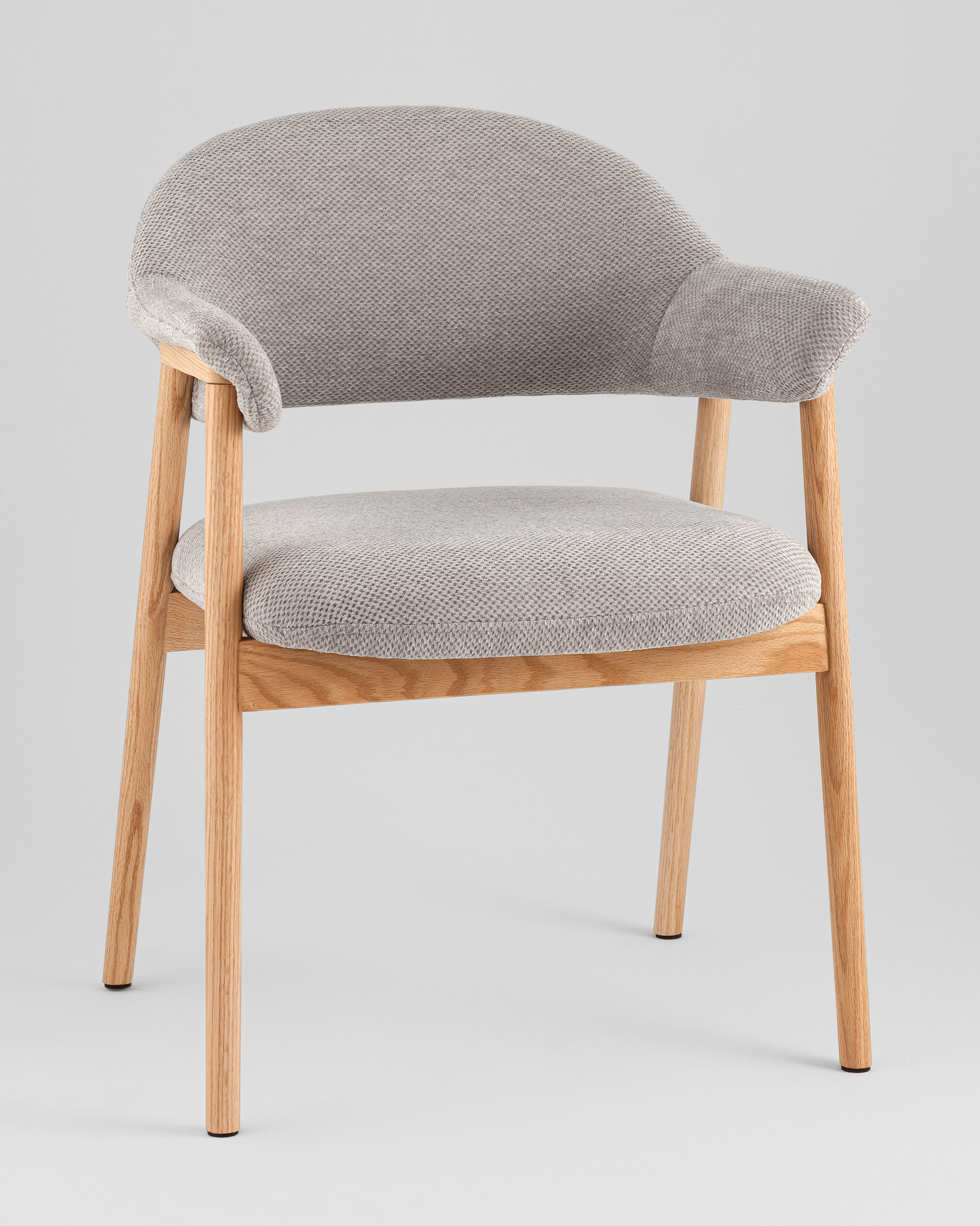 Обивка из прочного шенилла обладает рядом преимуществ: она мягкая на ощупь, износостойкая, устойчива к выгоранию и сохраняет первоначальный вид даже при активном использовании. Сиденье наполнено плотным поролоном, что обеспечивает комфортную посадку. Ножки выполнены из прочной дубовой древесины, известной своей долговечностью и натуральной эстетикой.