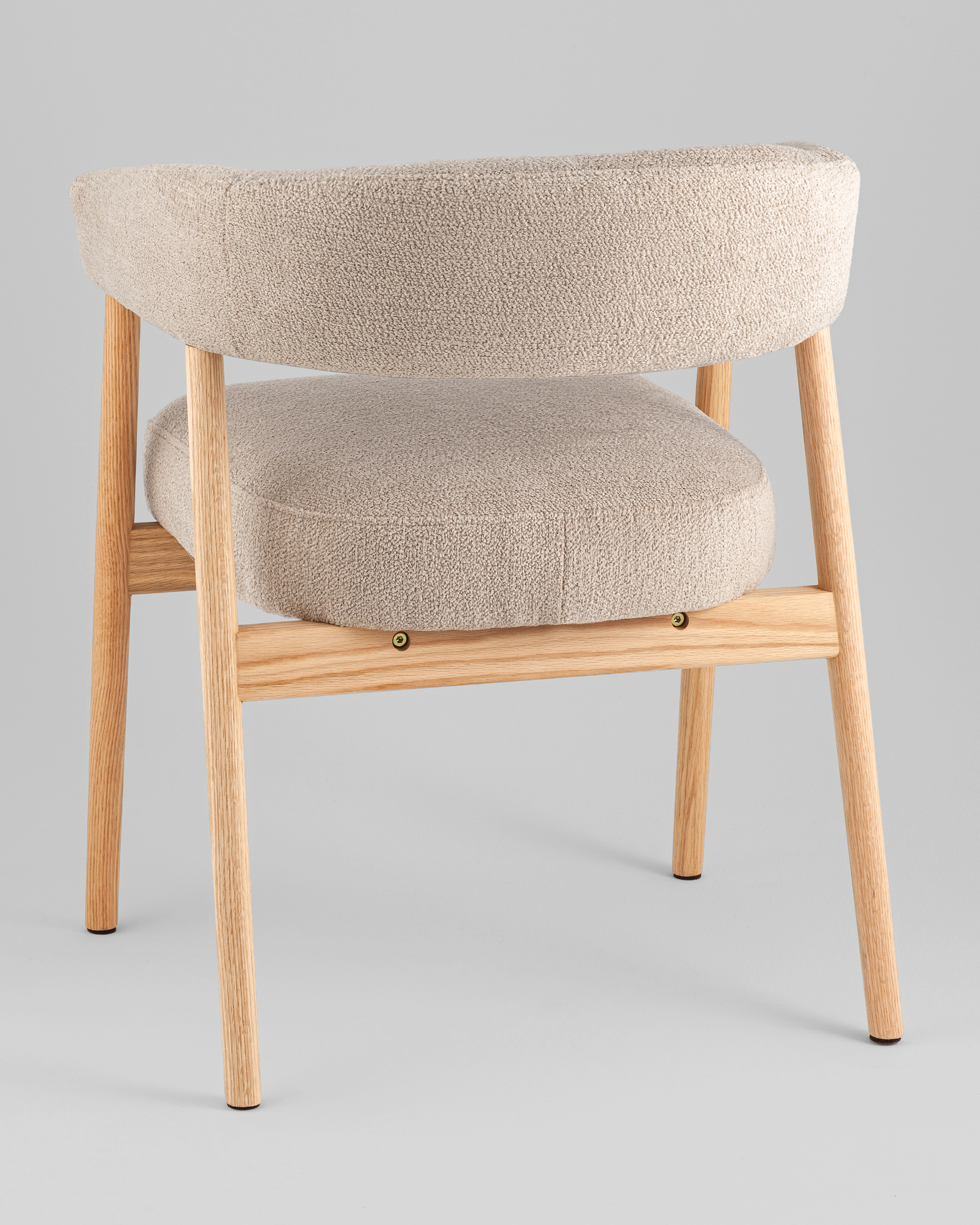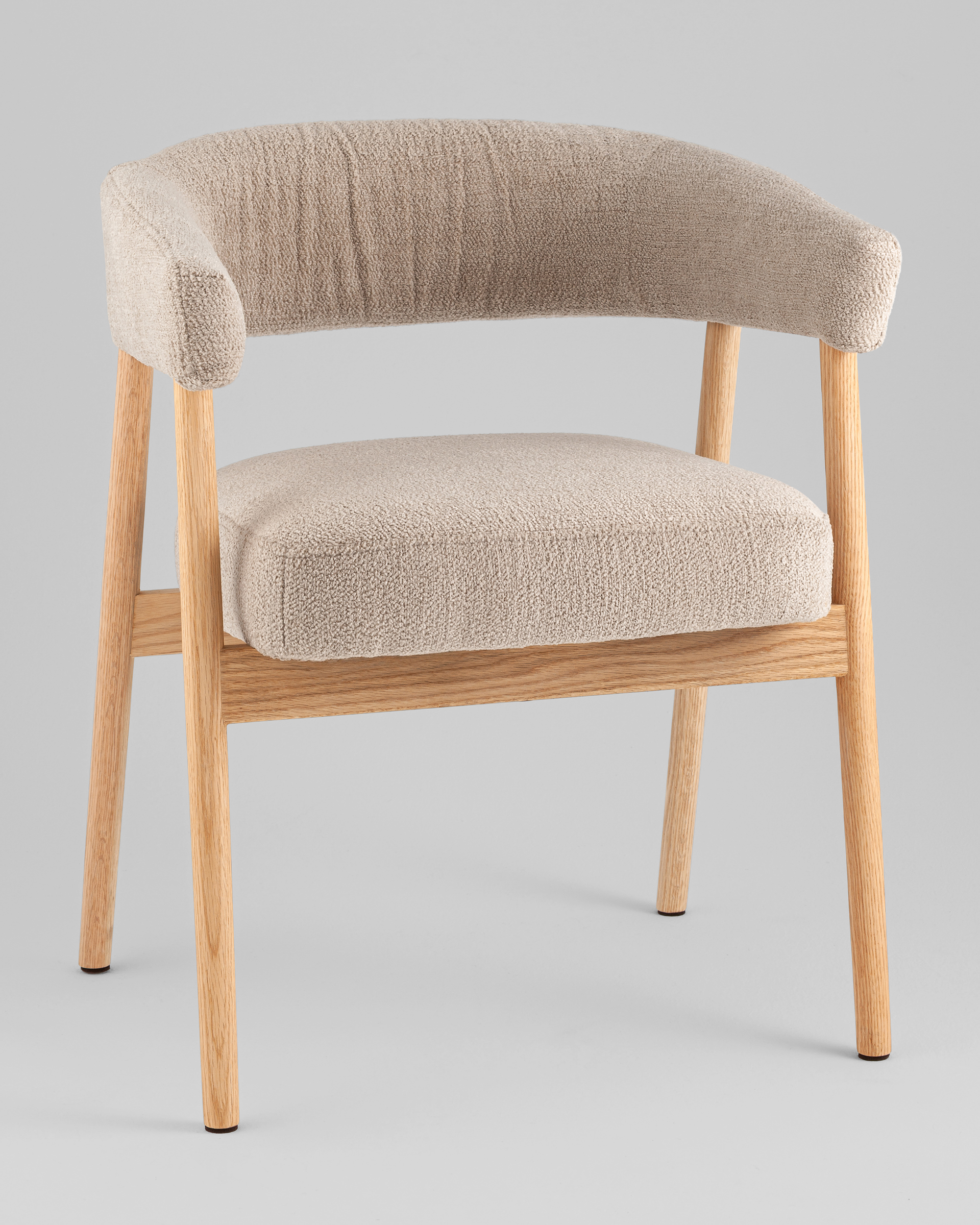 Стул отличается лаконичным современным дизайном с элементами скандинавского стиля. Бежевая обивка гармонично сочетается с ножками из натуральной дубовой древесины, создавая уютный и в то же время элегантный образ.