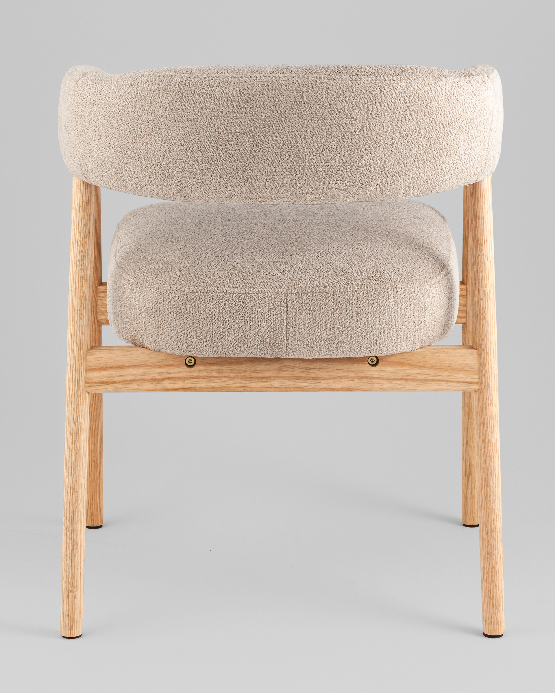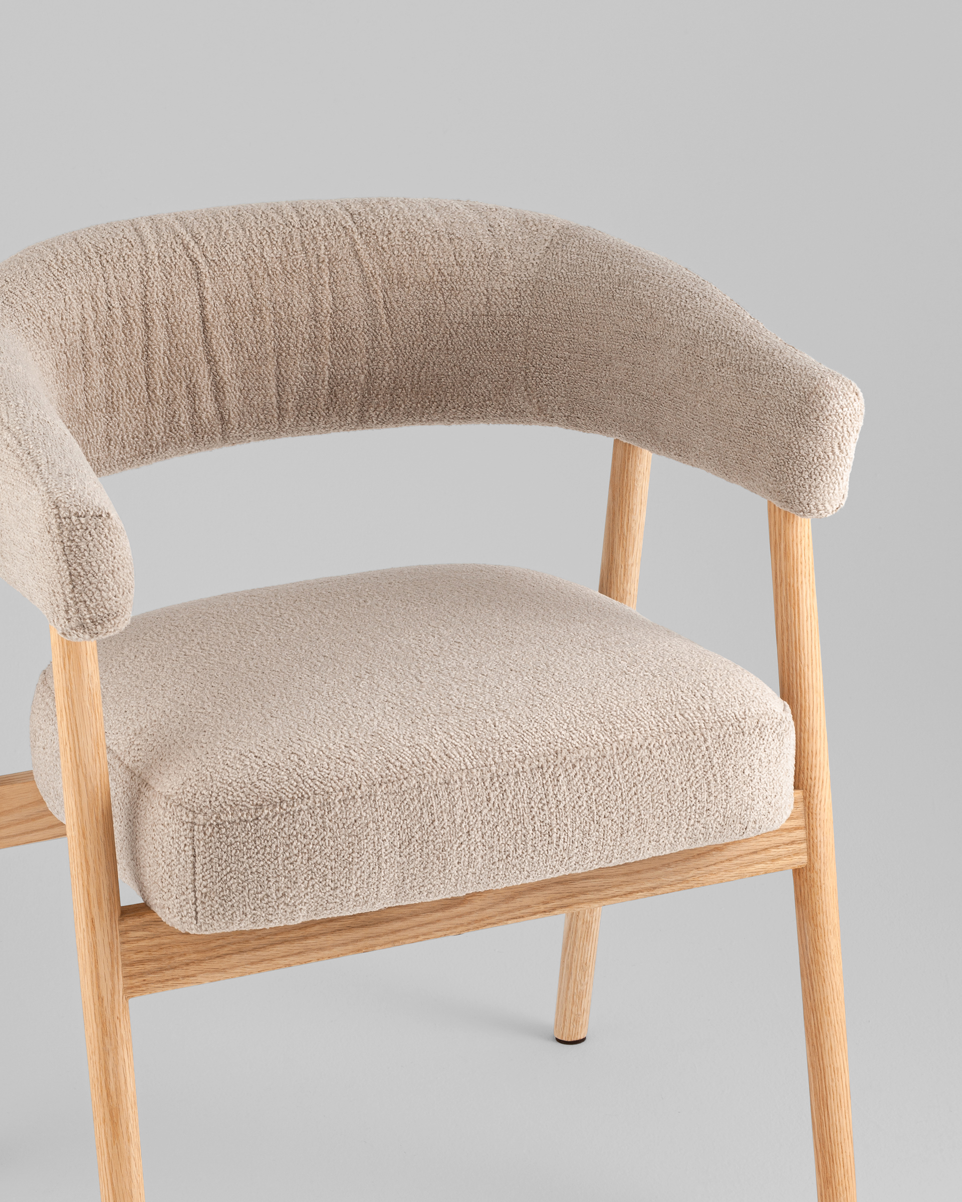 Обивка выполнена из ткани букле — она приятна на ощупь, устойчива к истиранию и сохраняет свою привлекательность даже при активной эксплуатации. Ткань обладает лёгким рельефом, который придаёт мебели выразительность и делает её особенно уютной. Сиденье с наполнителем из поролона обеспечивает мягкость и комфорт при посадке.